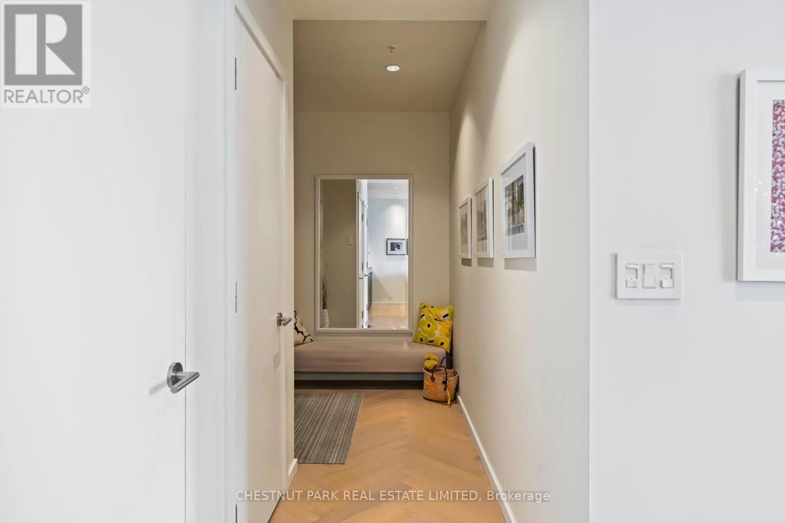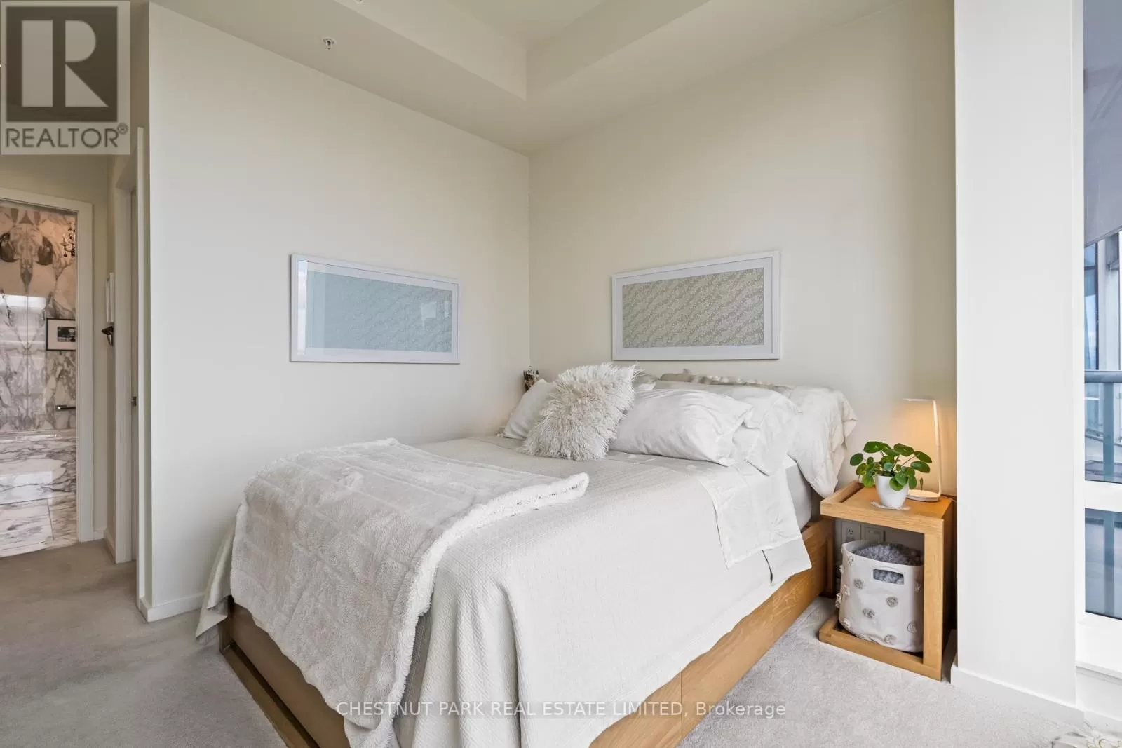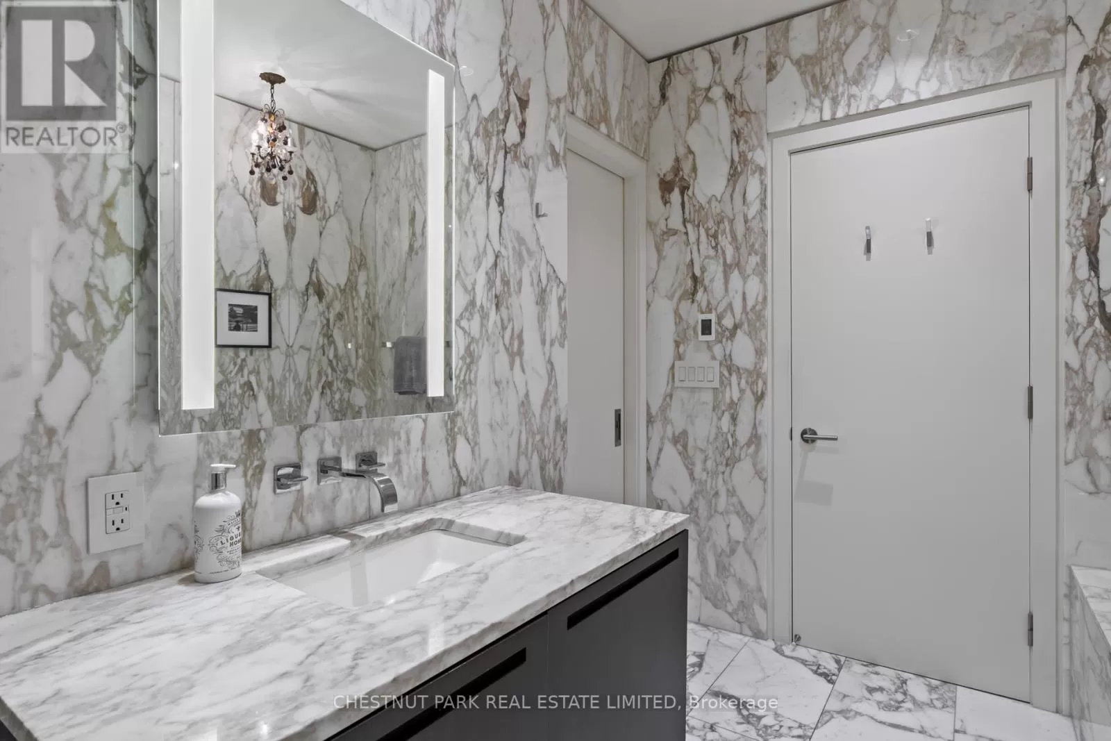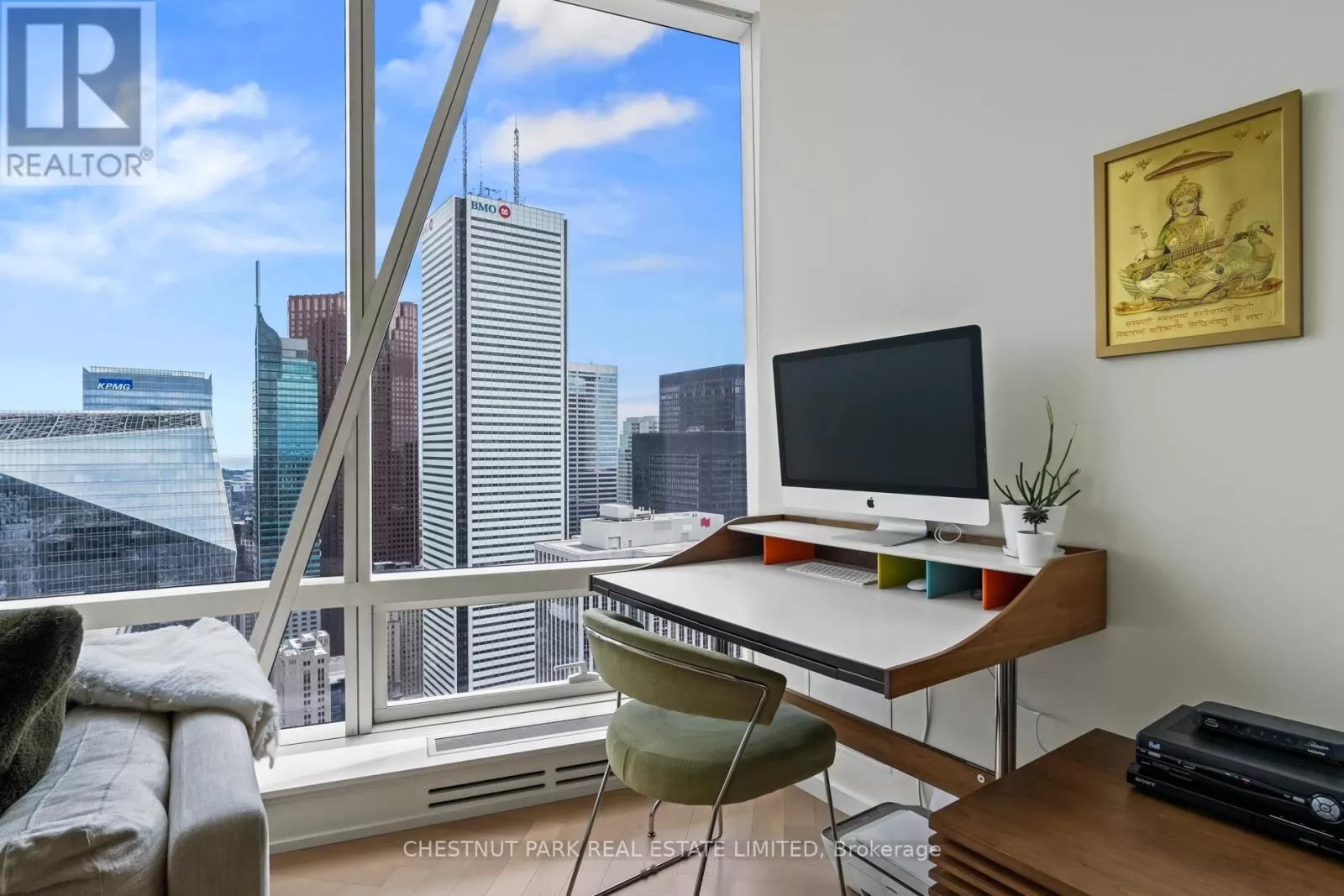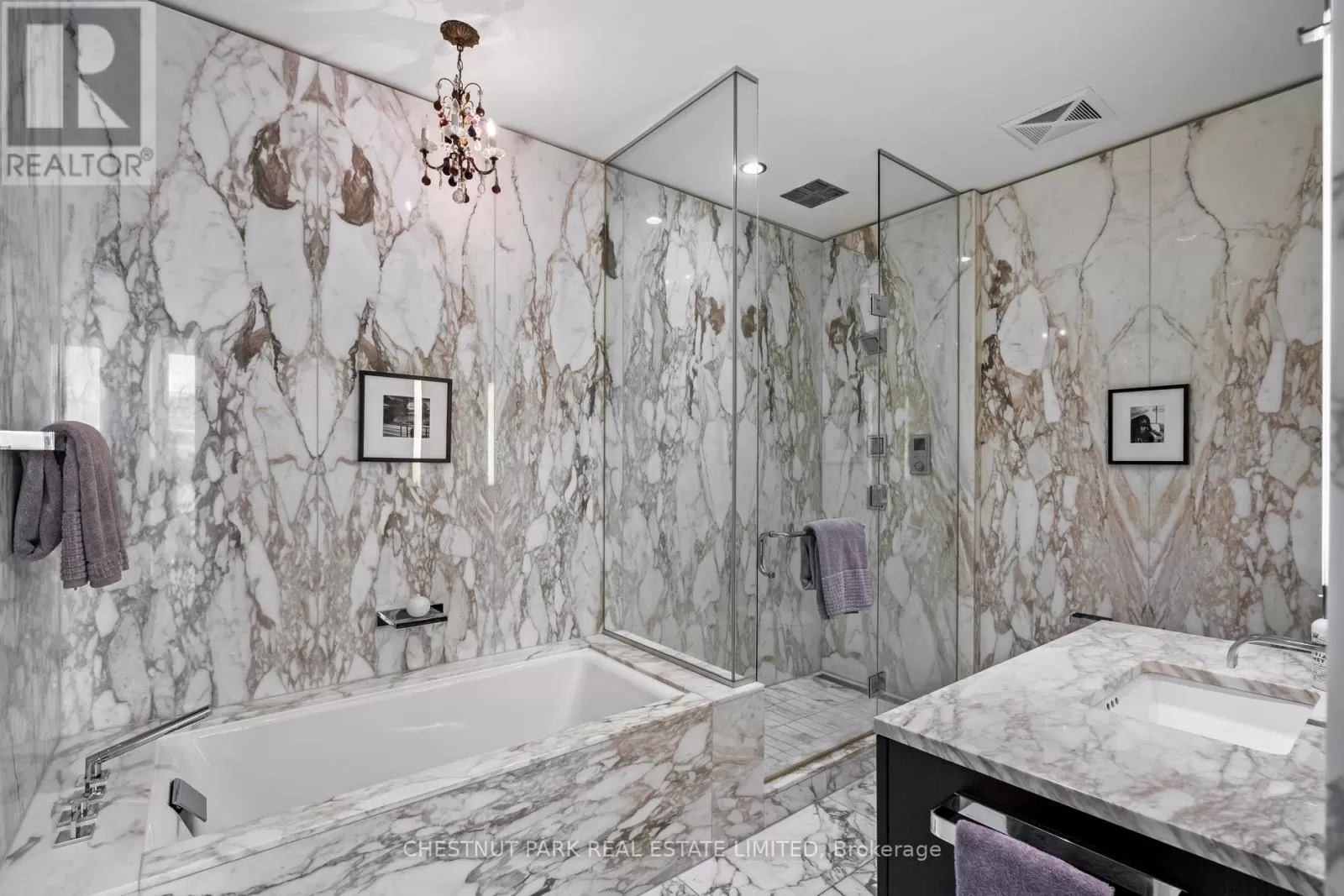 Cross Streets: University and Adelaide. ** Directions: NW corner of University and Adelaide. Suite 5707 is a distinguished one-bedroom Private Estate suite above the Shangri-La Toronto, where panoramic skyline and lake views shift effortlessly from sunlit horizons to a dazzling nighttime city glow. With 10-ft ceilings (only for floors 50 and higher), herringbone hardwood floors, and a Boffi Italian kitchen featuring Miele and Sub-Zero appliances, the home combines elegance and functionality. Motorized shades are featured throughout, while custom Poliform closets in both the foyer and bedroom add boutique-inspired refinement. The marble-clad four-piece ensuite is a spa-like retreat with a deep soaker tub, heated floors, and seven-head Kohler DTV digital shower. One parking stall with valet service and a large private locker room adjacent complete this unique offering. Residents enjoy access to world-class hotel amenities and services including 24-hour concierge and security, a fitness centre, indoor pool, sauna and steam rooms, and valet parking (available only to Private Estate floors)all in the heart of Toronto's Entertainment and Financial Districts. (id:27476)