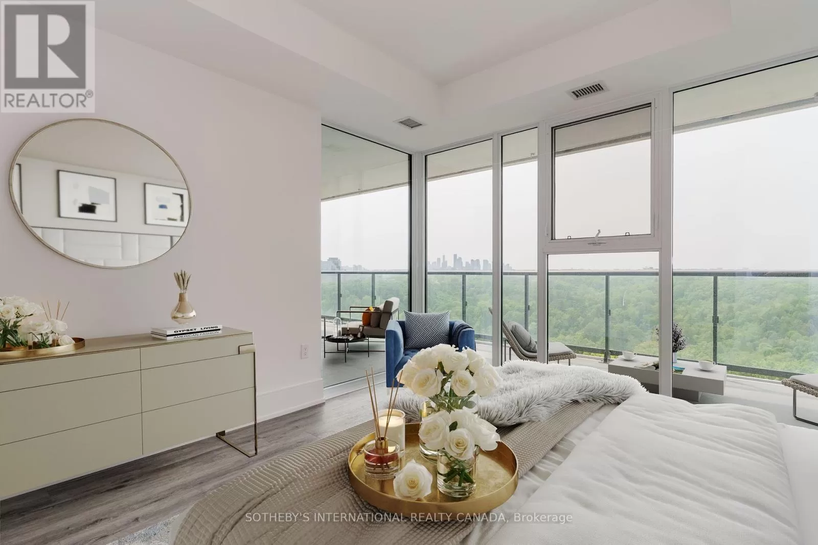 North of Eglinton "Chateau Auberge on the Park" . The most luxurious tower in the prestigious Auberge community, Chateau Auberge is a stunning statement of elegance and sophistication. Nestled within the serene greenery of Sunnybrook Park, this iconic residence blends urban convenience with natures tranquility. Perfectly positioned near Torontos most exclusive neighborhoods, Chateau offers an exceptional lifestyle in a coveted location Unparalleled Luxury One of the most refined and luxurious condominiums in Toronto Ultimate Privacy Prime bedroom with no facing residential condo towers ensures unmatched peace and privacy. Breathtaking Views Enjoy unobstructed panoramic vistas of the city skyline, the CN Tower, and lush green spaces. Prime Location Steps from the expansive Sunnybrook Park and minutes to Leslie subway station. Downtown Toronto. Thoughtful Design Open-concept layout with a functional, spacious floorplan Outdoor Living Expansive balconies and an unusually large interior living space, rare for condo living. This sun-drenched west suite is rarely available and highly sought after. Featuring huge terrace spanning the entire length three spacious bedroom and main living area., this residence is designed for comfort and style. Floor-to-ceiling windows fill the home with natural light, while rich hardwood flooring adds warmth and continuity throughout. The upgraded kitchen is a chefs dream, equipped with a full suite of premium Miele appliances and anchored by a large central island perfect for entertaining. The generous living and dining area offers ample space for gatherings, relaxation, and enjoying the spectacular views. The primary suite is a true retreat, featuring a walk-in closet, a luxurious 5-piece ensuite with double sinks, and direct access to the balcony. Residents enjoy world-class amenities, including a state-of-the-art fitness centre, indoor pool, 24-hour concierge, elegant guest suites, and more. Whether you're downsizing, a busy professional (id:27476)