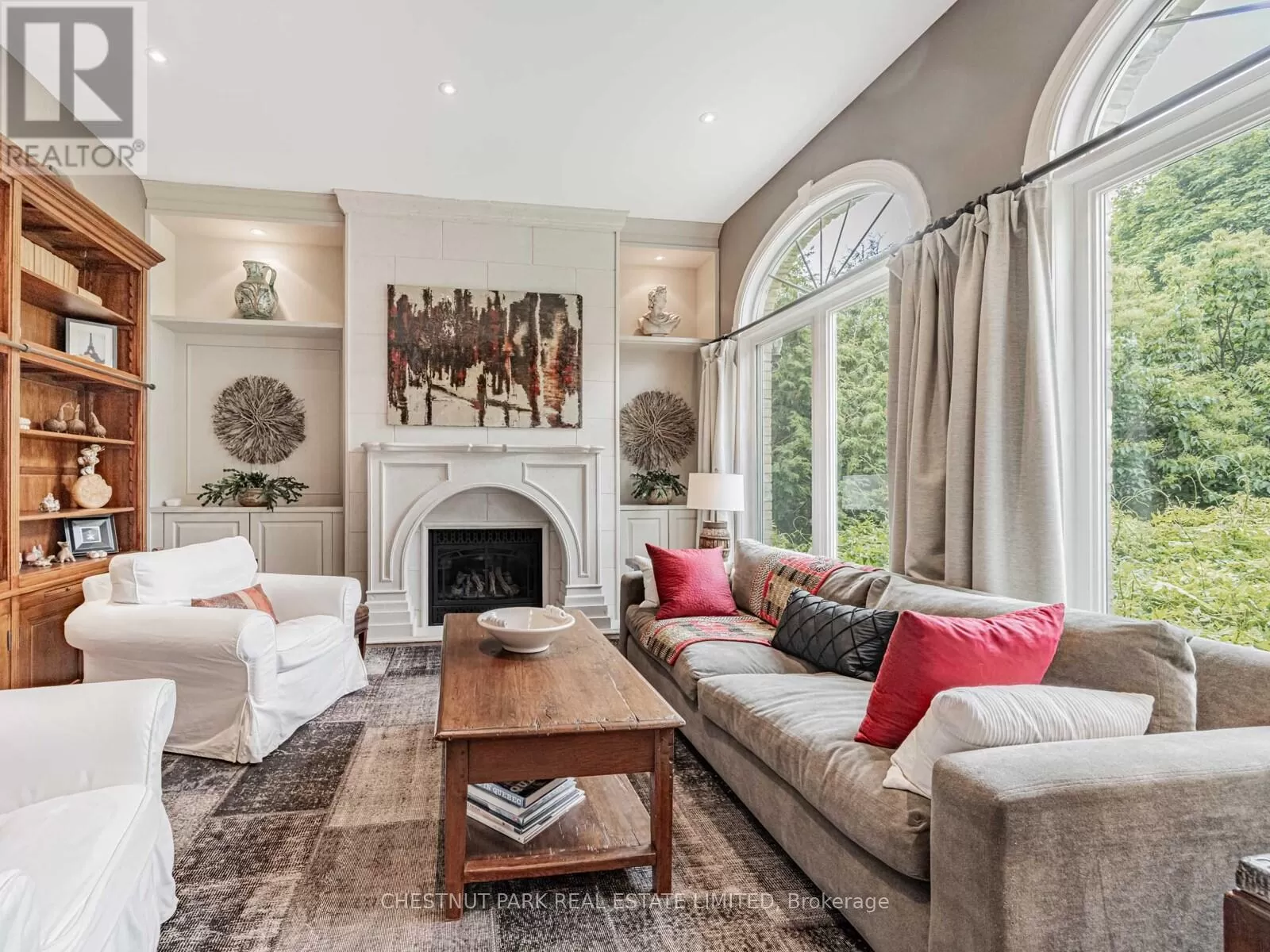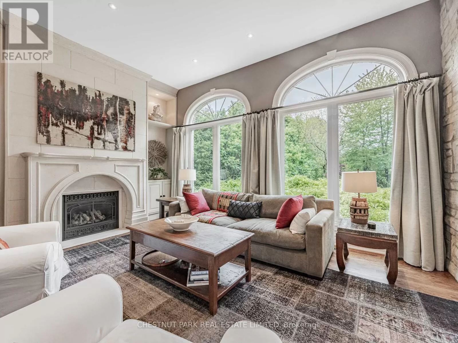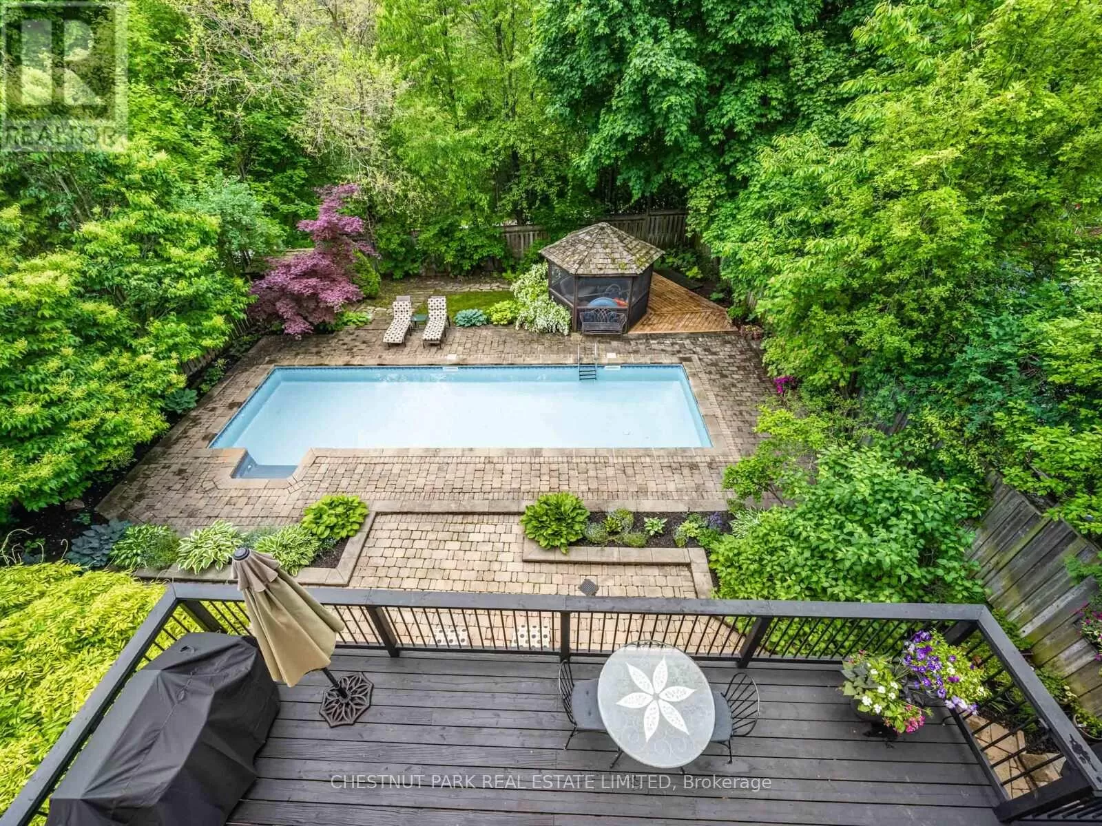 Bayview Ave & Sheppard Ave E. Elevate your lifestyle in this exquisite custom-built residence. Nestled in prestigious Bayview Village, set on a prime south ravine lot. Luxuriously appointed with elegant architectural details, masterful craftsmanship, generously proportioned rooms, soaring ceilings, and natural light streaming in through expansive windows, skylights, and French doors. Enjoy wide plank oak hardwood, travertine, marble, and slate floors. French doors walk out from three levels to the breathtaking private garden and tranquil spa-like setting featuring a saltwater pool, patios, perennial garden, gazebo, and pergola for private entertaining. This majestic home boasts over 6,900 sq ft of total living space with four bedrooms, each with an ensuite, on the second floor and a completely finished lower level boasting multiple walk-outs, a spacious recreation room with a three-sided gas fireplace, gym, fifth bedroom, and a pool change room with ample storage. Gracious open concept living and dining rooms feature coffered ceilings, elegant windows, and a beautiful stone mantled gas fireplace affording the perfect ambience for formal entertaining. A designer chef's kitchen features best-in-class appliances, a center island, breakfast area, floor-to-ceiling windows, and walk-out to a deck overlooking the garden. It opens to a spacious, sun-filled family room featuring a gas fireplace, custom built-ins and floor-to-ceiling windows overlooking the wisteria-covered pergola and sparkling pool. The expansive primary suite overlooks the serene garden and features a gas fireplace, a gorgeous custom his and hers walk-in dressing room, and a sumptuous five-piece marble ensuite with floor-to-ceiling windows and French doors opening to a spacious terrace overlooking the stunning garden and ravine beyond. Enjoy this sought-after upscale neighbourhood minutes to top-rated schools, parks, shopping, transit, and access to major Toronto (id:27476)