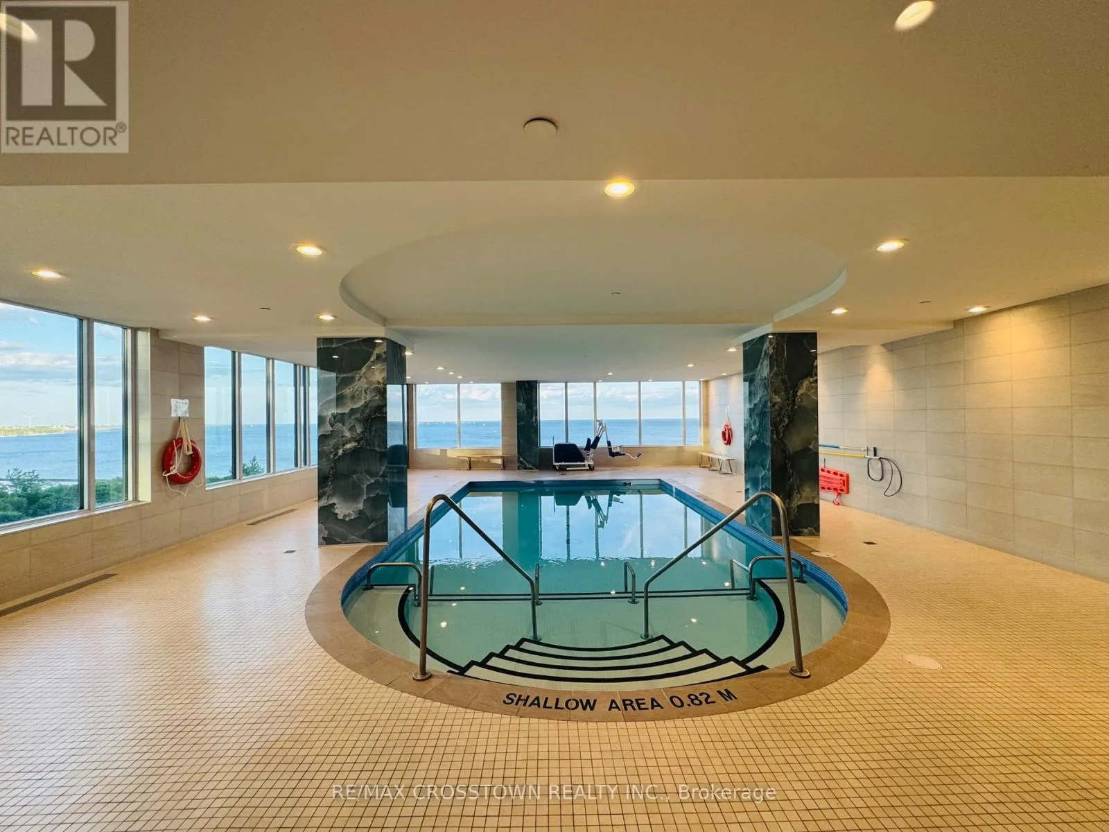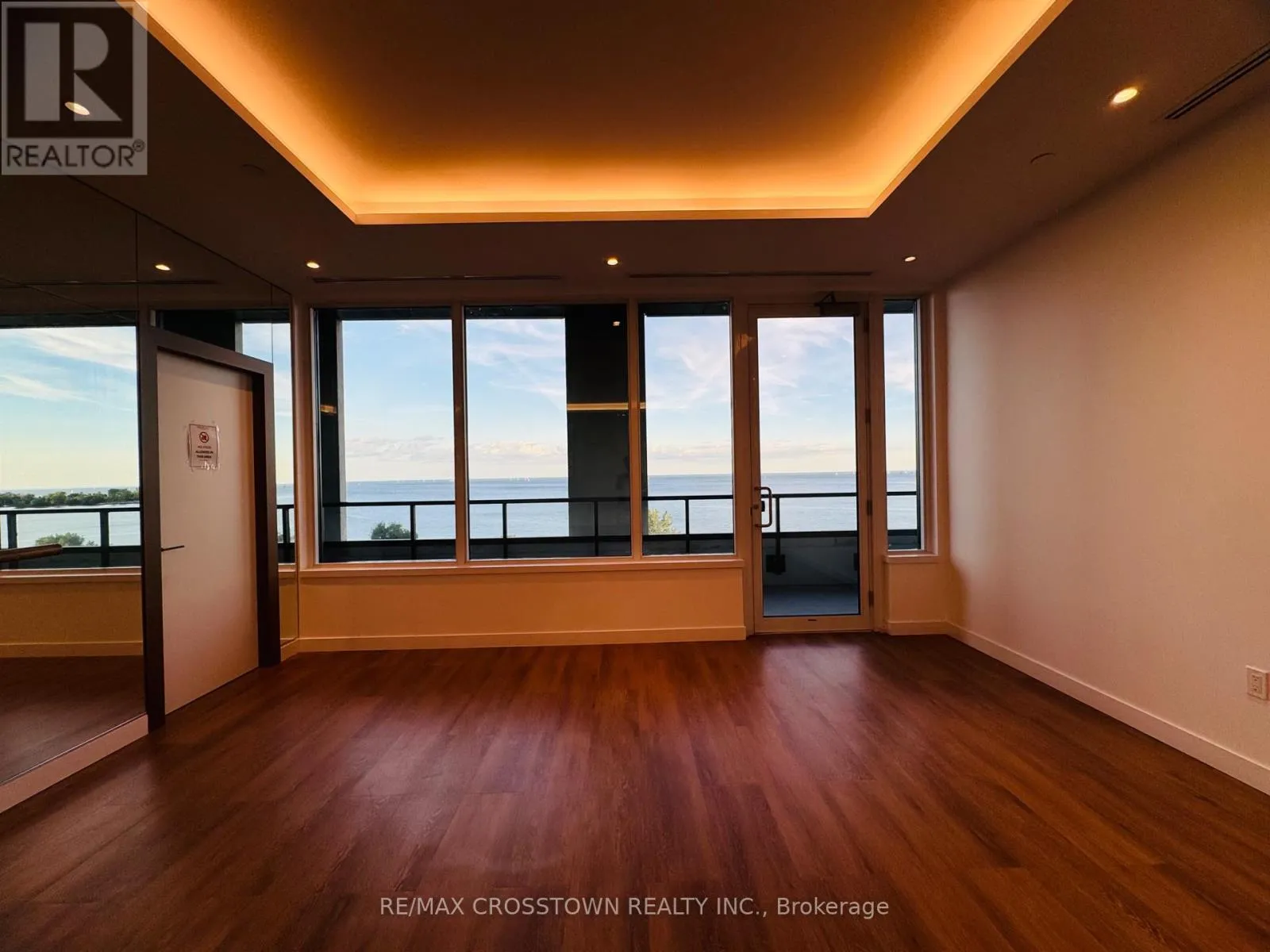 Cross Streets: Lake Shore & Windermere. ** Directions: Lake Shore & Windemere. Welcome to Mirabella Condos! Experience the beauty and serenity of waterfront living in this south-facing suite with breathtaking lake views from both the living room and the primary bedroom. The modern kitchen is equipped with sleek cabinetry, quartz countertops, ceramic backsplash, and built-in stainless steel appliances. The spacious primary suite offers a three-piece ensuite, a large closet, and a picture window overlooking the lake, while the versatile den with sliding doors can be used as a second bedroom, office, or guest space. The main bathroom includes a tub/shower combination, and the separate entryway with a large closet adds functionality. With 9-foot ceilings and laminate floors throughout, this home combines comfort with style.Enjoy world-class amenities including 24/7 concierge service, fitness centre, yoga studio, indoor pool with change rooms, library, party room, two guest suites, childrens play area with outdoor patio, and a landscaped garden with BBQs and dining areas. Steps to Sunnyside Boardwalk, Sir Casimir Gzowski Park Beach, and High Park. Minutes to Sobeys, LCBO, shops, TTC, QEW, and Gardiner Expressway. Internet included! (id:27476)