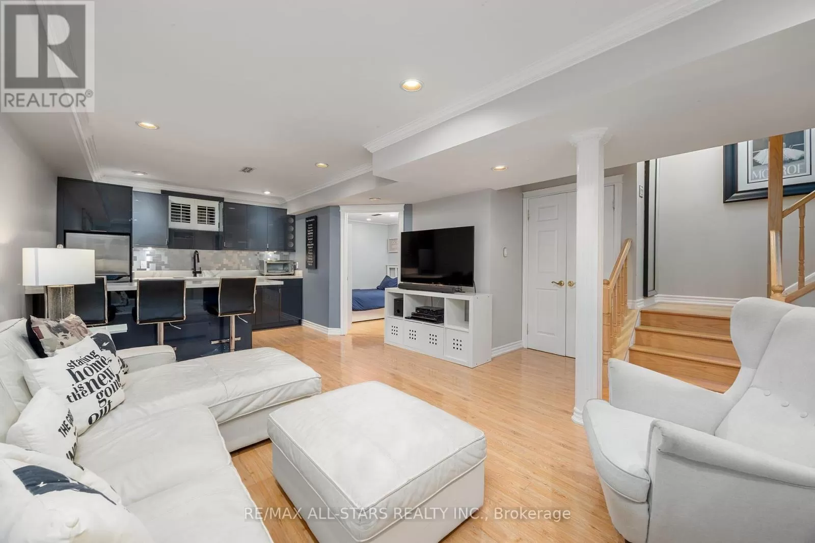 Cross Streets: Eglington / Victoria Park. ** Directions: Google It :). A spacious and versatile townhouse in the heart of North York. With 5 bedrooms and 4 bathrooms, this home has been thoughtfully designed to suit families of all sizes. From its custom floorplan featuring an open-concept kitchen with a sit-up central island to the inviting family room with a double-sided gas fireplace, every detail has been tailored for both style and comfort. A central dining room anchors the main floor, while a bonus room with an adjoining full bathroom offers the flexibility of a home office or an additional bedroom. Upstairs, four well-proportioned bedrooms provide ample space for family living, with a beautifully upgraded Primary Ensuite bathroom, while the fully finished lower level expands your possibilities with a dedicated entertainment area, full wet bar, sit-up island, full kitchen-style cabinetry, and cozy electric fireplace. A 3-pc steam shower (with heated floors!), lower-level laundry, storage and office space finish up the basement. Whether you're hosting friends for a movie night or enjoying quiet evenings at home, the layout easily adapts to your lifestyle. And just wait until you see the backyard! The outdoor living space is equally impressive, featuring a multi-level composite deck, pergola, and hot tub - an ideal setting for year-round relaxation and gatherings. Situated minutes from the new Eglinton LRT, transit, amenities and convenient highway access, the location is ideal for commuters! (id:27476)