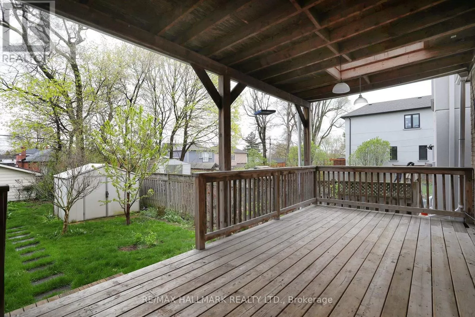 Cross Streets: ST CLAIR AND VP. ** Directions: WEST OF VICTORIA PARK NORTH OF ST CLAIR. Experience the charm of Adorable & Affordable at 11 Adair Rd. This lovely detached bungalow welcomes you with open arms. Revel in the warmth of beautiful hardwood floors in the open-concept living and dining rooms, perfect for your family. The spacious kitchen is ready for culinary creativity. Three good sized bedrooms. Extra storage locker in the basement. Amazing covered roof deck with a skylights, ideal for hosting gatherings with a gas BBQ hookup, leading to a deep, private, fully-fenced backyard. Conveniently located with easy access to the Victoria Park subway station by bus. (id:27476)