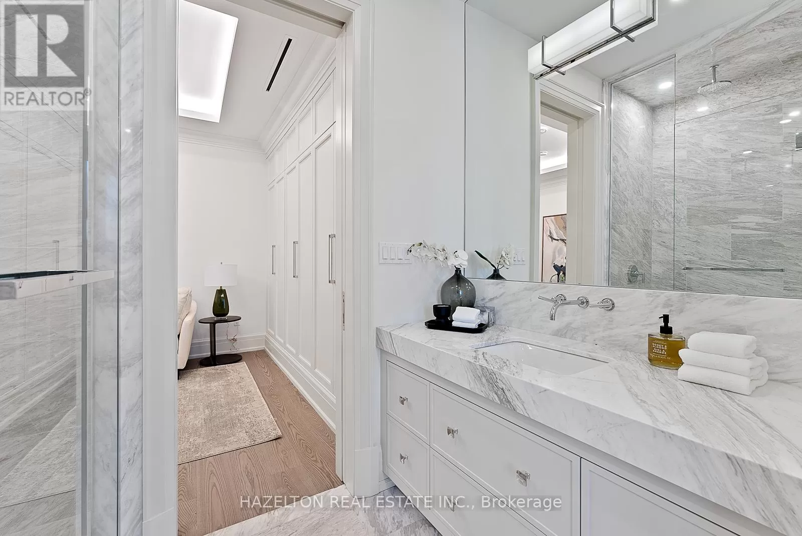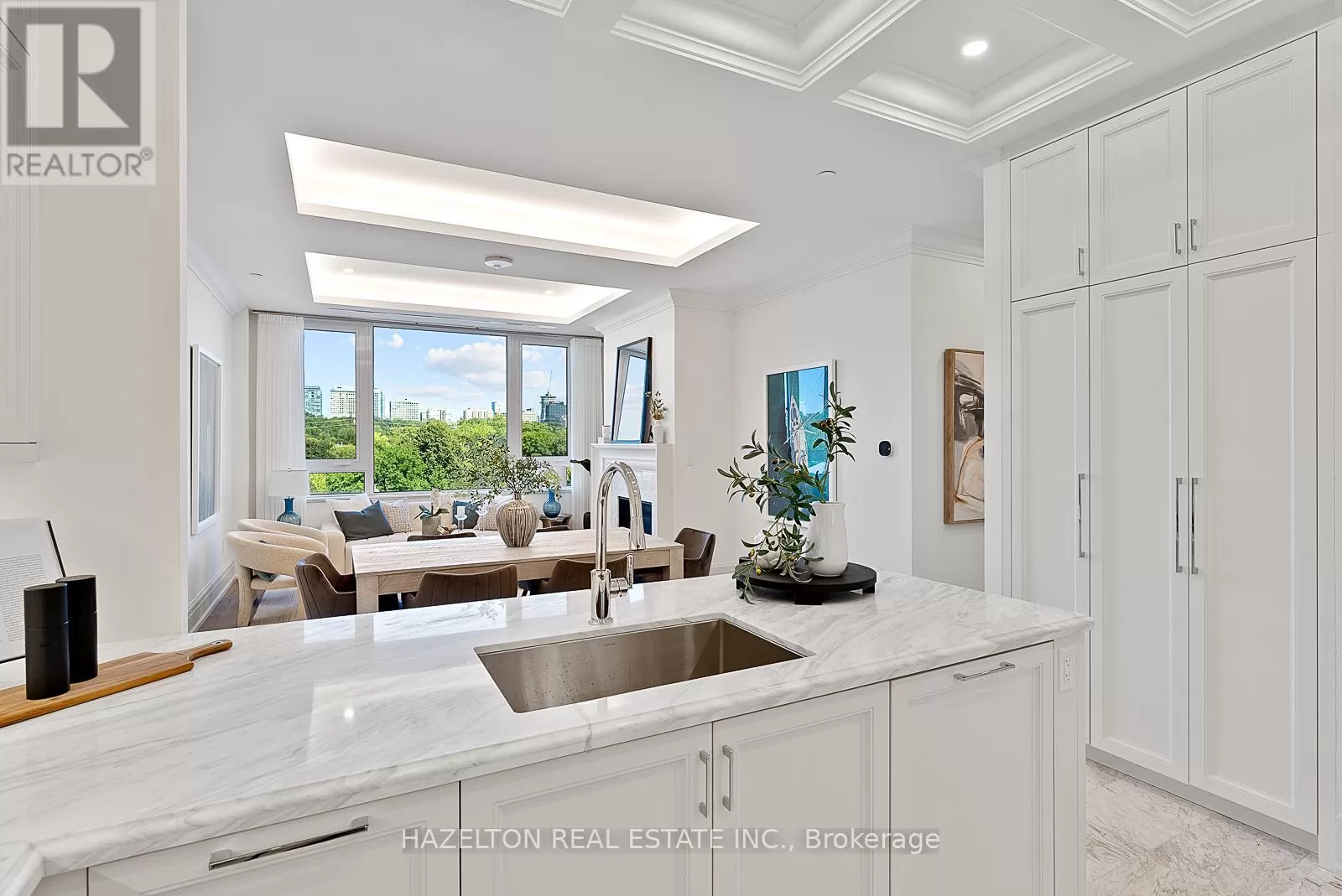 Cross Streets: Davenport/Avenue Rd/Hazelton. ** Directions: east of Avenue Rd, corner of Hazelton. Yorkville perfection, this nearly 1600 sq ft condo is a gem within a premier boutique building, located in the city's best neighborhood. This residence boasts numerous luxurious upgrades, including elegant hardwood floors and marble finishes in all three bathrooms. The kitchen features stunning marble countertops and a matching slab backsplash, creating a seamless and sophisticated look with top of the line built in appliances. The living area is enhanced by a romantic gas fireplace with a custom mantle, perfect for relaxing romantic evenings. Two charming juliette balconies (one in each bedroom) offer a touch of flair, with lovely clear views over the leafy green treetops of Ramsden Park. The custom coffered ceilings with recessed lighting add an extra layer of elegance and sophistication to the home. Relaxing evenings in the den, with wall-to-wall built-in millwork to provides exceptional storage and a refined aesthetic. A bright and generously sized primary bedroom features a custom walk in closet interior, designed to maximize space and organization and a 3 piece marble ensuite. This condo is a perfect blend of luxury and comfort, making it an ideal home in one of the city's most sought-after locations. (id:27476)