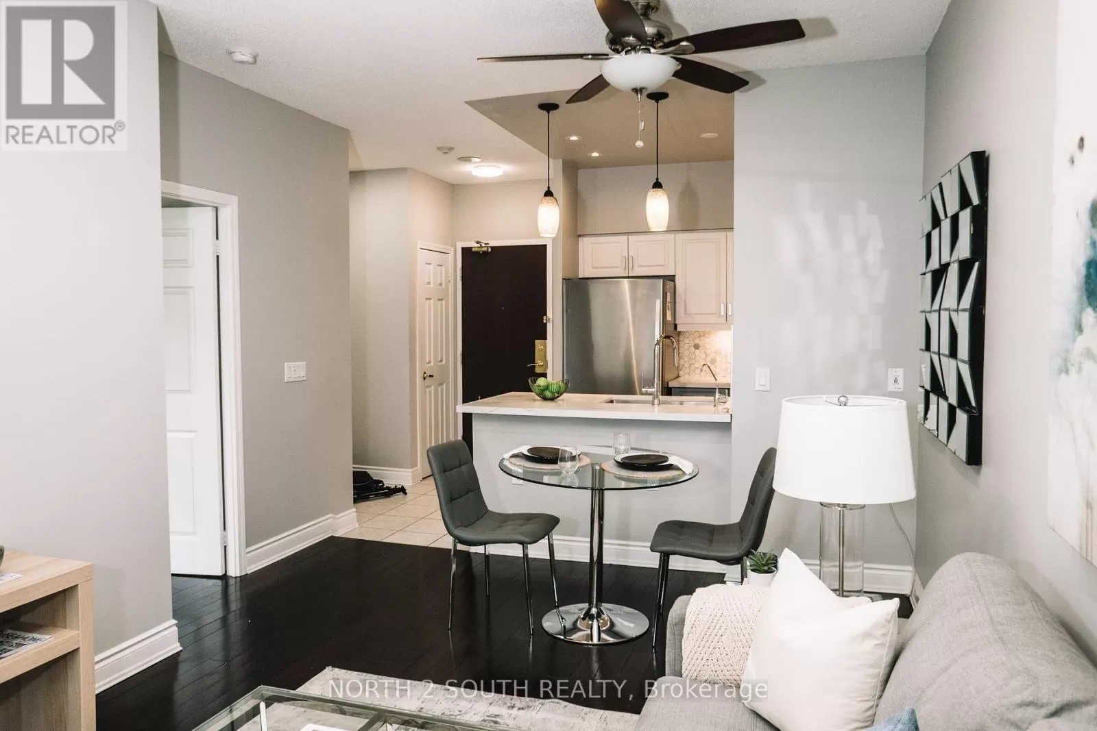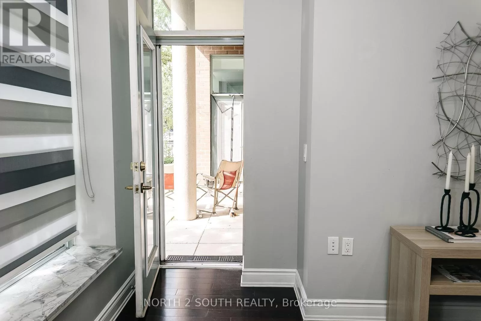 Yonge / Finch Rarely offered ground-level 1-BR with private patio at Yonge & Finch! Spacious open-concept layout with mahogany hardwood floors, breakfast bar kitchen with water filtration, and hard-wired internet ideal for working professionals. Ensuite laundry. All utilities included (heat, hydro, water, A/C) + owned parking & locker. Building amenities: 24-hr security, exercise & recreation rooms, landscaped courtyard. Steps to Finch Subway, TTC, GO, parks, shops & dining. Perfect starter, downsizer or investment! (id:27476)