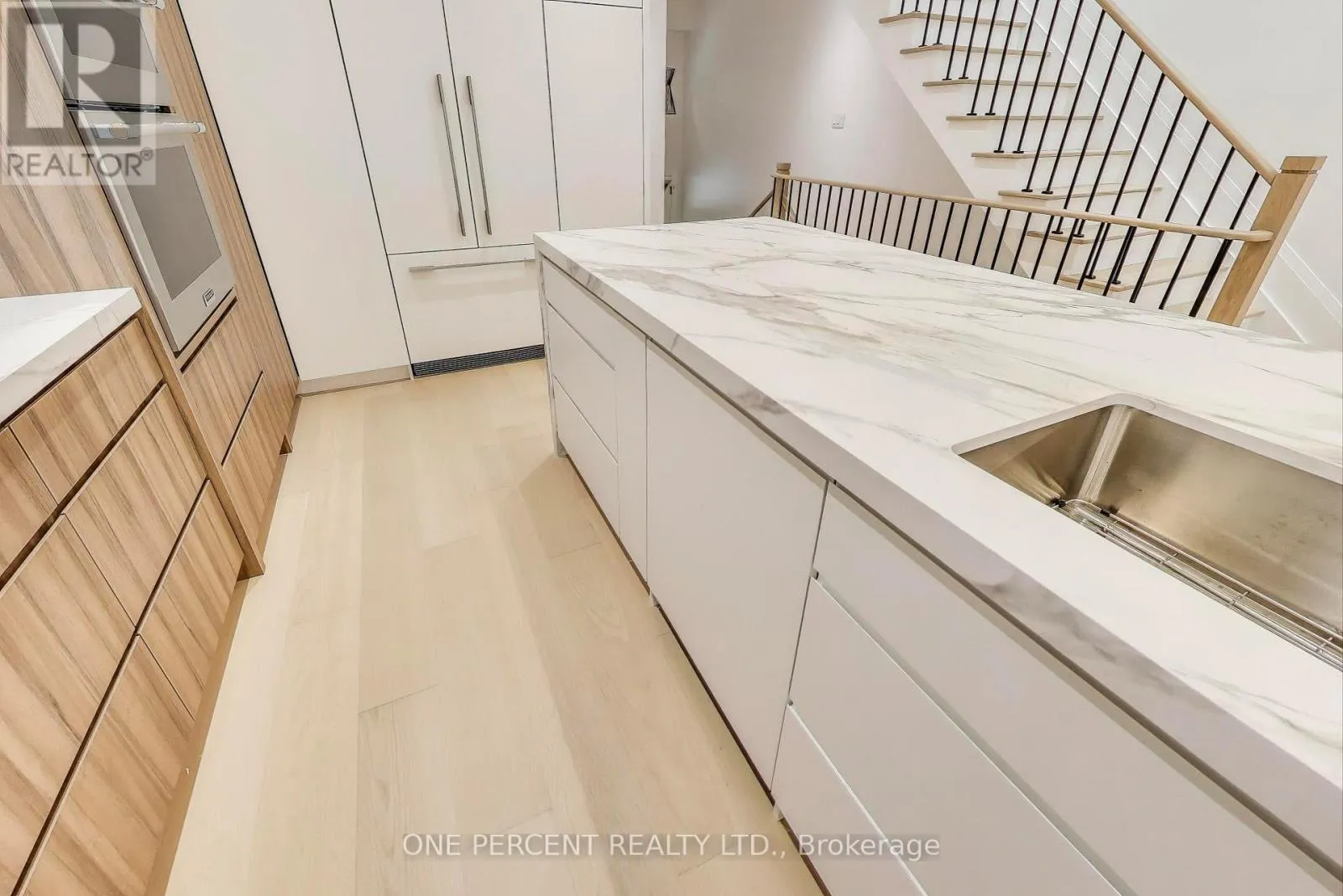 Cross Streets: Queen St W + Bathurst St. ** Directions: https://maps.app.goo.gl/6Rg7A9in9F1t9F6z8. Welcome to 23 Mitchell Ave, a renovated detached home that offers a blend of modern design and functional living space. This two-story house, built in 2000 and renovated in 2025, sits on a 25x91 foot lot. It has 4 bedrooms and 3 full bathrooms, plus a main floor powder room. The kitchen is equipped with quartz countertops, a waterfall centre island, and high-end integrated and stainless steel appliances. The sunken living room is spacious, open, and overlooks the backyard. Throughout the main and upper floors, you'll find white oak engineered hardwood floors and LED pot lights. The home has 2,018 square feet of above-grade living space, with an additional 460 square foot lower level and 280 square foot garage. The lower level features a recreation room with heated floors and a walk-out to the backyard. A 3-piece bathroom was added to the lower level during the 2025 renovation, offering the potential for an in-law suite or fifth bedroom. Other features include a separate laundry room, built-in garage with interior access and private brick front pad, providing parking for two cars. Located in the vibrant Queen West neighbourhood, this property is close to many amenities, with an enviable Walk/Transit/Bike Score of 97/97/93. Commuting is a breeze, with the Queen streetcar providing a quick and direct route to the financial district, ScotiaBank Arena and Rogers Centre. The King street car offers quick access to the Distillery District and Leslieville. Once the Ontario Line is complete, the King-Bathurst Station will be in close proximity. Coffee shops and restaurants like Jimmy's Coffee and Terroni abound nearby. The home is also near parks, including Stanley Park and Trinity Bellwoods Park, which offer a range of recreational facilities. Venture south to find easy access to the lakefront. Offers anytime. (id:27476)