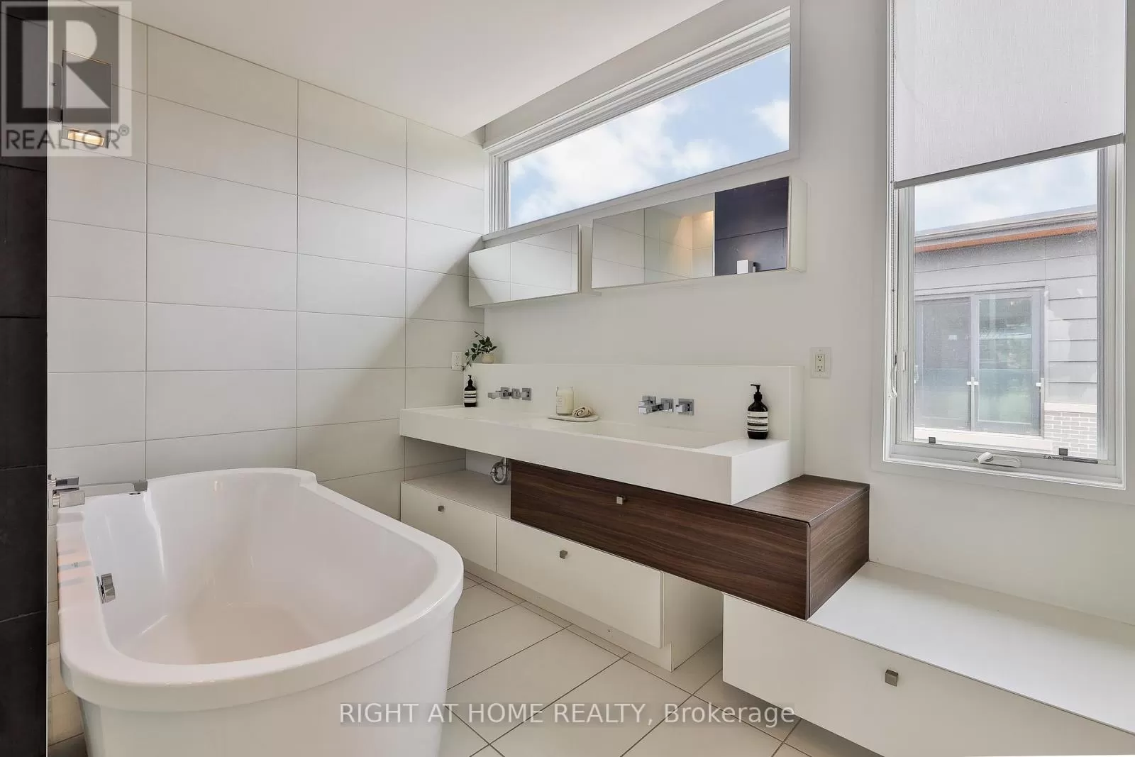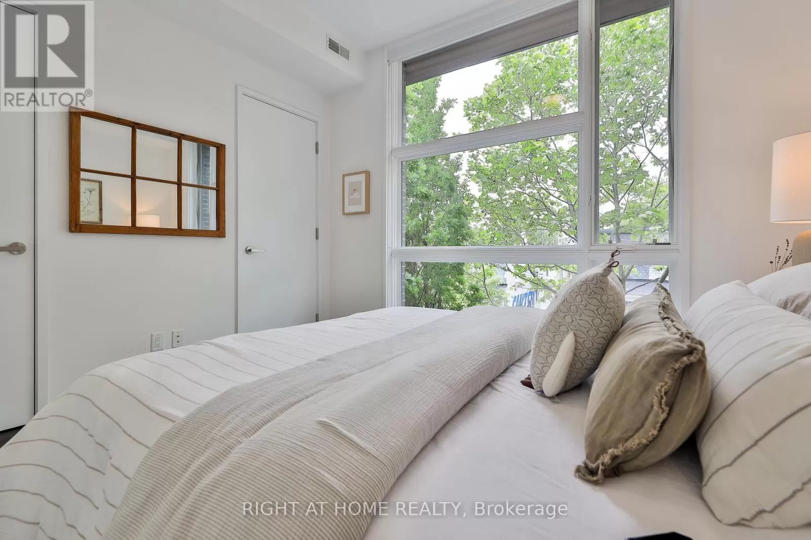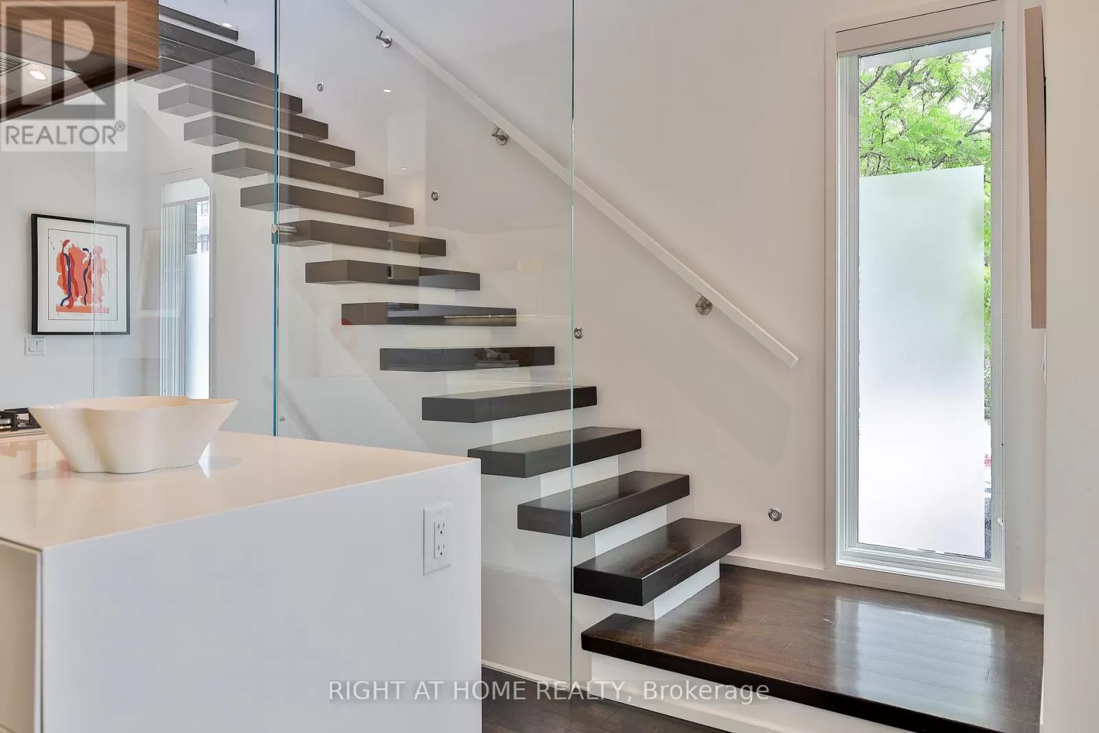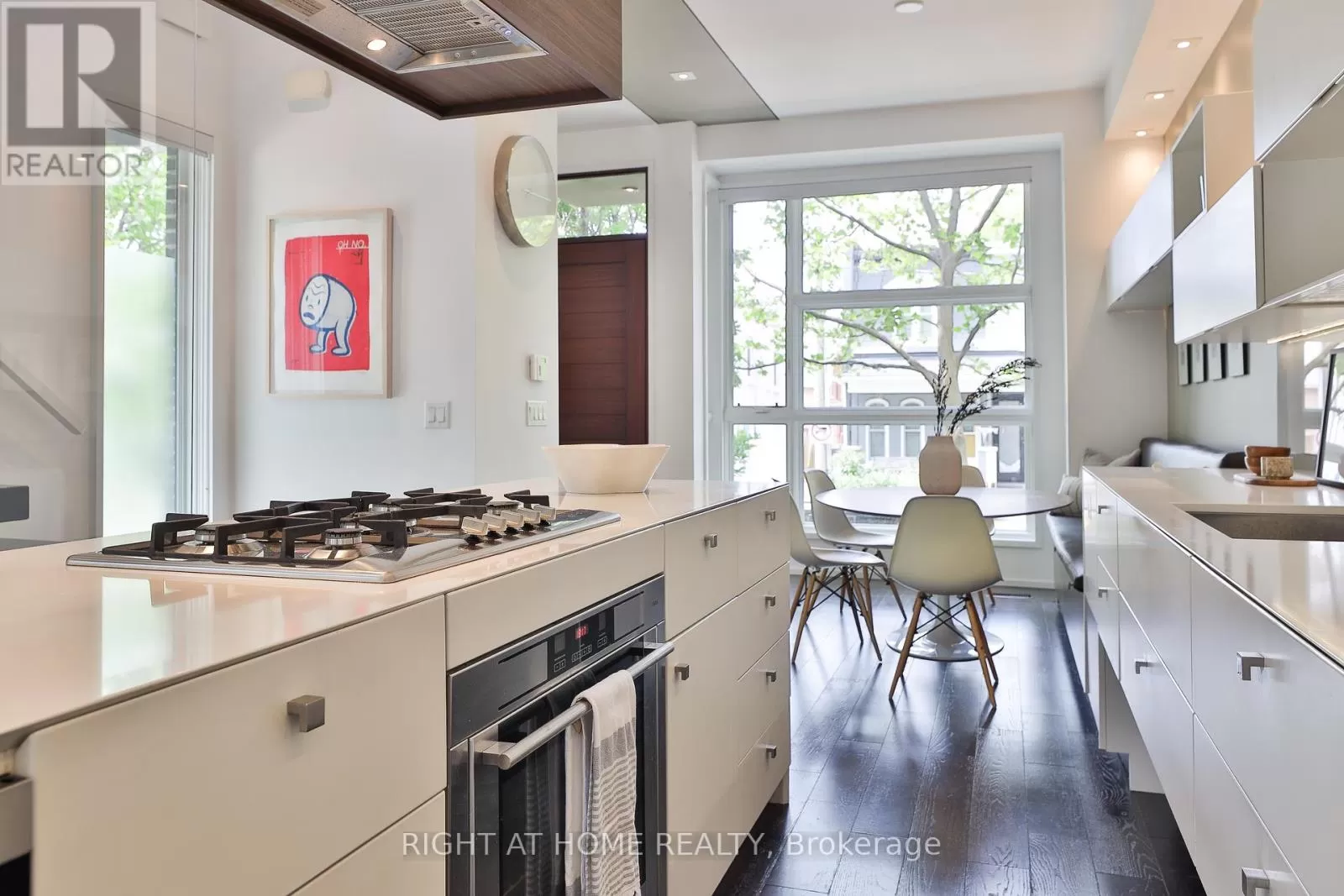Cross Streets: Dundas and Claremont. ** Directions: north from Dundas. A bright and spacious home at Trinity Bellwoods Townhomes, ideal for anyone craving modern living in an outstanding neighbourhood. This freehold townhome is defined by a great floorplan, leafy views, a clean modern interior, and a seamless layout ideal for both daily living and superb entertaining. Ten-foot ceilings on the main level frame an expansive chefs kitchen with a generous dining room and a refined living space with custom gas fireplace, built-ins, and walkout to a private urban garden with gas and water connections. Upstairs, you'll find three bedrooms including a remarkable full-floor primary suite with walk-in closet, spa-like ensuite with soaker tub, and a private terrace with quiet views over Trinity Bellwoods. 2nd floor laundry for added convenience. The lower level offers a flexible family room / den / home office, powder room, and direct access to a secure and oversized underground garage. A rare end home in a thoughtfully designed community, just moments to College, Dundas West, Queen West and the park. (id:27476)
