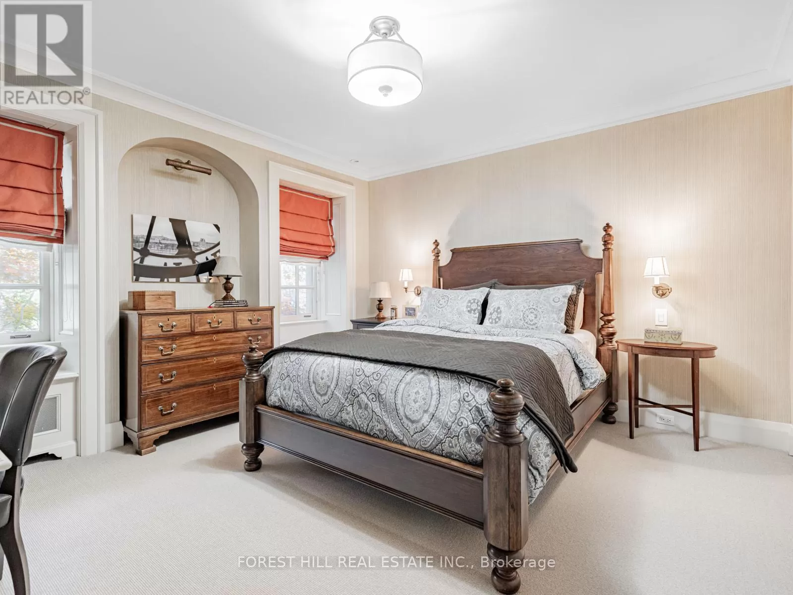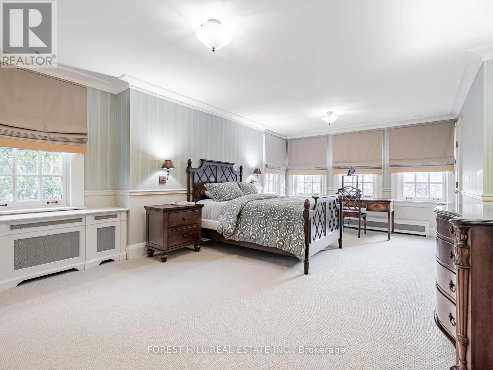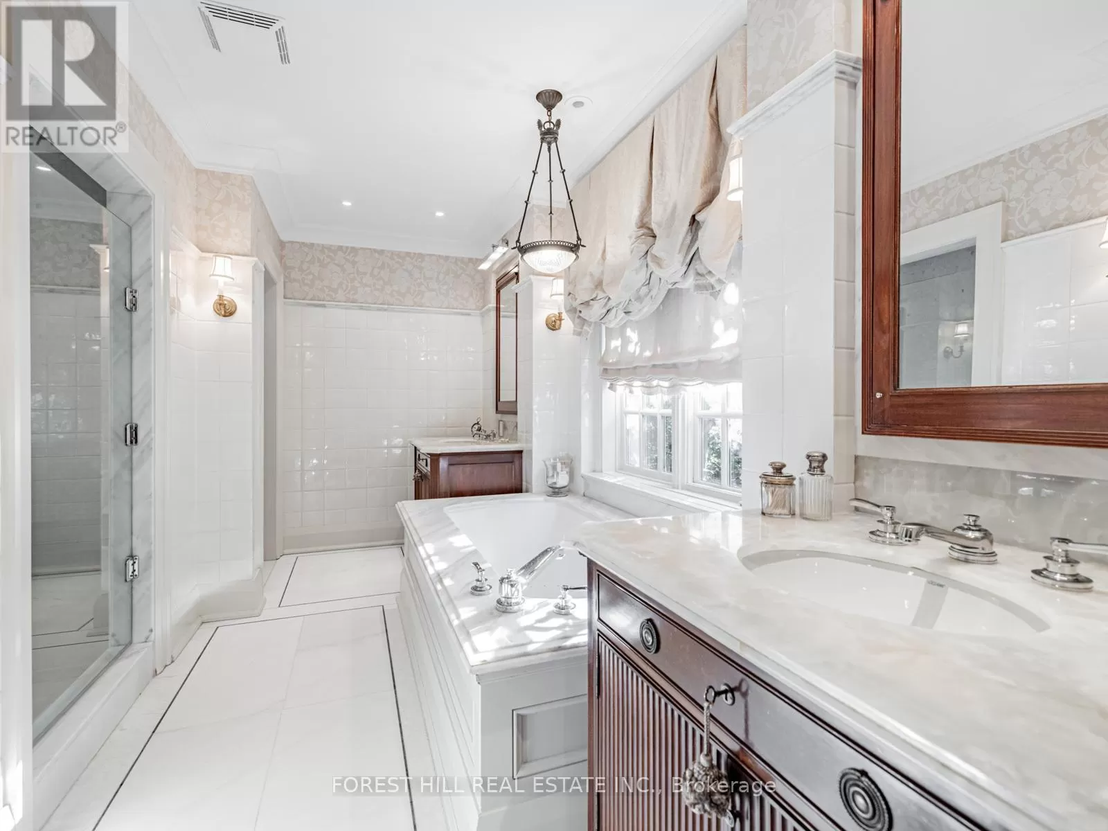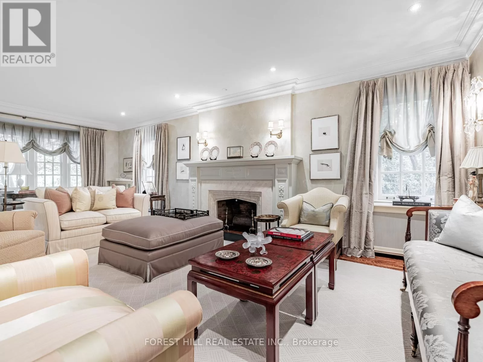 Spadina & Eglinton This classically traditional Forest Hill home exemplifies incomparable elegance and modern luxury, boasting five spacious bedrooms and six exquisitely appointed washrooms. Nestled in one of the most prestigious neighbourhoods, this residence features meticulous attention to details throughout its architecture, from the grand entrance to the intricate moldings and custom millwork. State-of-the-art renovations flawlessly blend with its classic charm, offering an exceptional living experience. Every room is thoughtfully designed with high-end finishes, creating a perfect harmony of comfort, sophistication, and style, ideal for both family living and entertaining. The front and backyard of this home are beautifully and traditionally landscaped, offering an inviting, elegant retreat. The front yard showcases manicured hedges and mature trees, providing a timeless curb appeal. The backyard is equally impressive, featuring lush greenery, perfectly trimmed laws, and a serene garden setting. A thoughtfully designed seating area invites relaxation, while a well-appointed dining area makes entertaining effortless. This outdoor oasis blends sophistication and comfort, ideal for gatherings or quiet moments surrounded by natures beauty. Heated driveway and front landing, Irrigation system, Professionally landscaped backyard with custom pergola, seating area, dining area, and anti-theft lighting, Slate roof, Sump pump, Full generator. (id:27476)
