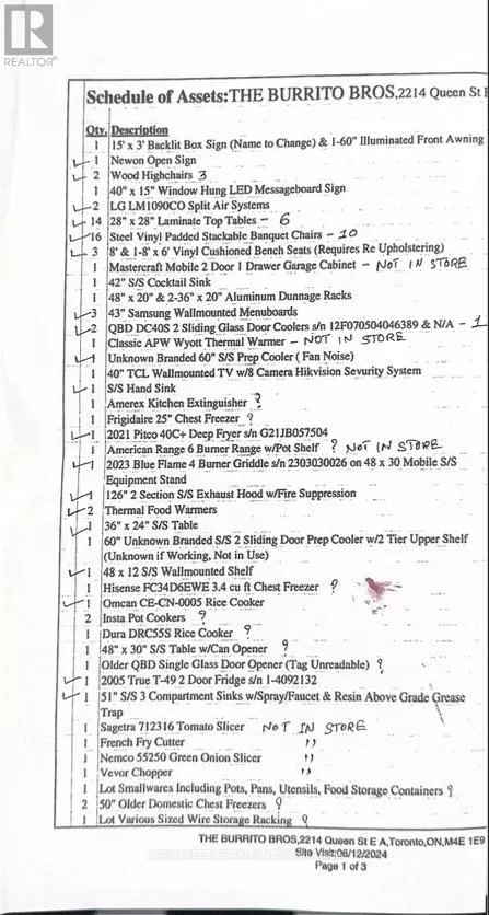 Cross Streets: Queen St E. ** Directions: Queen St E/Beech Ave. Business Name Not Included* Restaurant for sale in prime Beaches area close to the action and walk to Woodbine Beach. Great high-income area drawing many pedestrians and tourists annually. Fully-equipped restaurant with grill kitchen, stove, flat cook stovetop, large exhaust hood, fridges, chest freezers, tables and chairs. Can be converted to any type of cuisine: Mexican, Indian, Chinese, Thai, Shawarma, Etc. Don't miss this amazing opportunity. Equipment and leasehold improvements worth the price. No goodwill, no trade name included. Option to add L.L.B.O. again. (id:27476)