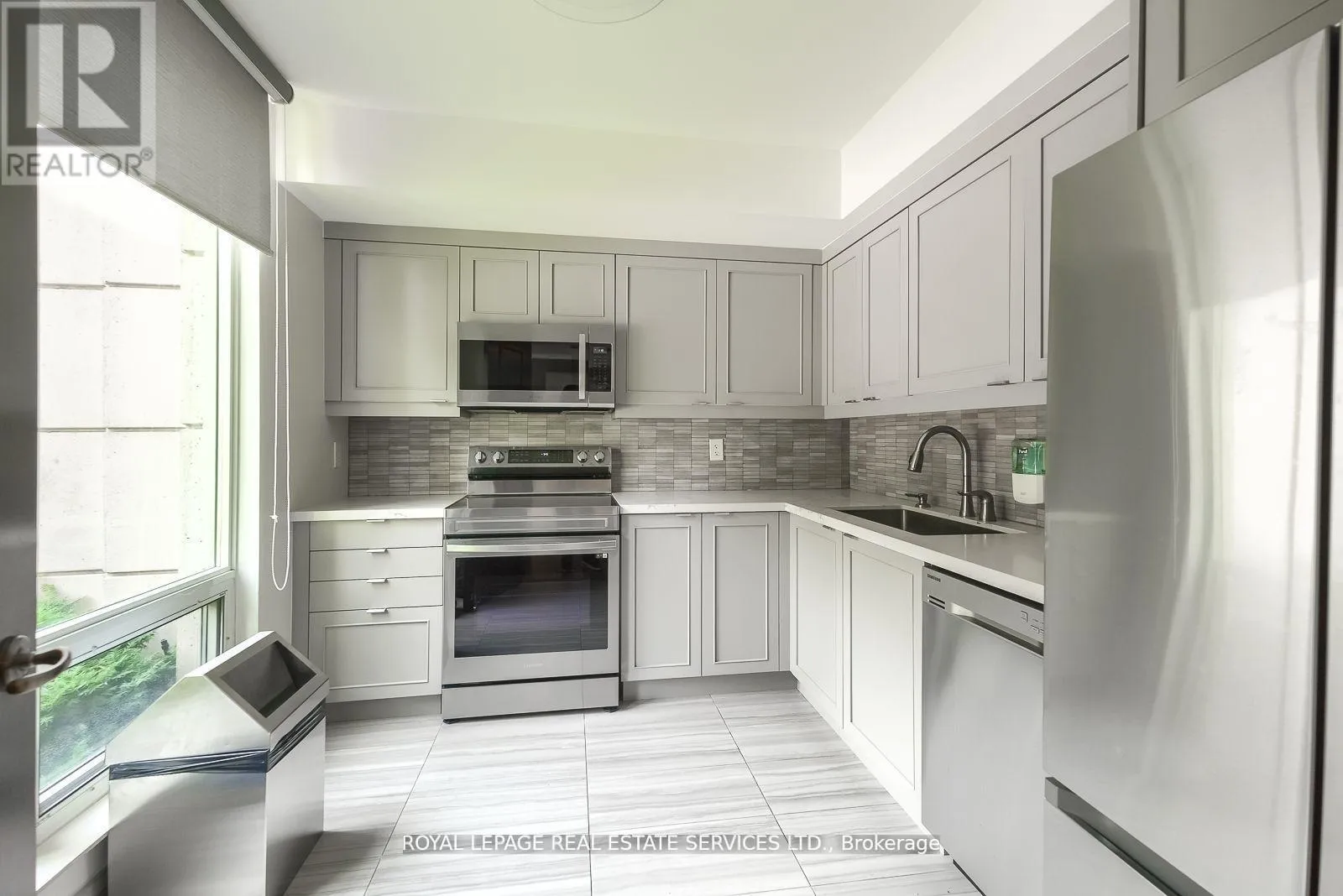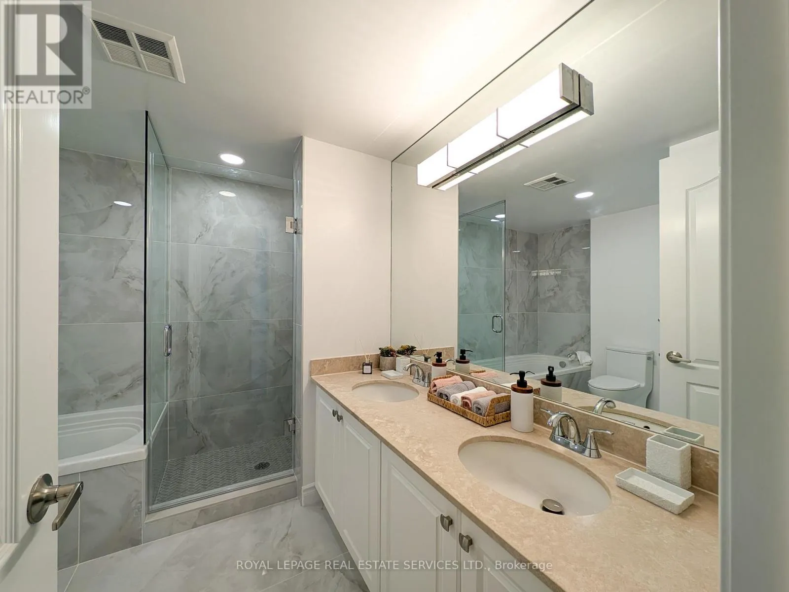 Cross Streets: Yorkmills/Yonge. ** Directions: North of York Mills Rd, East of Yonge Street. RECENTLY RENOVATED and move-in ready! This spacious, freshly painted bright 2+1 bedroom, 2 bathroom condo is beautifully maintained and located on a quiet cul-de-sac in the prestigious St. Andrews neighbourhood.Offering 1,245 sq. ft. of functional living space with 9-ft ceilings and a smart split-bedroom layout, the east-facing unit is filled with natural light throughout the open-concept living and dining area, which walks out to a large balcony framed by floor-to-ceiling windows overlooking a beautifully landscaped courtyard and treetops enjoying panoramic views and a peaceful natural retreat.The kitchen features granite countertop, ample cabinetry, and an extended counter that flows into the dining area, creating an island-style design with new faucet and new pendant lighting ideal for entertaining or casual meals. The primary bedroom includes a W/I closet, additional closet, a 5-pc ensuite, while the second bedroom offers double closets; both are enhanced by large windows with serene views of greenery.A versatile den with French doors and a built-in closet functions perfectly as a home office or optional 3rd bedroom.RENOVATED MASTER BATHROOM(SEP2025) with modern wall/floor tiles, mosaic shower floor, new shower glass door, new toilet, updated faucets,spotlights/light,and sleek finishes designed to provide a spa-like retreat. GENERAL UPGRADES include touch ups to flooring,freshly painted,new door handles,new faucets,new lights, new chandelier, and new kitchen pendants/lights.Building amenities include 24-hr concierge,indoor pool,hot tub,sauna,gym,guest suites,party rooms, library, games area&visitor parking.Maintenance fees cover all utilities and cable & high-speed internet. Parking&locker are conveniently located CLOSE TO THE ELEVATOR. Steps to Yonge St., Hwy 401, TTC, GO, golf, shops, dining, parks&trails, and close to top schools including Owen PS, St. Andrew MS&York Mills CI.Don't miss this opportunity in one of Toronto's most desirable neighbourhood! (id:27476)