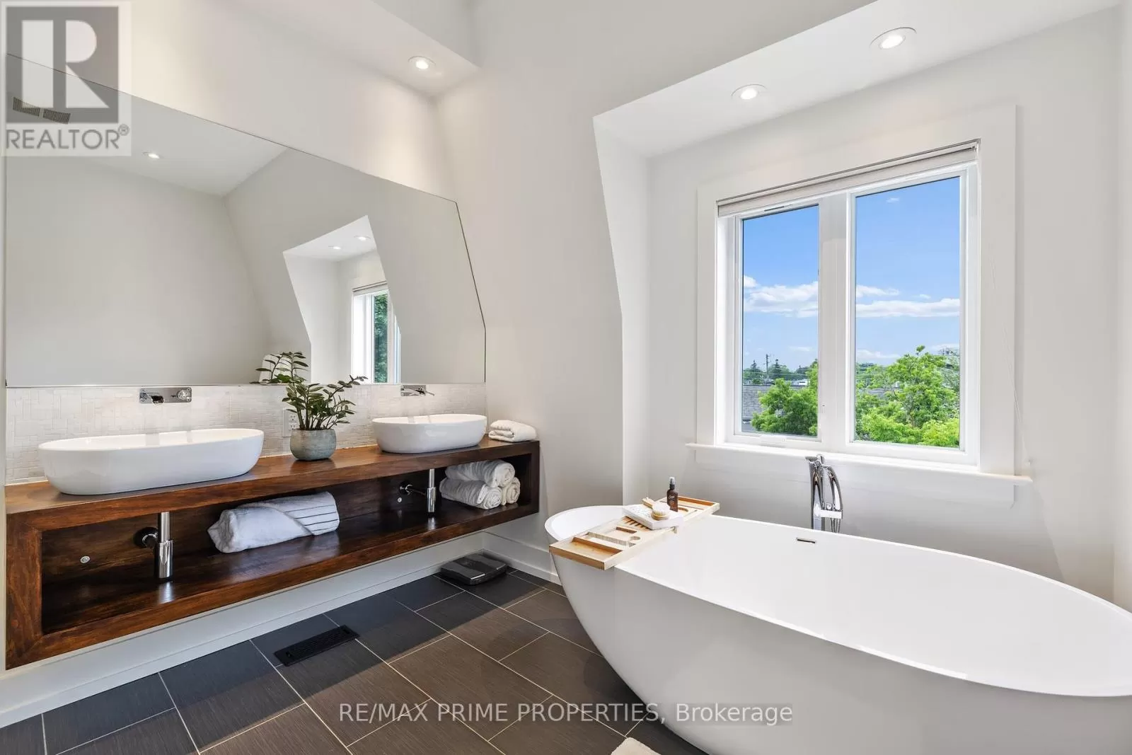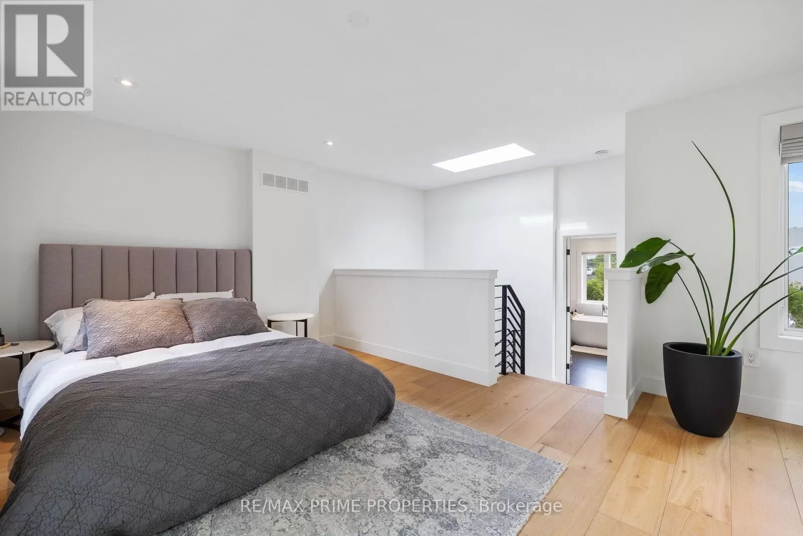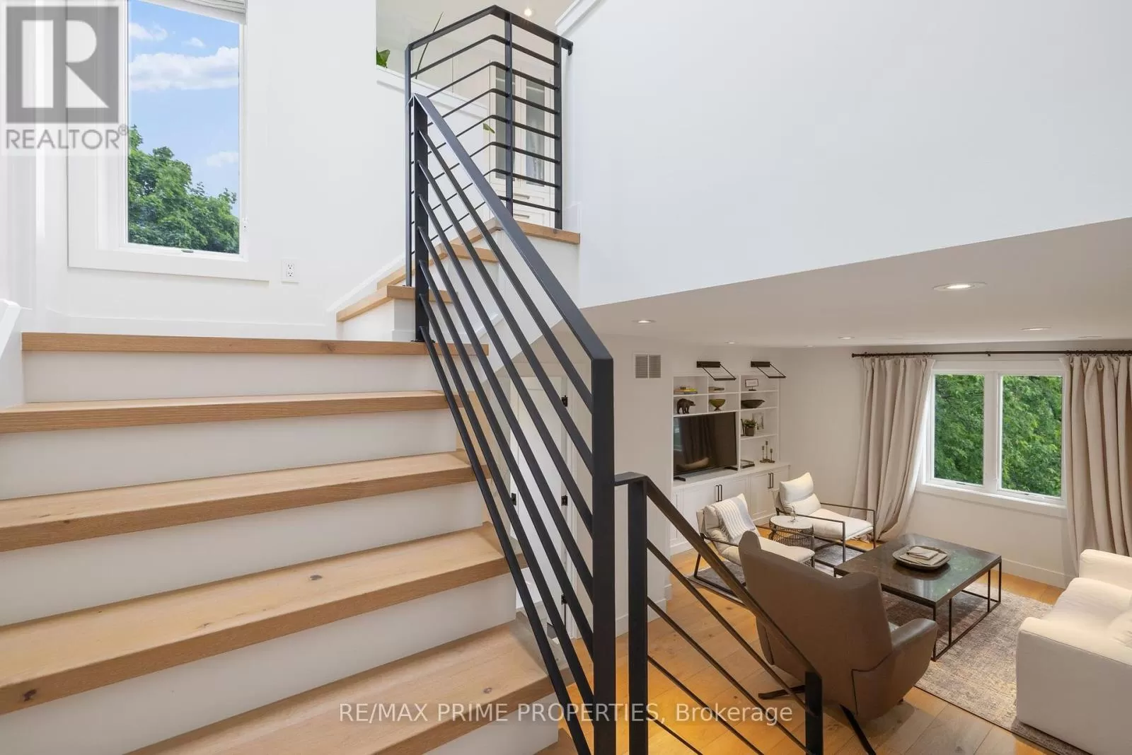 Cross Streets: Victoria Park & Kingston Rd. ** Directions: West of Vic Park, North of Kingston Rd. **OFFERS ANYTIME** Discover the epitome of contemporary comfort and style in this 1650 sq. ft (finished living space), newly renovated end unit townhouse nestled in Toronto's picturesque Beaches neighbourhood. Recently updated with meticulous attention to detail, this home seamlessly merges modern upgrades with the relaxed charm of the Beach community. Step inside to find a bright, airy, open-concept layout, highlighted by newly installed hardwood floors that flow throughout the main living areas. The living room's custom millwork invites relaxation, and large windows flood the space with natural light. Feast your surprised eyes on this gourmet kitchen! It features a 4x8 quartz island, Blanco sink, new stainless steel KitchenAid appliances (2021), and ample custom cabinetry, seamlessly combining style and functionality. The large kitchen island provides a casual dining option for busy mornings or casual gatherings. Upstairs, the tranquil master suite awaits, complete with a large spa-inspired ensuite bathroom boasting a contemporary free-standing Aquabrass stone resin tub, heated floors, and a double walk-in shower. Another standout feature of this townhouse is its large one-car attached garage, providing secure parking and additional storage space, a rarity in the Beaches area. Additional upgrades include Pella windows and doors throughout the home, a 12-foot garage door, a Rheem furnace (2019), Comfort Aire A/C (2019), a Navien tankless hot water heater (2024), a water softener, and a backwater valve. This townhouse includes two private patios and a welcoming front porch facing Kingswood Road. ***2nd floor living room was previously a 3rd bedroom and could easily be converted back** Inclusions: Existing fridge, stove, microwave, dishwasher, hot water tank, washer, dryer, garage door opener; Automatic shade & remote for a skylight is currently inoperable. However, skylight is new - 2021. (id:27476)