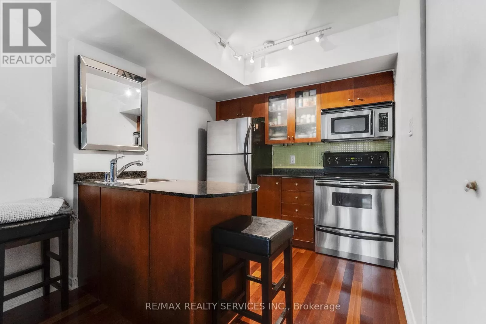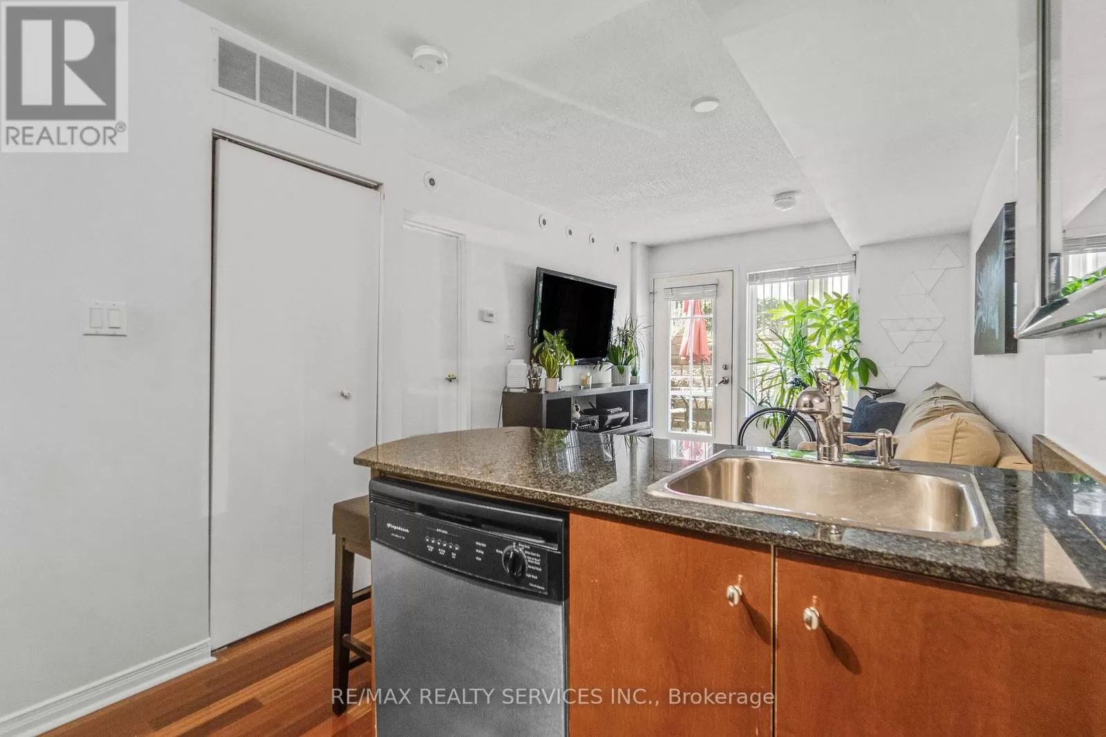 Cross Streets: Strachan Ave & East Liberty St. ** Directions: Strachan to East Liberty to Western Battery. Welcome to Liberty Village! This stylish 1 bed, 1 bath stacked townhome offers a functional open concept layout with a modern kitchen featuring a breakfast bar, stainless steel appliances, and a pantry with custom closet organizers. The bright living area opens to a large private 100 sq. ft. terrace/patio with water and natural gas hookup, perfect for BBQs and outdoor entertaining. A spacious bedroom with ample closet space and in-suite laundry add to the convenience. Enjoy your own underground parking space, locker, and spacious storage room. Fantastic location by the lake, just a 5-minute walk to the waterfront trail where you can bike, run, rollerblade, etc! Extremely convenient to grocery stores, cafes, restaurants, parks, TTC, and highway access. (id:27476)