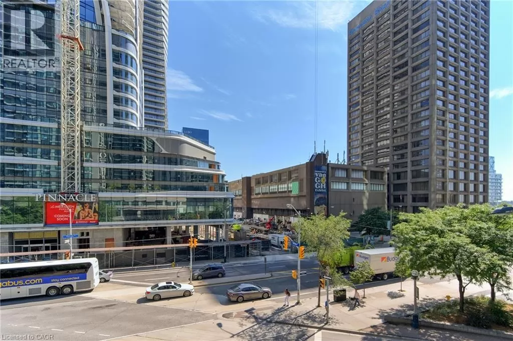 HAROUR ST/ YONGE ST Welcome to Suite 310 at One Pinnacle Centre â A Refined Urban Retreat in the Heart of Downtown Toronto. Perfectly positioned in the vibrant Financial District, this stylish one-bedroom residence places you steps from Scotiabank Arena, the historic St. Lawrence Market, world-class theatres, acclaimed restaurants, and the scenic waterfront. An exceptional opportunity for professionals or investors seeking the perfect blend of lifestyle and convenience. This thoughtfully designed 562 sq. ft. suite boasts a bright, open-concept layout, freshly painted with brand-new flooring throughout, creating a fresh and contemporary ambiance. The sleek, modern kitchen offers both functionality and elegance, seamlessly flowing into the living space and out to a generous private balcony. From here, enjoy tranquil lake views and a dynamic perspective over the cityâs pulse. Located on the third floor, the unit offers the ease of a walk-up or elevator access. The spacious four-piece bathroom and in-suite amenities make for effortless living, while the buildingâs impressive suite of features elevates your lifestyle to resort-level standards. Residents of One Pinnacle Centre enjoy access to a wealth of exceptional amenities: two fully equipped fitness centres, an indoor pool, a rooftop terrace with panoramic views, a business centre, guest suites, tennis and squash courts, sauna, ping pong and billiards rooms, and the assurance of 24-hour concierge and security services. Condo fees are all-inclusive â covering heat, hydro, water, building insurance, maintenance, and central air conditioning â offering peace of mind and value. This pet-friendly suite is currently vacant, allowing for immediate possession. Donât miss the chance to own a beautifully updated unit in one of Torontoâs most dynamic neighbourhoods. (id:27476)