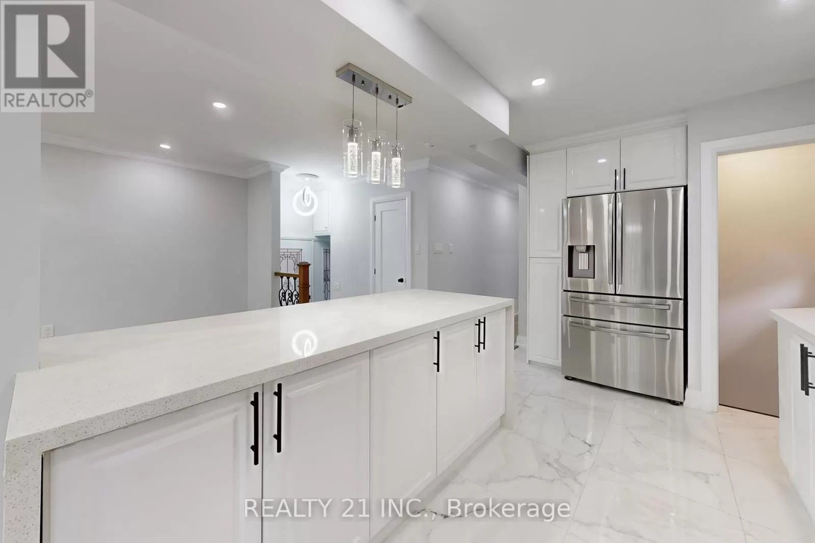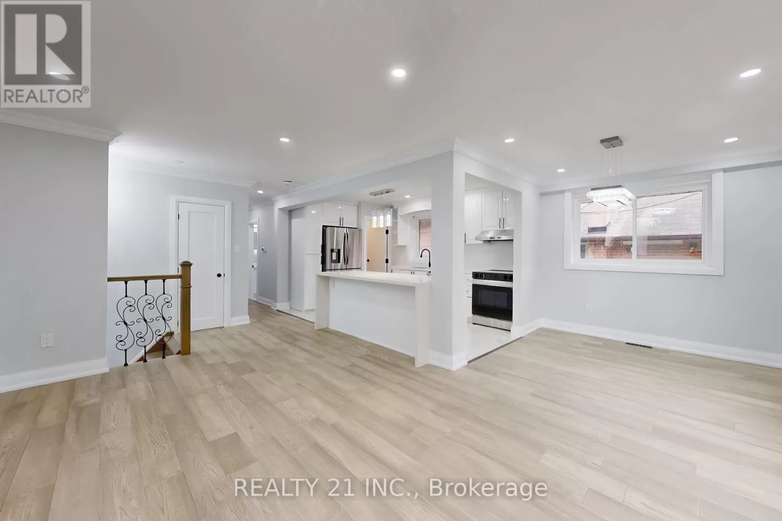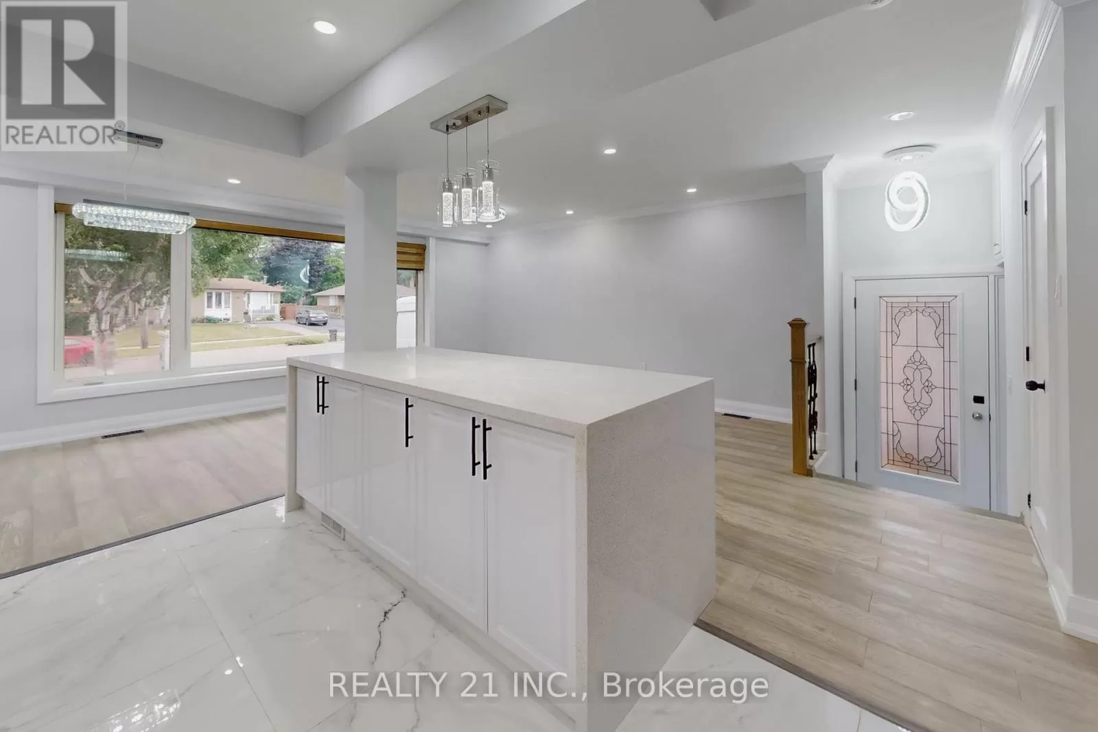Cross Streets: Lawrence Ave East/Valia Rd. ** Directions: :Lawrence Ave East/Valia Rd. *Over $200K spend to renovate top to bottom*A Rare Opportunity To Own A Luxurious Turn-Key Home With Significant Rental Income Potential! Presenting This Meticulously Renovated Bungalow Remodelled By Luxury Home Builders. Modern Elegance And Exceptional Functionality On A Large Lot With A Long 5-Car Driveway Plus A Detached Garage. The Main Floor Welcomes You With An Exquisite Front Door, Leading Into The Breathtaking Open-Concept Space. The Living Room Showcases Custom Fluted Wood Paneling And Built-In Shelving With LED Lighting, Seamlessly Flowing Into The Modern Kitchen Equipped With A Large Waterfall Island And S/S Black Frigidaire-Gallery Appliances, As Well As The Stylish Dining Area. The Main Floor Features 3 Spacious Bedrooms, A Luxurious 4-Piece Main Bathroom With Rain Shower, Floating Vanity, And Custom Fluted Paneling, Plus a Convenient 2-Piece Powder Room. Solid Wood Doors Throughout, Engineered Hardwood On Main Floor, Oak Casings and Baseboards, Vinyl Flooring In The Basement, Brand New Windows, And Ultra Modern Light Fixtures. The Basement, With Its Own Side Entrance And Walkway, Boasts 4 Additional Large Bedrooms, Possible 2 Kitchens With Brand New S/S Appliances, And 2 Washrooms, Offering A Significant Rental Income Potential Of $4,000/Mo. The Backyard Is A Great Area For Hosting Gatherings And Is Very Peaceful With Well Kept Hedges And Trees, Creating Excellent Privacy. Nestled In A Desirable Neighborhood, This Home Is Close To Schools, Parks, Shopping Centres, And Offers Easy Access To Public Transit And 401, Making It An Ideal Location For Families And Commuters. Schedule Your Viewing Today And Step Into Your Dream Home. (id:27476)
