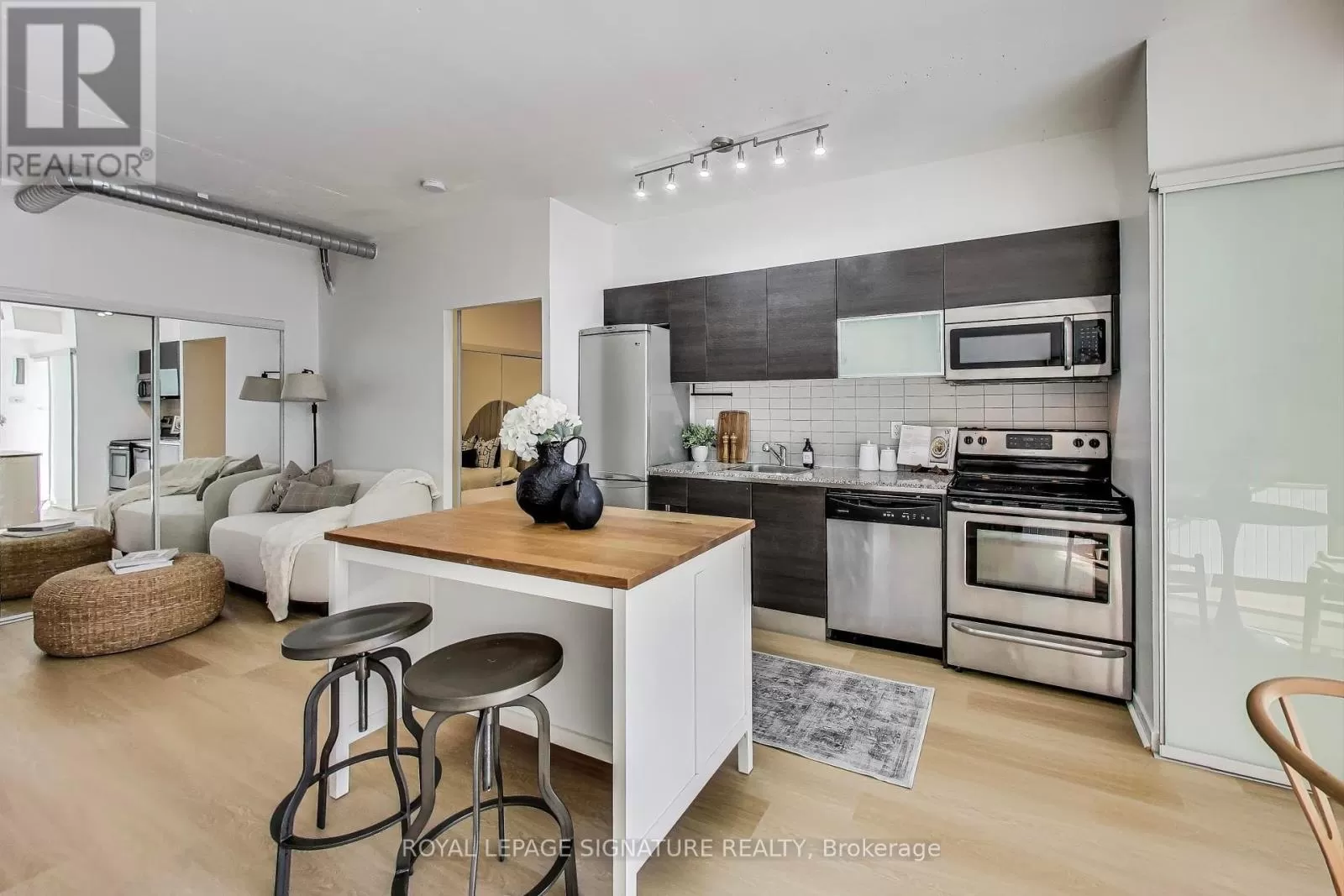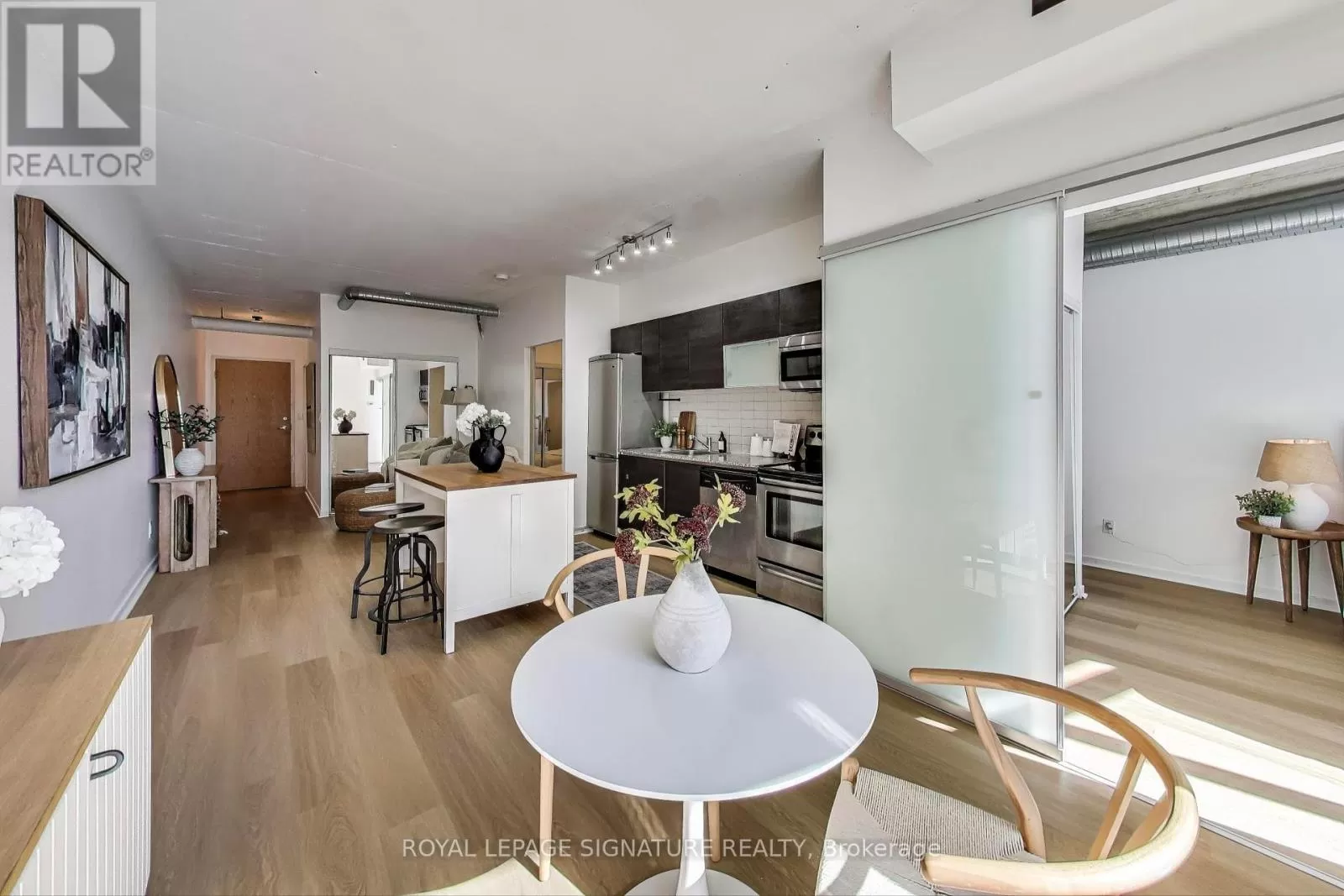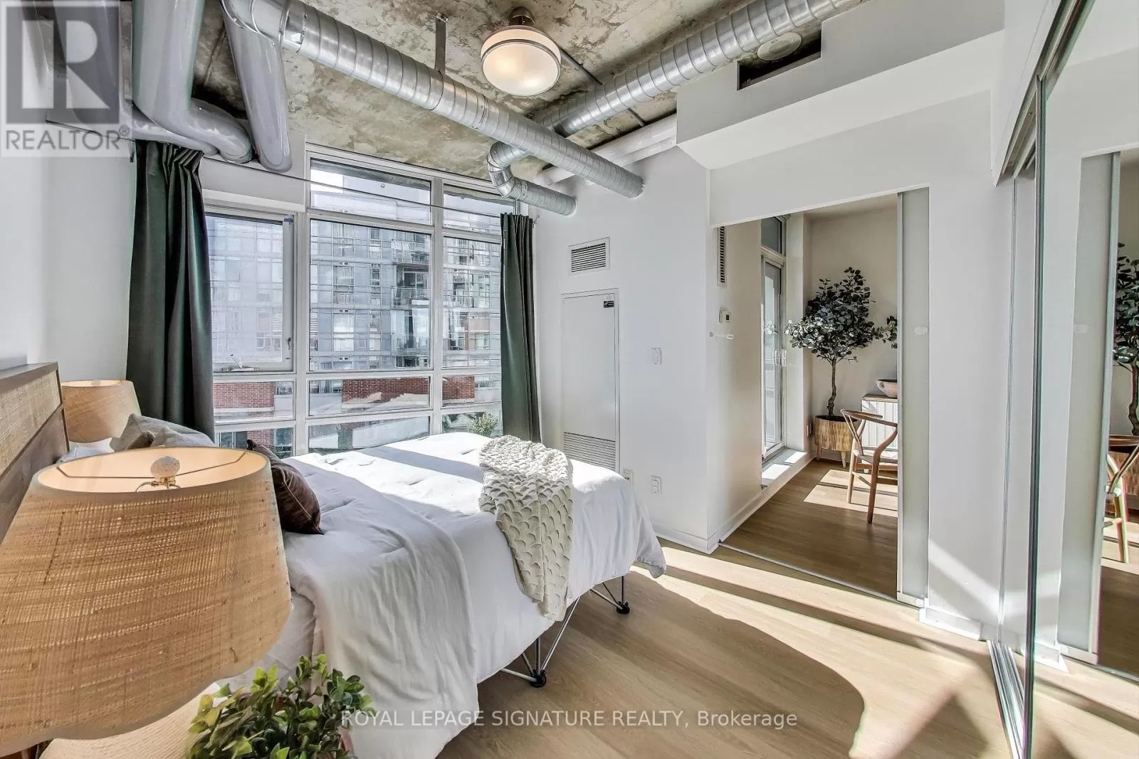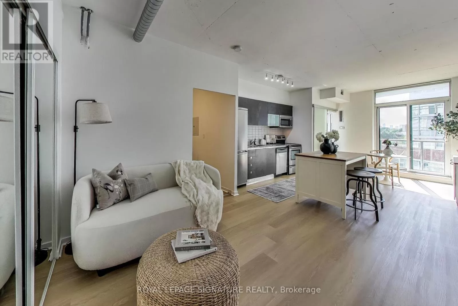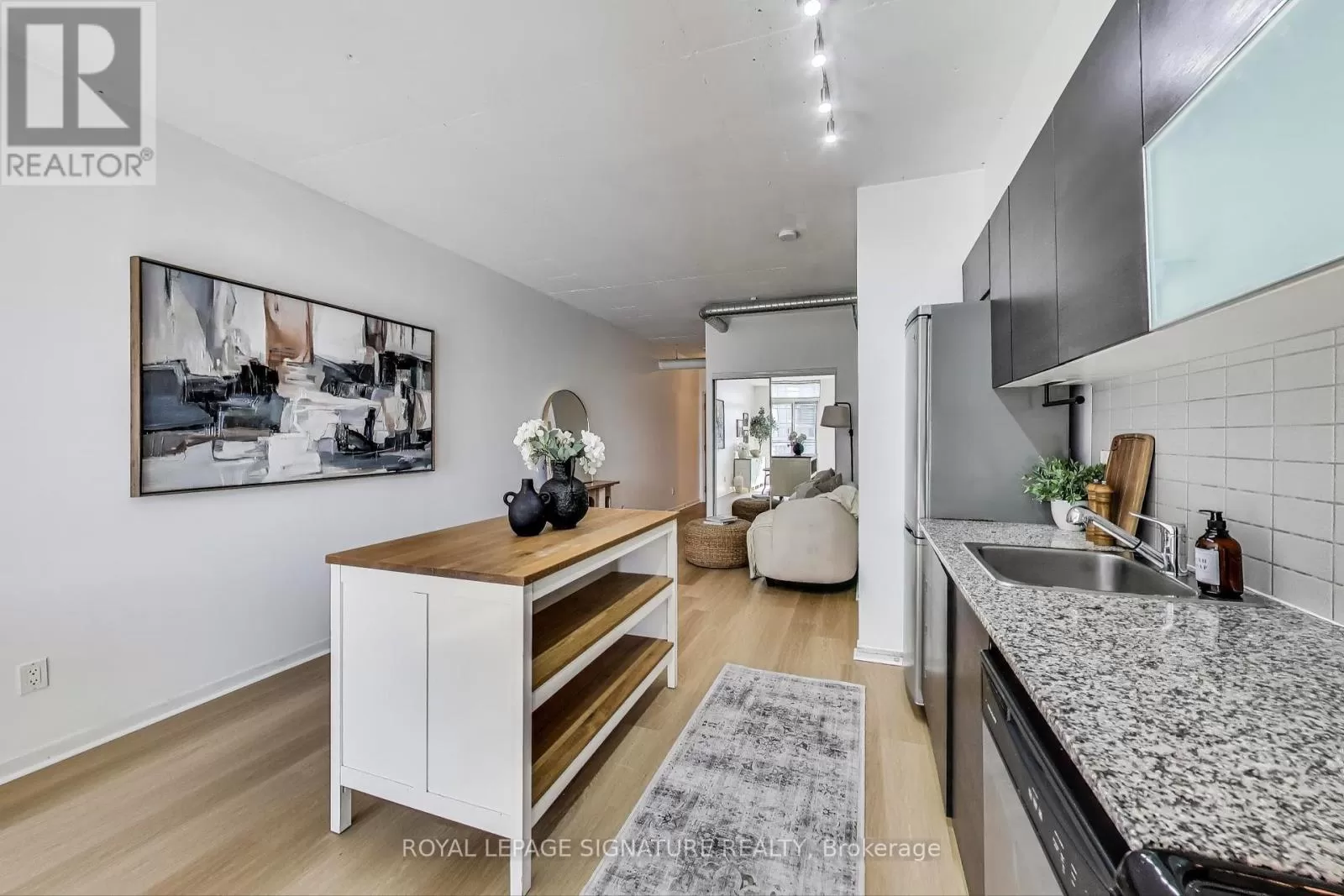 Queen And Abell Stunning Suite at Westside Lofts! Experience true loft living in this highly sought-after unit featuring floor-to-ceiling windows and brand new laminate flooring throughout. This spacious 2-bedroom, 2-bath layout offers a stylish open-concept design with exposed painted concrete throughout, creating a modern industrial vibe. The contemporary kitchen includes an island and a dining alcove perfect for entertaining. The unit includes parking and locker for added convenience. Located just steps from the iconic Drake Hotel, Trinity Bellwoods Park, grocery stores, and 24-hour streetcar service on Queen Street. Dont miss your chance to own in one of the citys most vibrant neighborhoods! (id:27476)