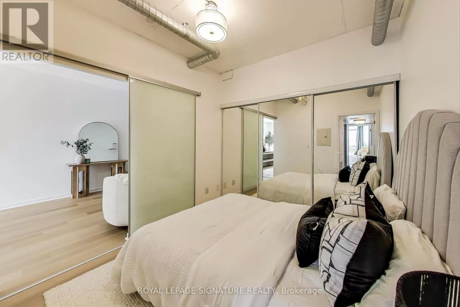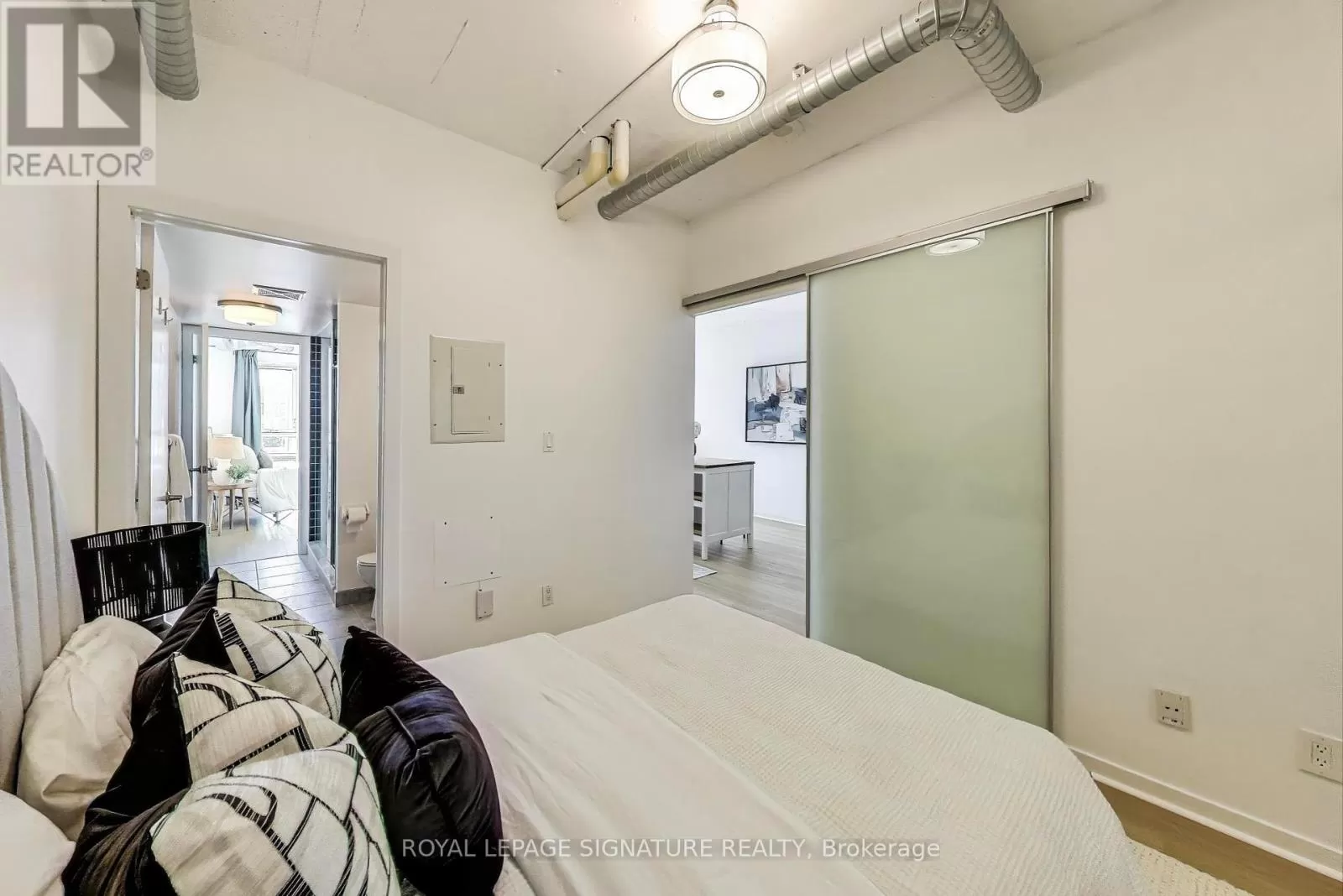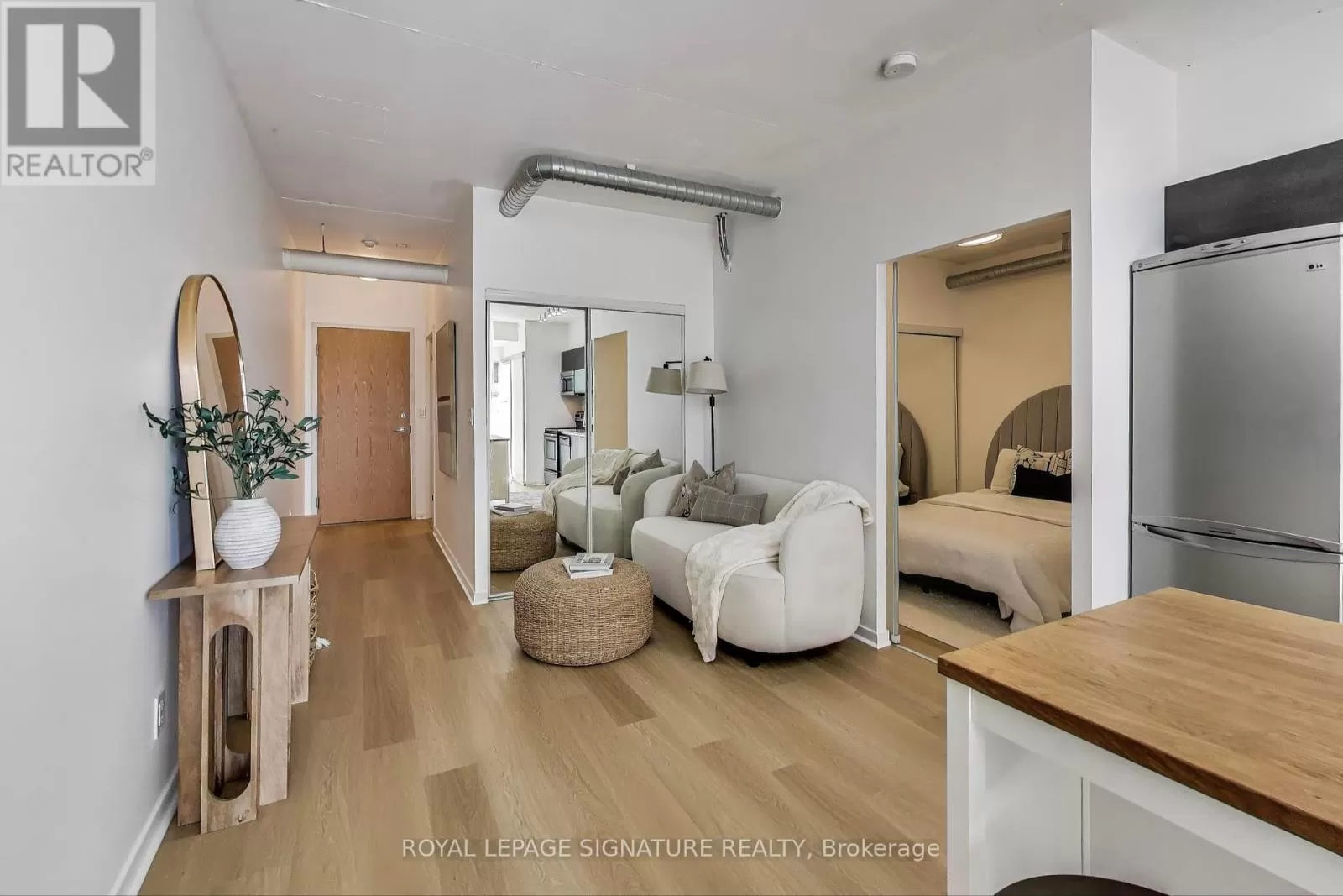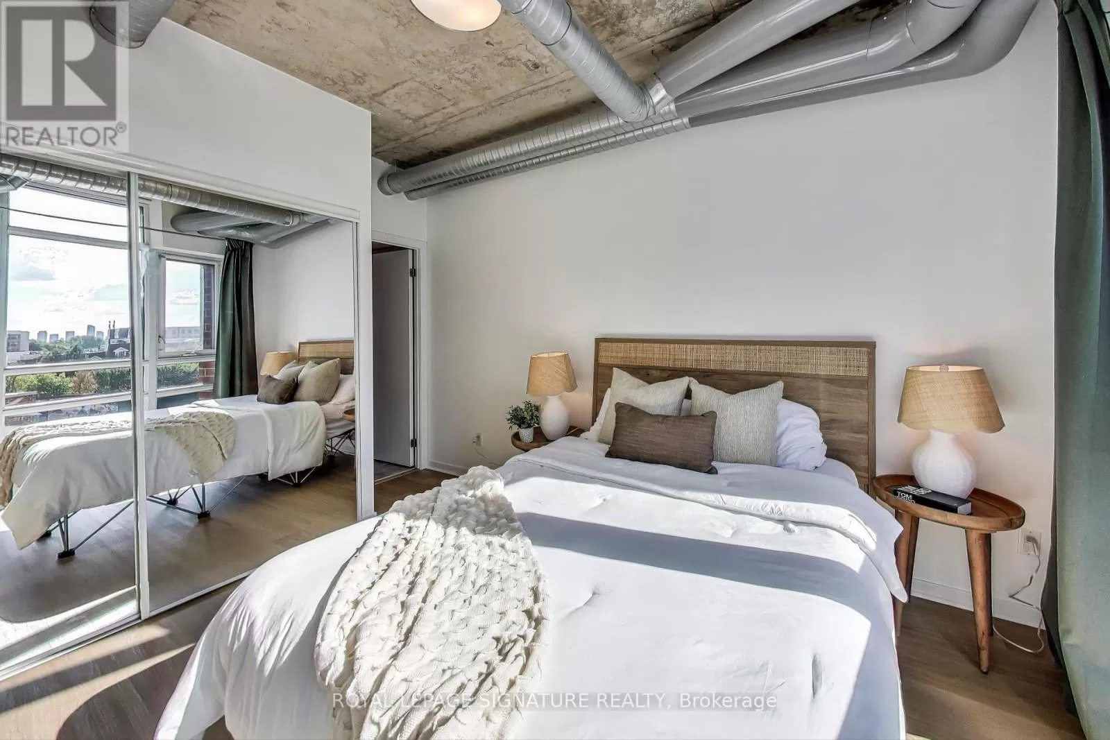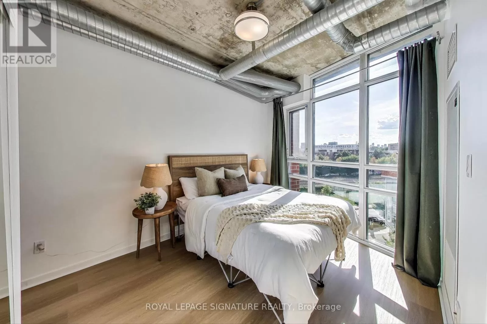 Queen And Abell Stunning Suite at Westside Lofts! Experience true loft living in this highly sought-after unit featuring floor-to-ceiling windows and brand new laminate flooring throughout. This spacious 2-bedroom, 2-bath layout offers a stylish open-concept design with exposed painted concrete throughout, creating a modern industrial vibe. The contemporary kitchen includes an island and a dining alcove perfect for entertaining. The unit includes parking and locker for added convenience. Located just steps from the iconic Drake Hotel, Trinity Bellwoods Park, grocery stores, and 24-hour streetcar service on Queen Street. Dont miss your chance to own in one of the citys most vibrant neighborhoods! (id:27476)