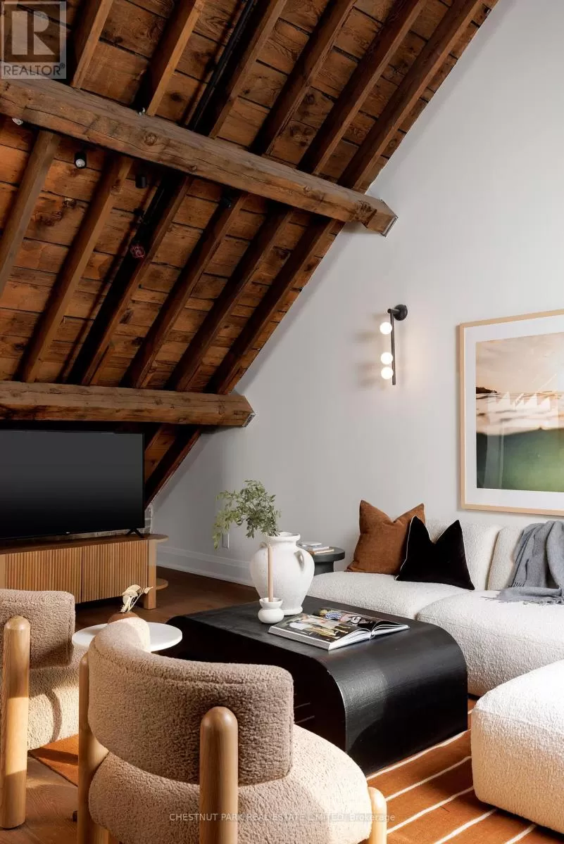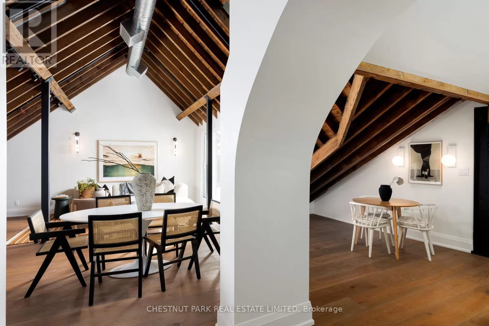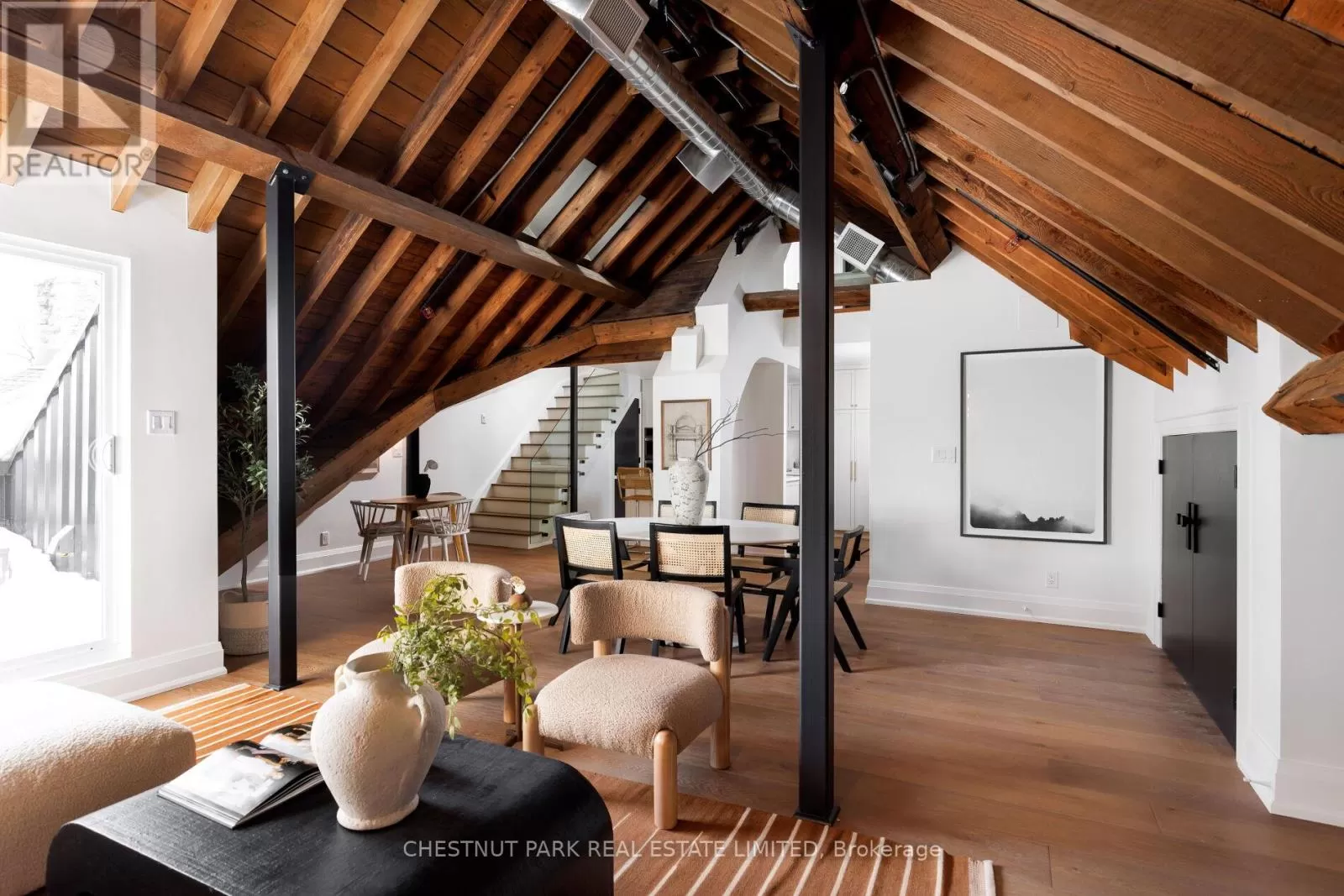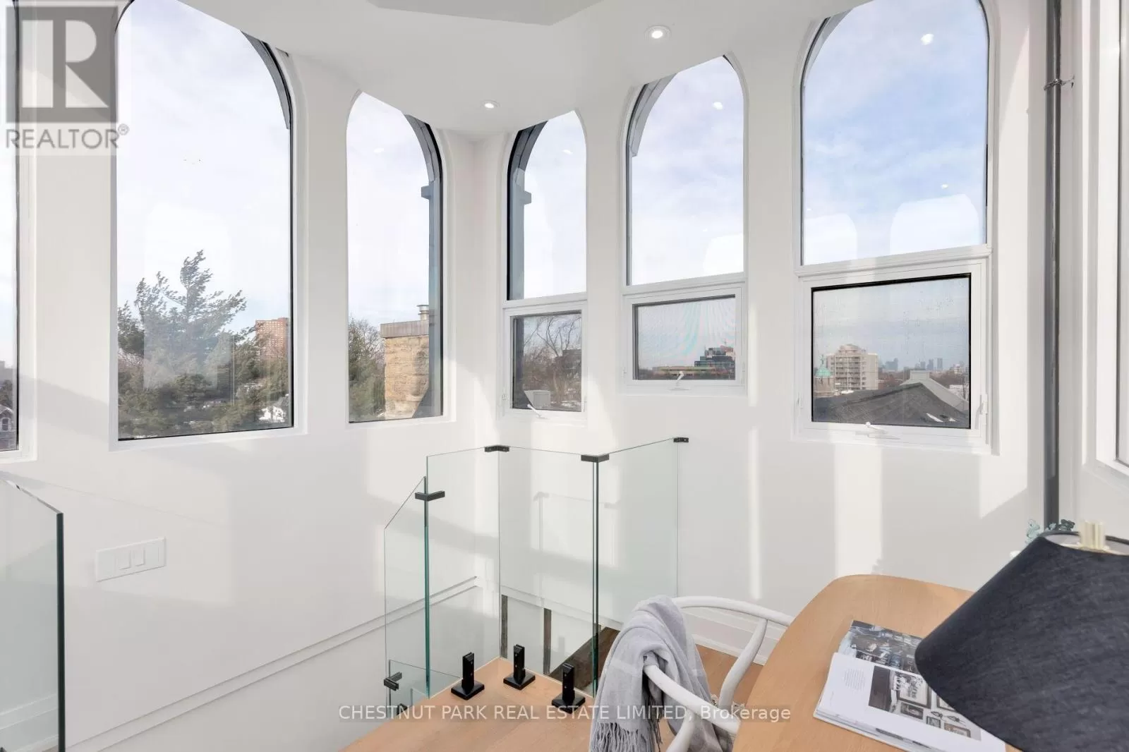 Howard Park/ Ronvessvalles The true loft you've been waiting for! Welcome to The Bell tower suite at the highly sought after Abbey Lofts. Incredible 3 years, Million Dollar Renovation as all 2250 sq ft of the unit were re-imagined with high end, modern finishes while maintaining the original character and charm. Enjoy the beautiful Douglas Fir Beams, exposed brick and stunning Cathedral wood ceilings. 2 beds, 2 baths, 2 parking spots and a fantastic office space up in the Bell tower. Incredible attention to detail. Views of the lake and downtown from the Bell Tower. Fantastic location, perfectly positioned in the heart of High Park/Roncesvalles. Steps from High Park, and all the great shops and cafes on Roncesvalles. (id:27476)