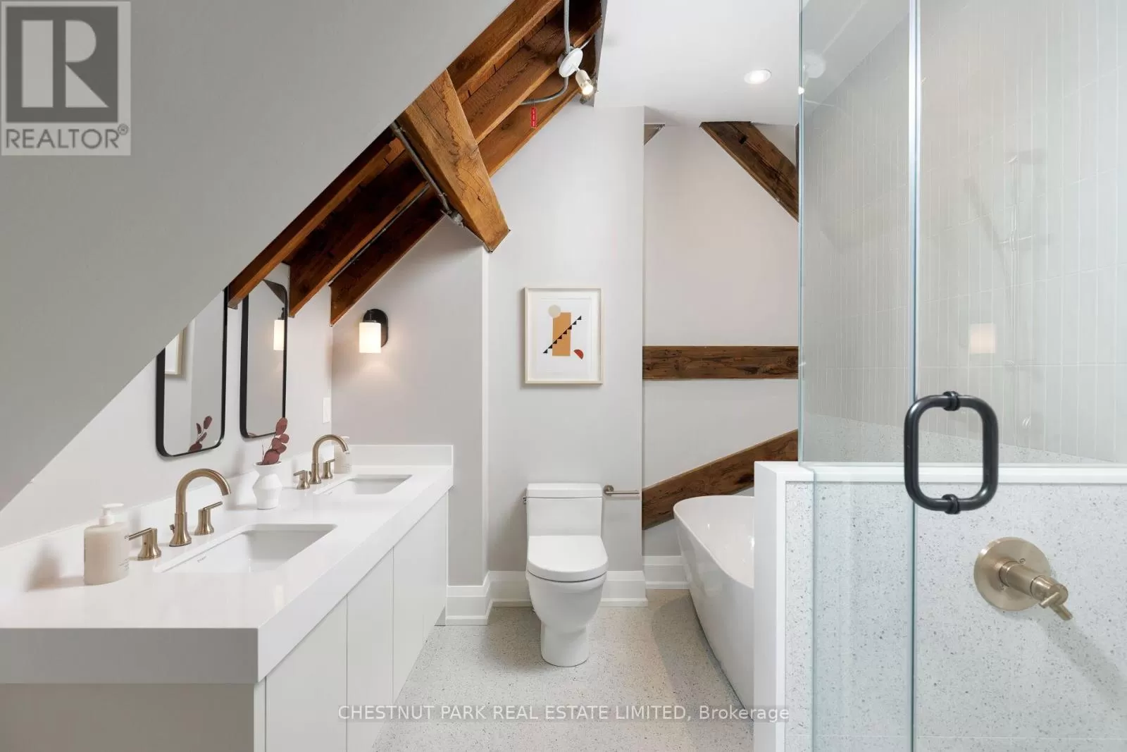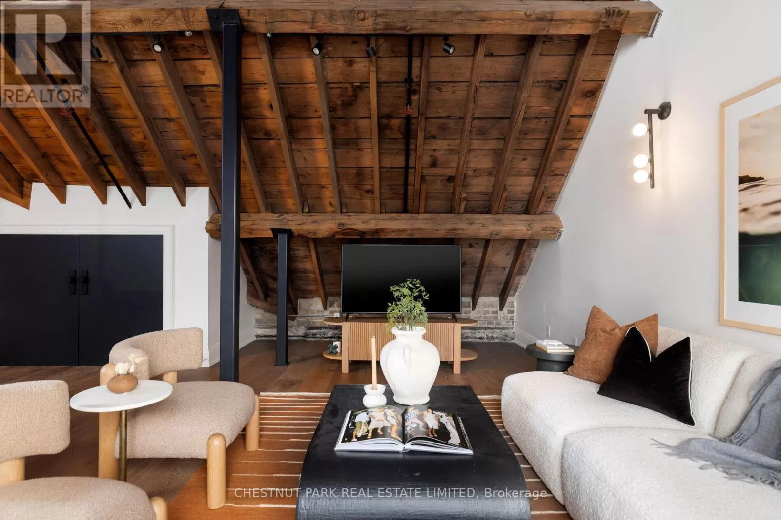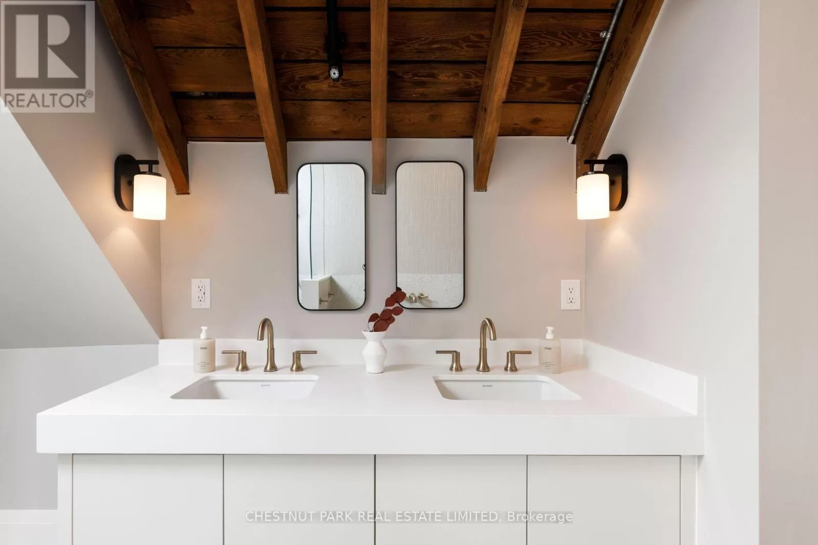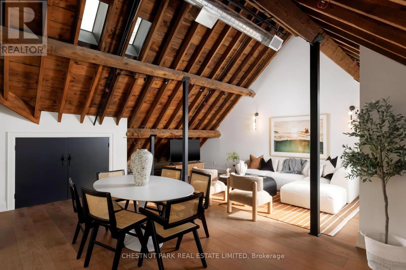 Howard Park/ Ronvessvalles The true loft you've been waiting for! Welcome to The Bell tower suite at the highly sought after Abbey Lofts. Incredible 3 years, Million Dollar Renovation as all 2250 sq ft of the unit were re-imagined with high end, modern finishes while maintaining the original character and charm. Enjoy the beautiful Douglas Fir Beams, exposed brick and stunning Cathedral wood ceilings. 2 beds, 2 baths, 2 parking spots and a fantastic office space up in the Bell tower. Incredible attention to detail. Views of the lake and downtown from the Bell Tower. Fantastic location, perfectly positioned in the heart of High Park/Roncesvalles. Steps from High Park, and all the great shops and cafes on Roncesvalles. (id:27476)