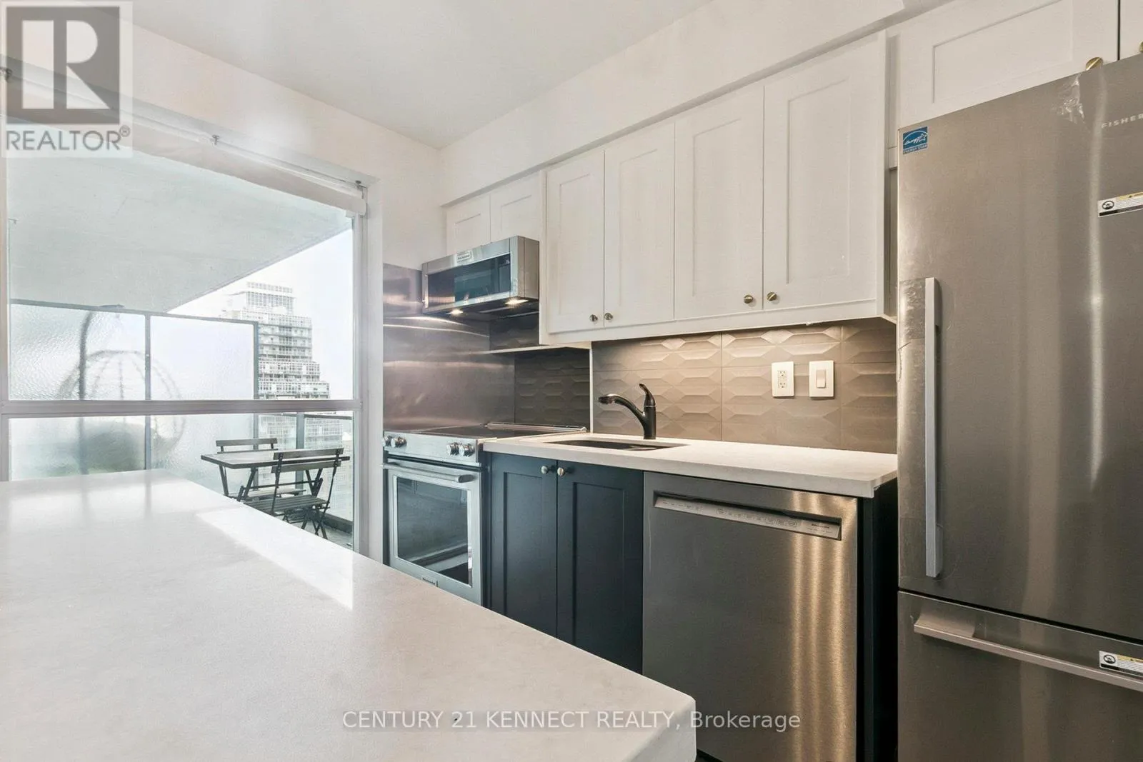 East Liberty St & Strachan Ave Experience modern living in this fully renovated 1-bedroom suite with spectacular amenities in the heart of Liberty Village! Designed for ultimate urban comfort, this well appointed unit offers a spacious open-concept layout, featuring a stylish two-tone kitchen with high-end appliances, quartz countertops, and a large island with ample storage and breakfast bar. Finished with timeless light oak floors throughout, and a walkout balcony that offers bright southwest views. Enjoy exceptional building amenities including an indoor pool with jacuzzi, a fully equipped fitness centre, games room, theatre and much more. This residence provides unmatched convenience just steps from transit, a 24-hour Metro, boutique shops, trendy restaurants, parks, and steps from pedestrian bridge for easy access to King West. Live in a vibrant neighbourhood full of energy, community, and nightlife right at your doorstep. (id:27476)