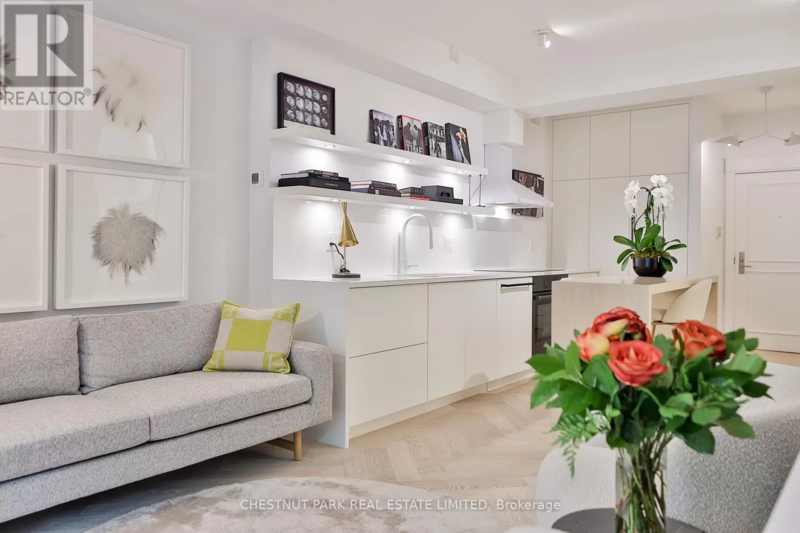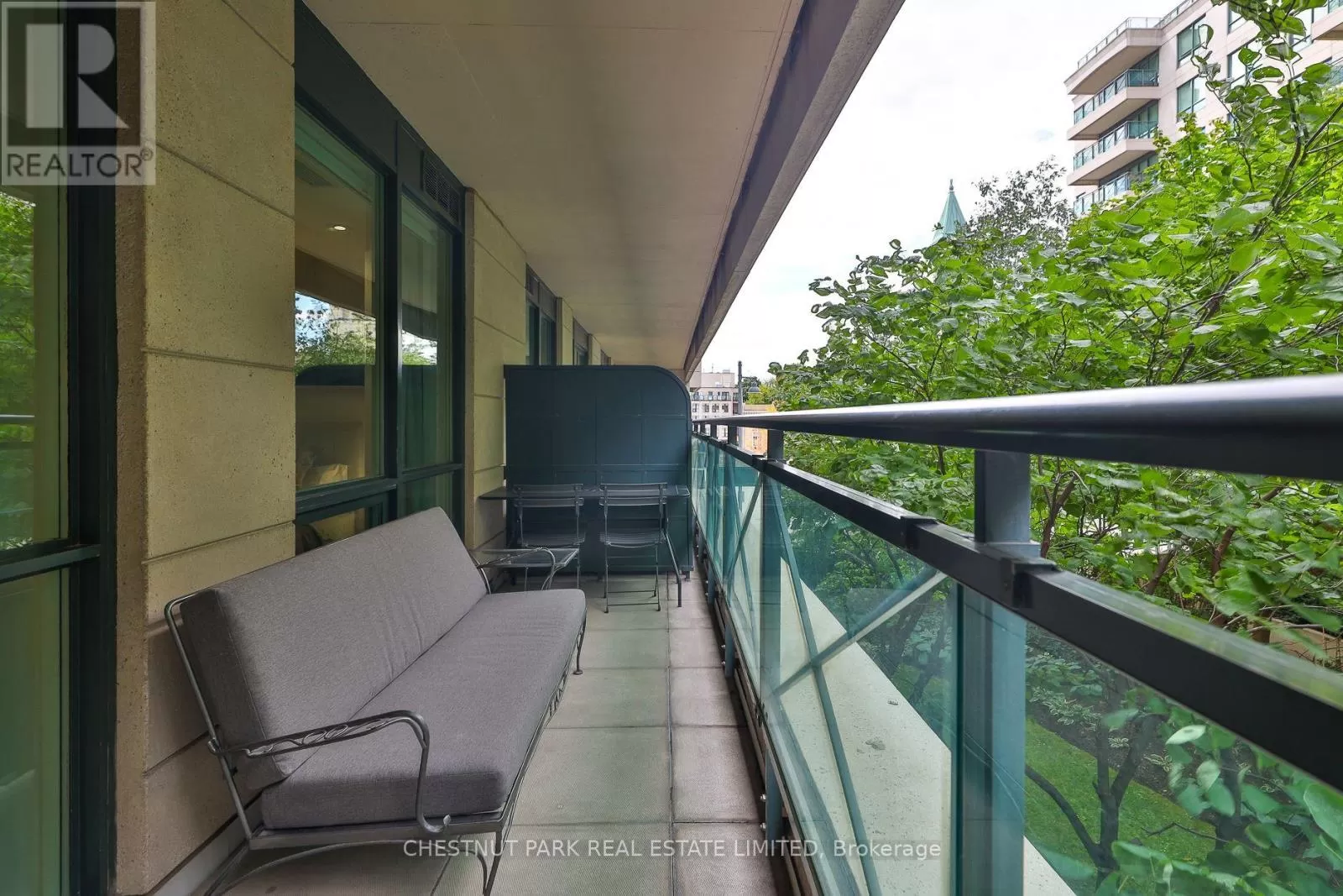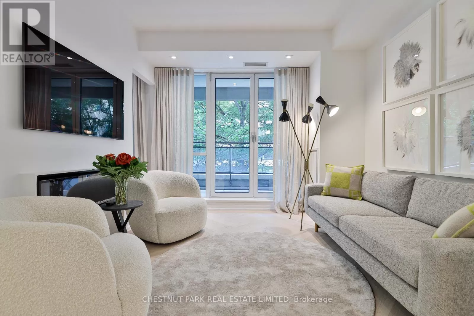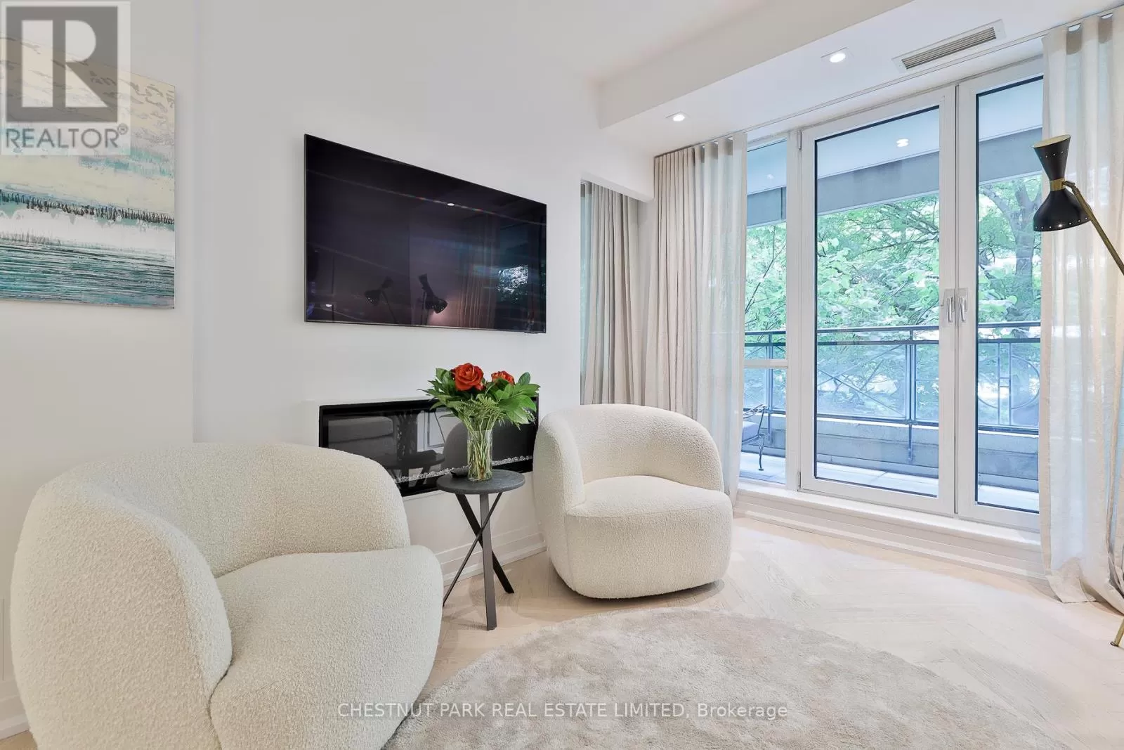 Cross Streets: Scrivener Sq/Yonge St. ** Directions: Yonge/Scrivener Sq. Welcome to luxurious living at Rosedale's prestigious Thornwood. Step into this Stunning one bedroom light-filled apartment with high-end finishes throughout. Enjoy a bright, open layout with chevron white oak floors and floor-to-ceiling windows. Step out onto your private terrace where you can enjoy serene courtyard views. Kitchen has custom high-end cabinetry & Bosch appliances. Relax at the kitchen island or by the cozy fire. Conveniently located just steps from the LCBO, Gourmet Food Shops, and restaurants. One car parking and a large locker with custom California closets built-ins. Thornwood's luxurious amenities include a 24-hour concierge, valet parking, a state-of-the-art fitness room, a spacious party room with a large terrace, guest suites, and visitor parking. Easy access to Summerhill and Rosedale subway stations, parks, Don Valley trails, and Bloor/Yorkville. This location offers unbeatable walkability and lifestyle. Sophisticated city living at its finest! (id:27476)