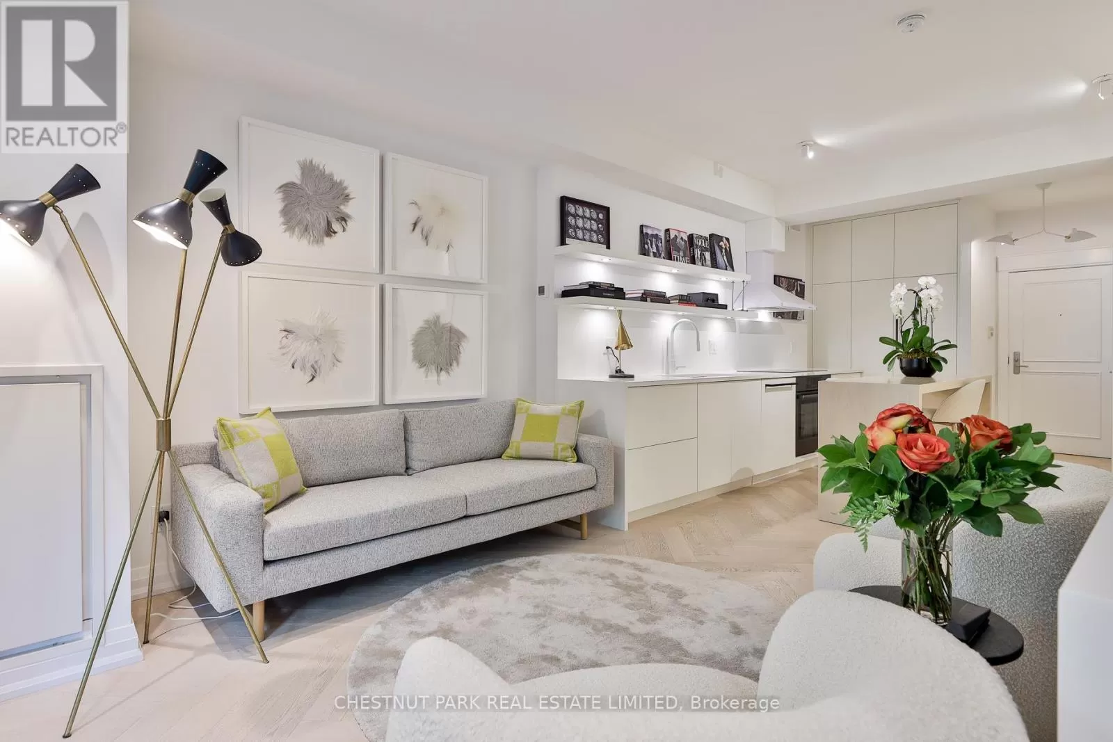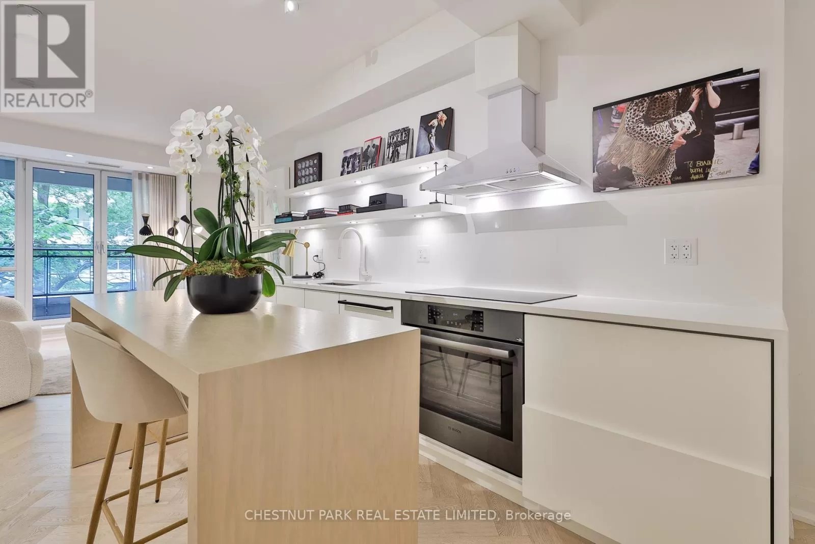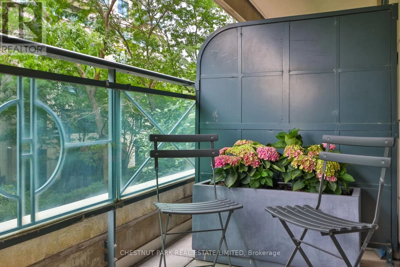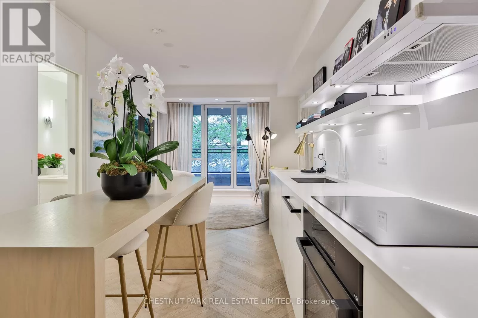 Cross Streets: Scrivener Sq/Yonge St. ** Directions: Yonge/Scrivener Sq. Welcome to luxurious living at Rosedale's prestigious Thornwood. Step into this Stunning one bedroom light-filled apartment with high-end finishes throughout. Enjoy a bright, open layout with chevron white oak floors and floor-to-ceiling windows. Step out onto your private terrace where you can enjoy serene courtyard views. Kitchen has custom high-end cabinetry & Bosch appliances. Relax at the kitchen island or by the cozy fire. Conveniently located just steps from the LCBO, Gourmet Food Shops, and restaurants. One car parking and a large locker with custom California closets built-ins. Thornwood's luxurious amenities include a 24-hour concierge, valet parking, a state-of-the-art fitness room, a spacious party room with a large terrace, guest suites, and visitor parking. Easy access to Summerhill and Rosedale subway stations, parks, Don Valley trails, and Bloor/Yorkville. This location offers unbeatable walkability and lifestyle. Sophisticated city living at its finest! (id:27476)