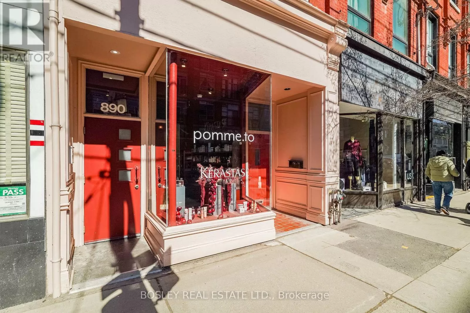 Cross Streets: Queen & Shaw. ** Directions: Queen and Shaw. A rare opportunity to own a fully leased, mixed-use asset in the heart of Queen West, backing directly onto Trinity Bellwoods Park. 890 Queen Street West is a marquee property consisting of two interconnected buildings with four stabilized tenancies, offering long-term income security in one of Toronto's most desirable neighbourhoods. The front building, a classic Toronto brownstone with a stunning facade, houses two commercial tenants. The ground floor is leased to Pomme T.O, a L'Oreal and Kerastase-sponsored salon and retail boutique. Above, the second and third floors are occupied by Nice Place, an established hair salon. The rear building, accessed via Trinity Park Lane, is a modern, steel-constructed, three-story structure built in 2019. It features two additional tenancies: the ground floor is leased to "Mirror Mirror," another well-established business, while the top two floors contain a breathtaking two-bedroom, two-bathroom Scandinavian-inspired residence. This luxury unit boasts a private rooftop terrace with panoramic city views, including the CN Tower and Trinity Bellwoods Park. With both buildings connected on the first and second floors, this asset provides future leasing flexibility and value-add potential. Surrounded by premium retailers like Le Labo, Fable, Aesop, Mother, Oyster Boy, and Gaspard, this property stands at the epicentre of Queen Wests vibrant retail and cultural scene. A rare, 100% stabilized investment opportunity in an unbeatable location secure a premier asset with long-term upside in one of Toronto's most dynamic corridors. (id:27476)
