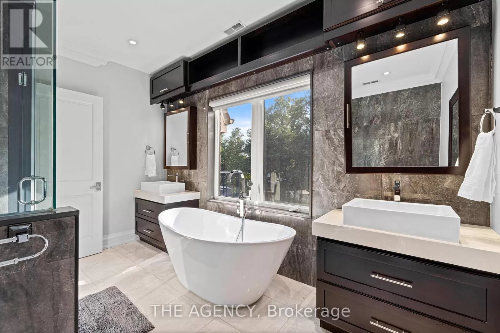 Kipling & S. of Rathburn The Toronto Dream! Step into a realm of elegance with this exquisite masterpiece, sprawling across approximately 6,300 sq ft of luxurious total living space. Designed with modern sophistication in mind, this residence boasts soaring ceilings throughout, creating an airy, open atmosphere that invites exploration at every turn. Every inch of the property has been professionally landscaped, with a brand-new heated driveway leading to the pristine home. Outside, you'll be captivated by the magnificent new saltwater pool and cabana, complete with lush new turf that transforms the backyard into your own private oasis. A striking black architectural overhang extends your outdoor living space with style and function. Inside, the gourmet chef-inspired kitchen is outfitted with top-of-the-line built-in appliances and a convenient servery, perfect for both everyday cooking and entertaining guests. Retreat to one of the four spacious upstairs bedrooms, each featuring its own walk-in closet and private ensuite bath, offering ultimate privacy and comfort. The dedicated nanny suite on the lower level provides flexibility and convenience for larger families. Indulge in the serenity of the sauna room, your personal sanctuary for unwinding after a long day. With every detail thoughtfully curated, this home offers a rare blend of luxury, comfort, and modern elegance. (id:27476)