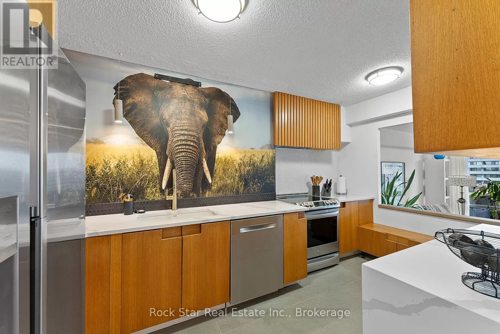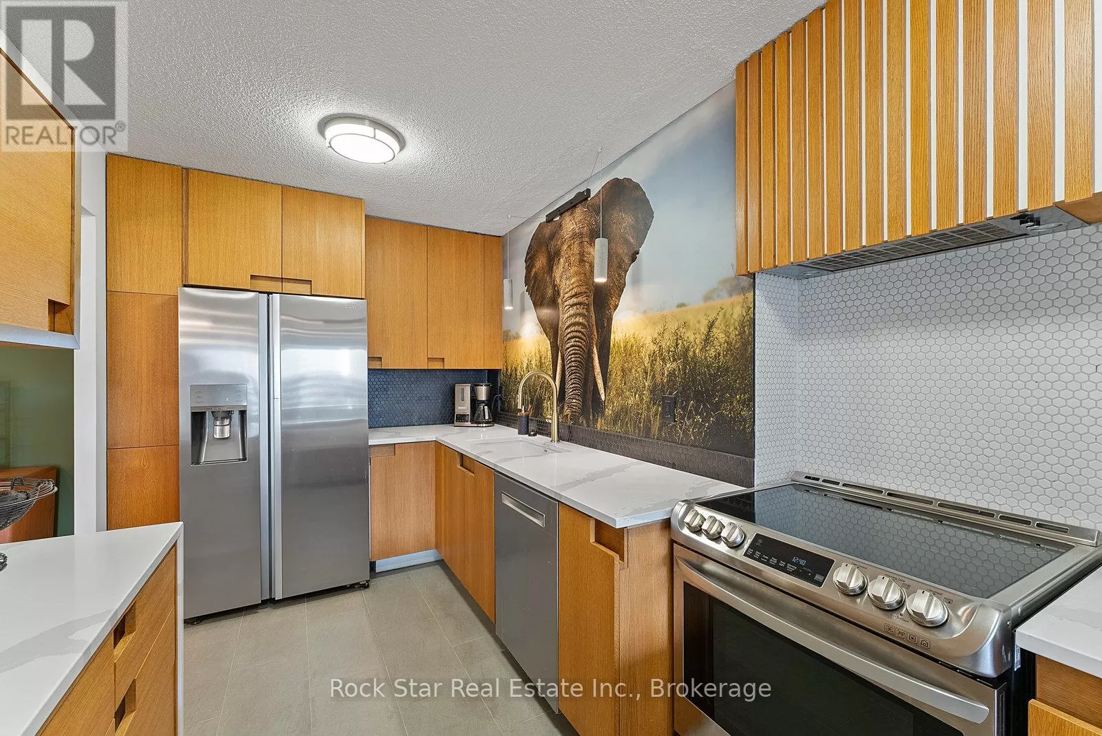 Cross Streets: Eglinton Ave. W. ** Directions: South of Eglinton Ave. W. at East Dr. Welcome to Lambton Square Resort-Style Living in the Heart of Toronto! This premium 2-bedroom, 2-bath split-level condo (over 1,000 sq. ft.) has been fully renovated with a chic mid-century vibe and countless upgrades. The designer white oak kitchen is a cooks paradise, while ensuite laundry and underground parking with bike storage and locker add everyday convenience. The spacious primary suite boasts its own temperature control for year-round comfort. Step outside to a beautiful 73 x 182 balcony, perfect for outdoor living and entertaining. Enjoy worry-free ownership with all-inclusive fees covering heat, A/C, hydro, water, Rogers Xfinity TV and Internet. Lambton Square is pet-friendly and offers resort-style amenities including a building-dedicated outdoor pool, gym, sauna, party room, and more. (id:27476)