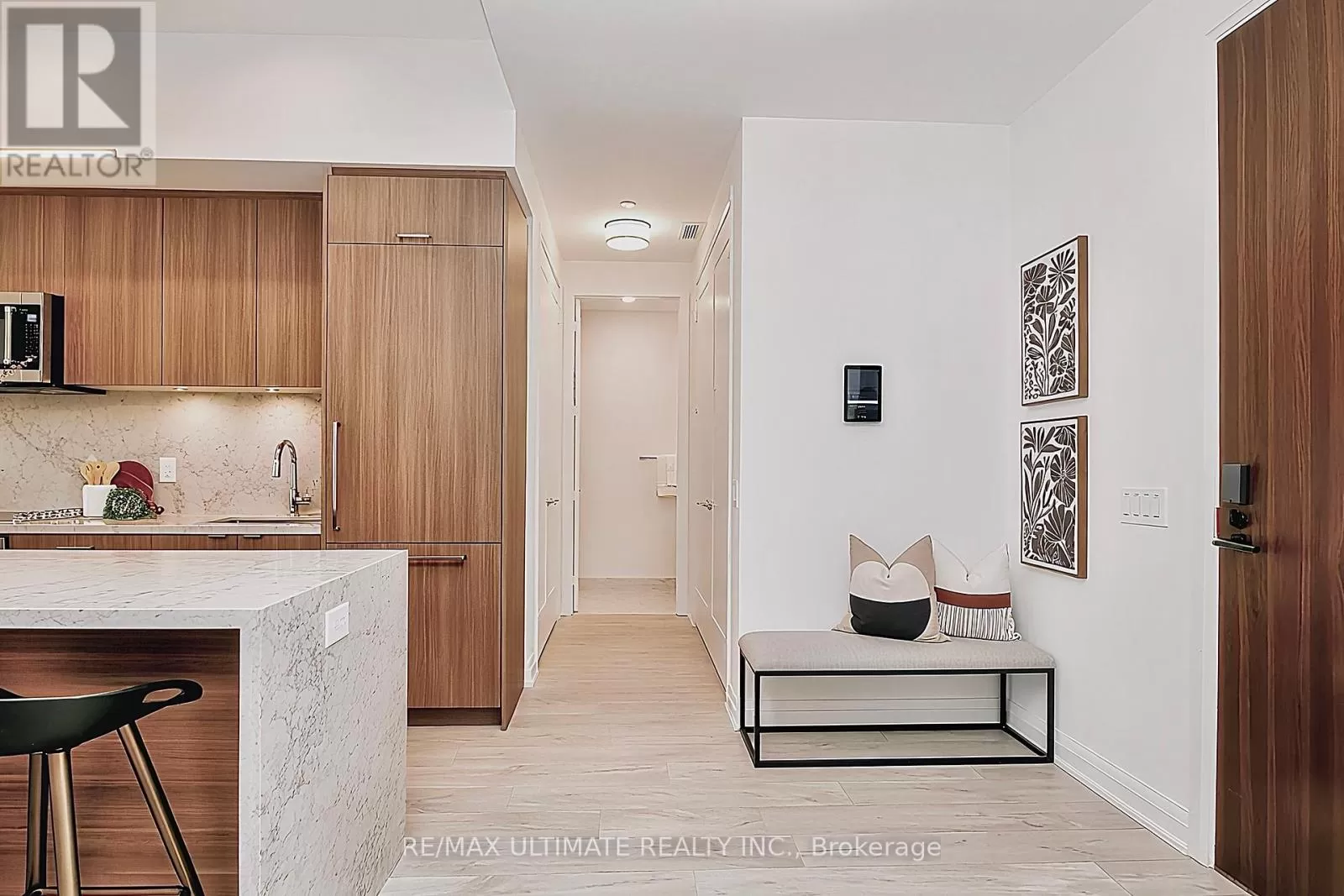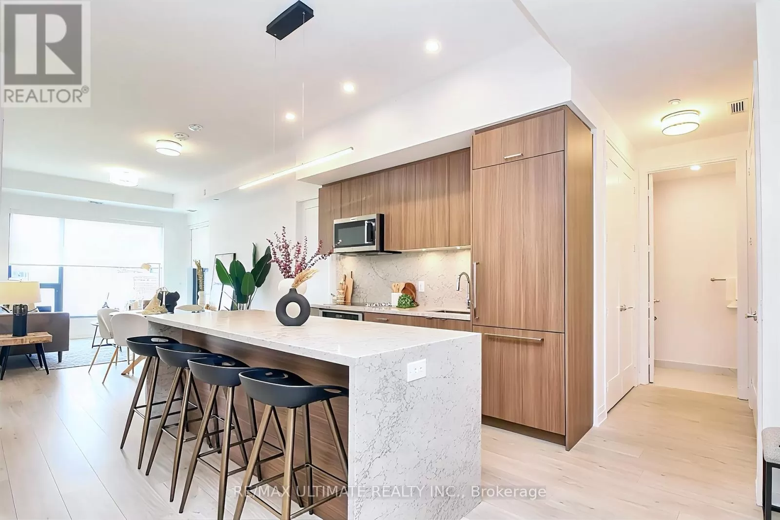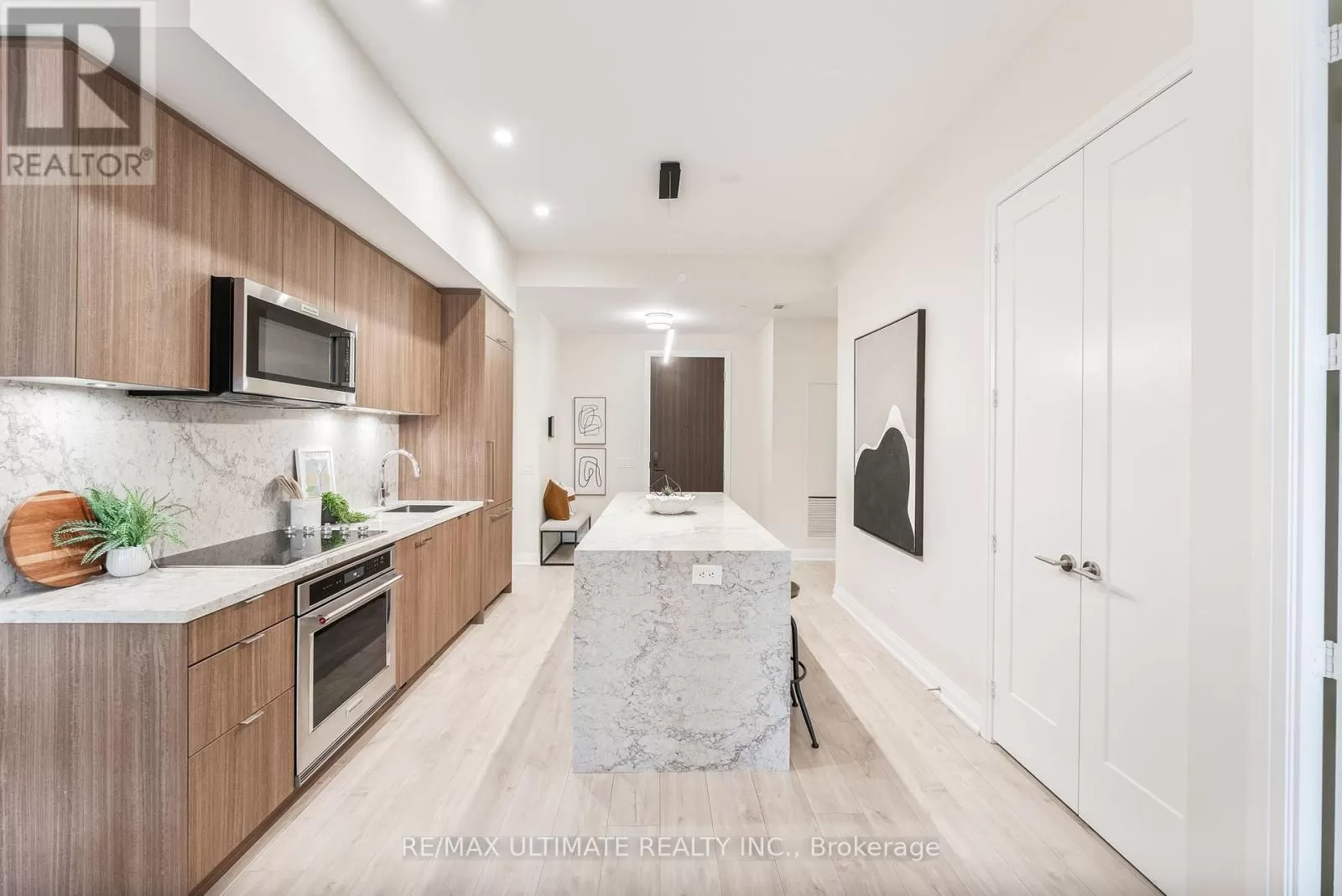 Dupont & Bathurst This showstopper is best experienced in person! Spanning 1,147 sq. ft., this 2-bedroom, 2.5-bath gem features soaring 10 ft. ceilings, two west-facing balconies that fills every space with natural light and a l-shaped layout designed for both style and practicality. The chefs kitchen features an 8-foot island, integrated high-end appliances, and ample cabinetry and a pantry making it both functional and stylish. The split bedroom layout provides privacy for each bedroom, both with a walk-in closet and an upgraded ensuite. The perfectly positioned den creates an grand welcoming and provides the perfect private space for a home office. Enjoy the added convenience of an large laundry room with utility sink and storage, a 4x10x10 private storage room, and a prime underground parking located close to the elevator without neighbouring spaces. The Bianca built with quality in 2021 by Tridel is the epitome of elegance and functionality in the heart of The Annex. It's Art-Deco style architecture and interior design flows through the building sparkling with marble and brass and with a lobby so grand you'll think you're visiting a luxury hotel. With luxurious amenities you'll actually use, as the owner you'll benefit from the exclusive use of a rooftop terrace with an infinity pool, state-of-the-art gym, yoga studio, guest suites and more. Pictures don't do this unit and building justice! Book your appointment today and experience luxury living at it's nest! (id:27476)