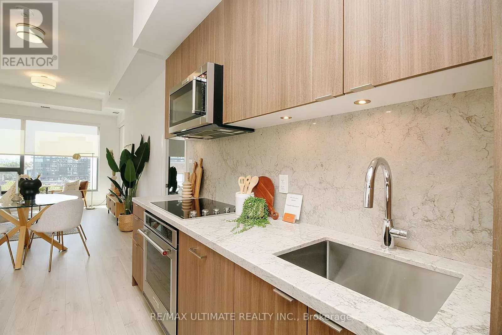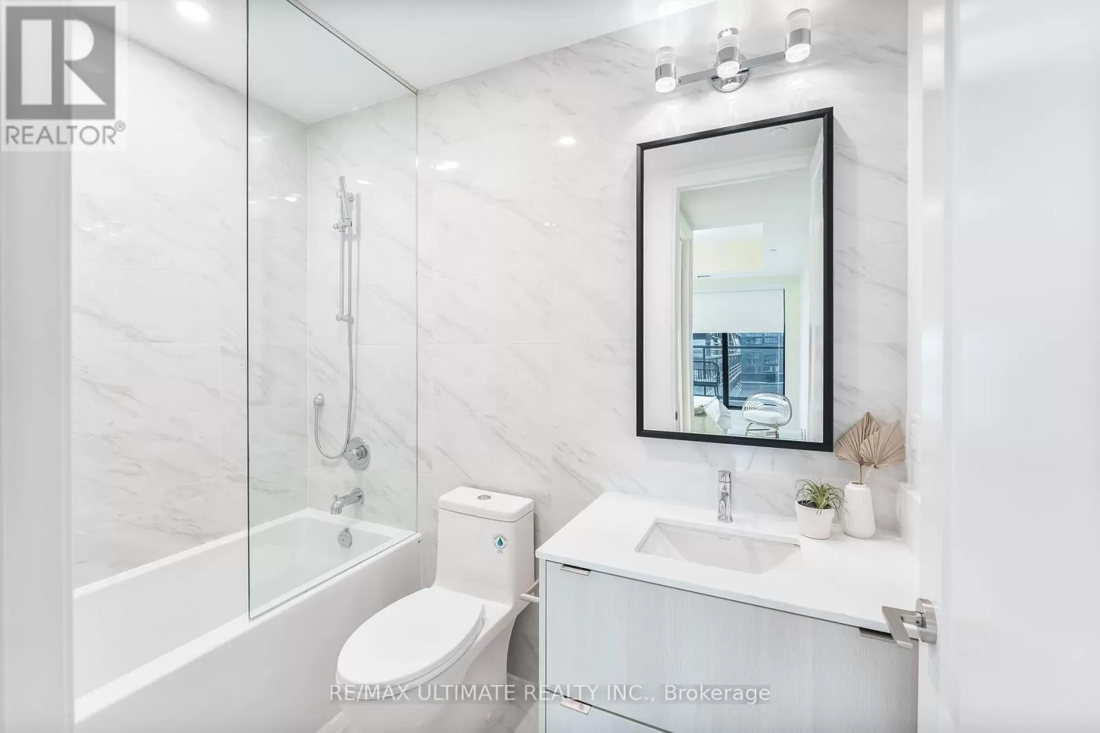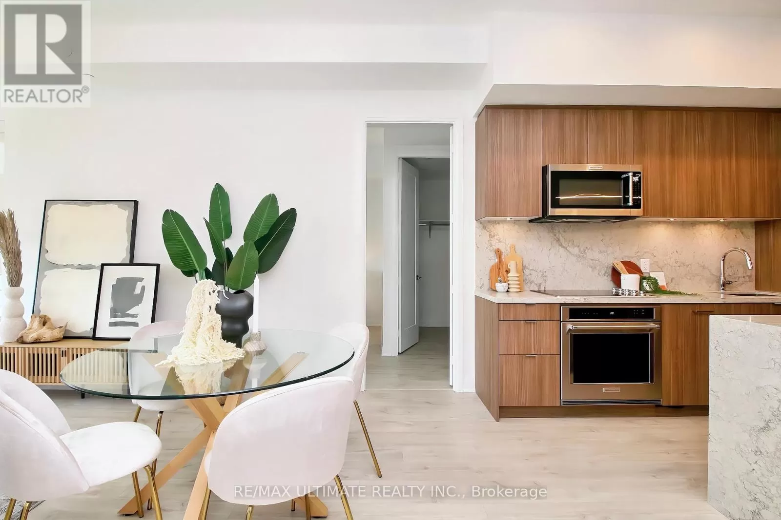 Dupont & Bathurst This showstopper is best experienced in person! Spanning 1,147 sq. ft., this 2-bedroom, 2.5-bath gem features soaring 10 ft. ceilings, two west-facing balconies that fills every space with natural light and a l-shaped layout designed for both style and practicality. The chefs kitchen features an 8-foot island, integrated high-end appliances, and ample cabinetry and a pantry making it both functional and stylish. The split bedroom layout provides privacy for each bedroom, both with a walk-in closet and an upgraded ensuite. The perfectly positioned den creates an grand welcoming and provides the perfect private space for a home office. Enjoy the added convenience of an large laundry room with utility sink and storage, a 4x10x10 private storage room, and a prime underground parking located close to the elevator without neighbouring spaces. The Bianca built with quality in 2021 by Tridel is the epitome of elegance and functionality in the heart of The Annex. It's Art-Deco style architecture and interior design flows through the building sparkling with marble and brass and with a lobby so grand you'll think you're visiting a luxury hotel. With luxurious amenities you'll actually use, as the owner you'll benefit from the exclusive use of a rooftop terrace with an infinity pool, state-of-the-art gym, yoga studio, guest suites and more. Pictures don't do this unit and building justice! Book your appointment today and experience luxury living at it's nest! (id:27476)