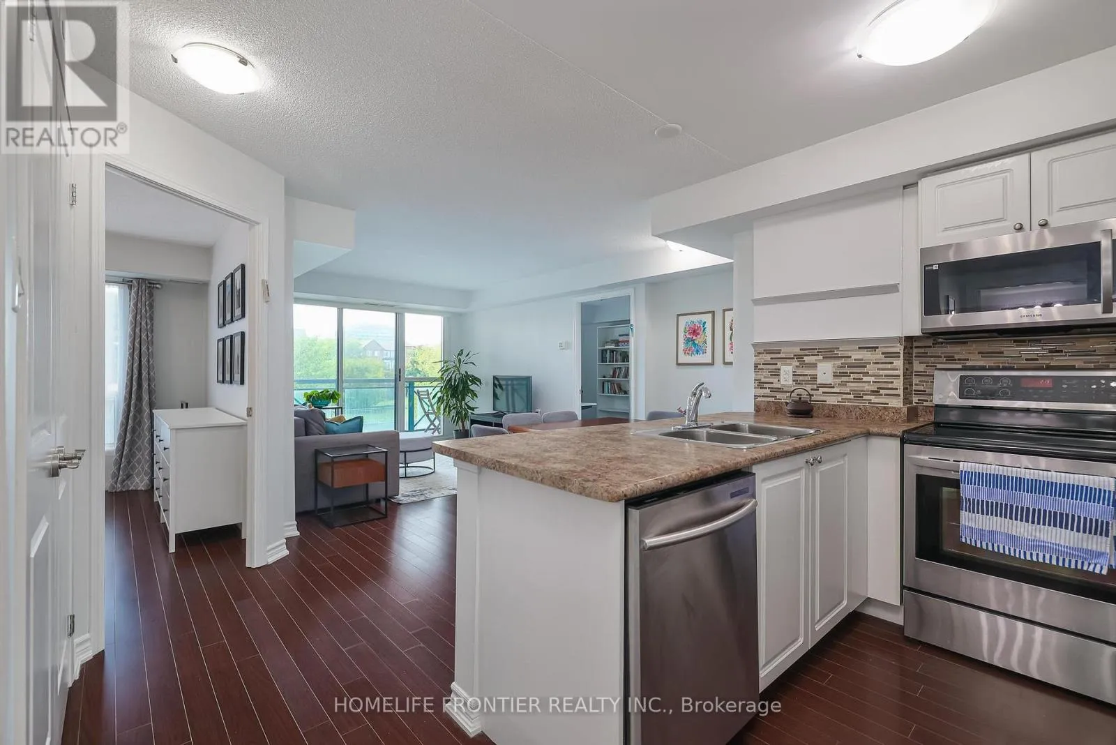 Cross Streets: Sheppard & Wilson Heights. ** Directions: west. Welcome to #201- 920 Sheppard Avenue West, located in the prestigious Hampton Plaza. This bright and spacious open concept 2-bedroom, 1 bathroom, large balcony, 1 parking,1 locker, offers 780 square feet of interior living space! S/S kitchen appliances, extra large open concept kitchen with backsplash. Enjoy laminate flooring throughout! Complemented by a large balcony with unobstructed west views. Located in a boutique, very well maintained building that's within a 5 minute walk to Sheppard West Subway Station, has easy access to Highway 401 and Yorkdale Shopping Centre! Very low maintenance fees! Hampton Plaza at 920 Sheppard Avenue West is a mid-rise condominium building in Toronto's Bathurst Manor neighbourhood, offering a community-focused living experience. Residents enjoy amenities such as a gym, rooftop terrace, party room, and secure underground parking. Its family-friendly atmosphere is popular with young families and retirees, making it an attractive area for families with children! (id:27476)