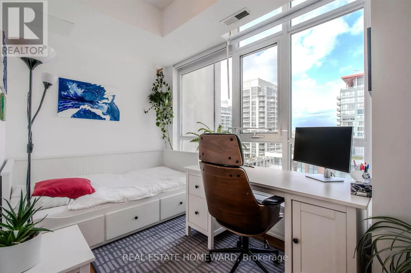 Cross Streets: Bathurst and Lakeshore Blvd. ** Directions: Off of Fleet St. Welcome to 21 Grand Magazine, the most sought after building in Fort York! This spacious 2 + 1 bedroom, 2 bathroom condo for sale offers over 1,000 sq ft of modern living space, the condo features beautiful hardwood flooring throughout, providing a warm and stylish ambiance. An enclosed den provides versatility and is large enough to comfortably serve as a third bedroom or a dedicated home office. It boasts clear views and is surrounded by green spaces, including Coronation Park, Trillium Park, and Canoe Landing, offering tranquil living while still being close to everything downtown has to offer. (id:27476)