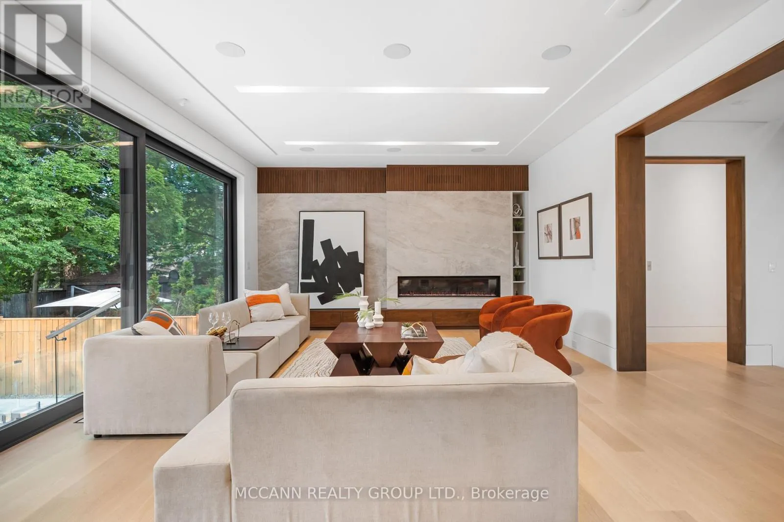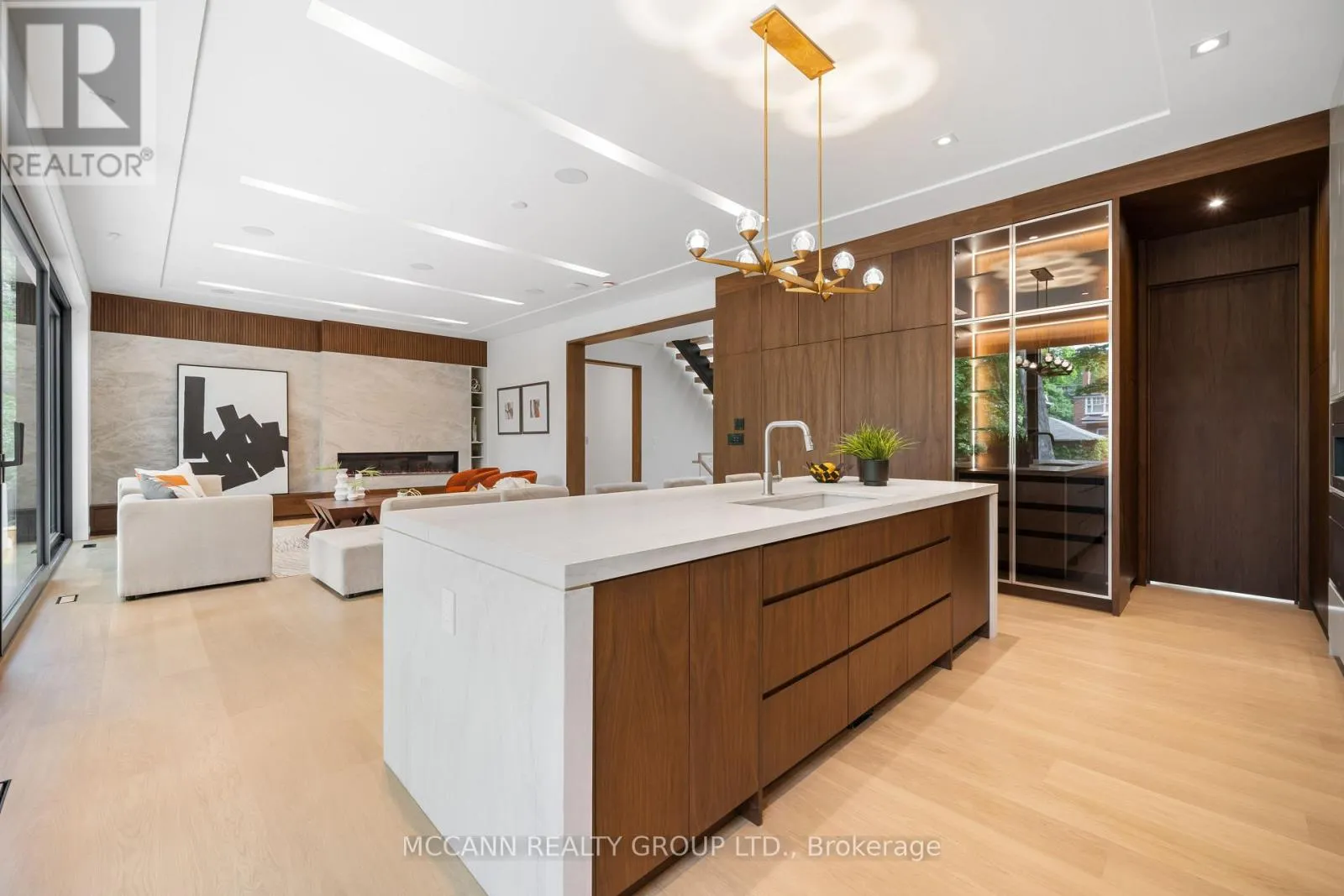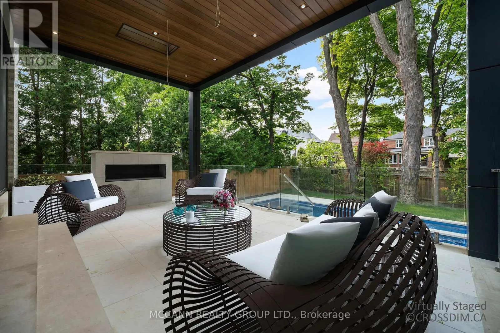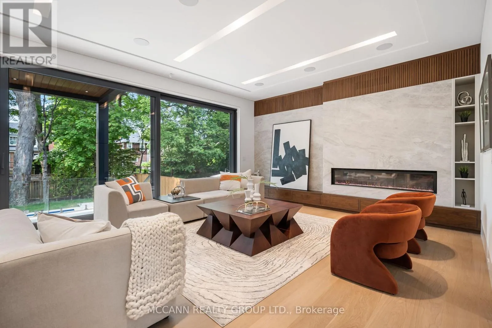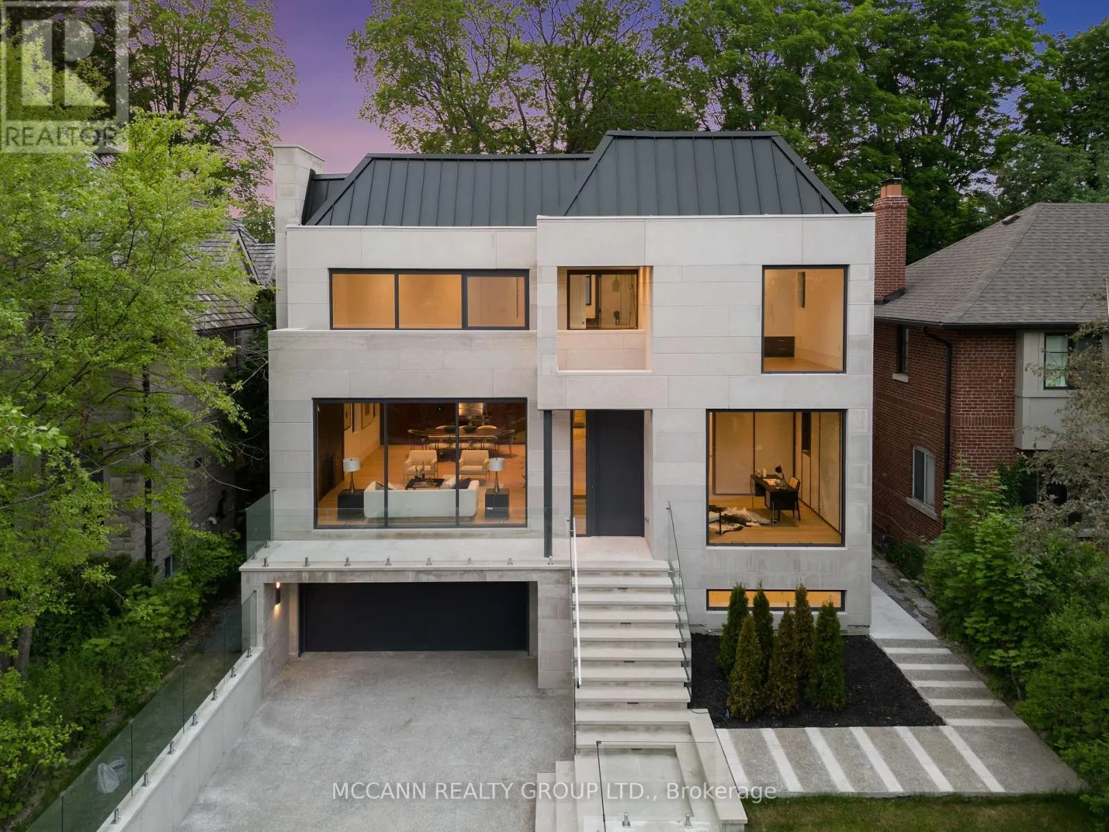 Cross Streets: Lawrence & Mt Pleasant. ** Directions: S. Lawrence & E. Mt Pleasant. Welcome to this exquisite custom-built 4+2 Bedrm 6 Bathrm home, perfectly situated in the heart of Lawrence Park. Soaring 10ft ceilings, sleek pot lights, and White Oak hardwood flrs throughout. Open Concept living and dining rm creates a spacious environment ideal for entertaining with natural light through the floor to ceiling windows. Living rm boasts a gas fireplace. Dining rm features a wine cellar. Main flr office, complete with smart frosting film on glass offers option for privacy. Grand foyer showcases a walk-in closet with sliding doors, powder rm impresses with designer sink and heated floors. Mudroom off of side entrance with custom closets and bench. Gourmet kitchen is a chefs dream, with built-in Miele appliances, refrigerator, freezer, 6-burner gas range, coffee system, transitional speed oven, and dishwasher. Custom-built center island adorned with luxurious quartzite countertops. Open-concept family room, featuring another fireplace with walk out to deck. Natural light floods the contemporary staircase with skylights overhead. Primary suite offers a serene retreat, complete with a 6-piece ensuite, walk-in closet, gas fireplace, bar with beverage cooler, and speaker system, all overlooking the tranquil backyard. 2nd Bedroom with 4pc ensuite features custom built in closets. 4pc ensuite has caesar stone counter top, tub and heated floors. 3rd & 4th Bedrms offer south facing large windows with shared 3pc ensuite with Custom Vanity w/ Caesar stone Countertop, heated flrs, shower. Mezzanine office with gas fireplace. Lower level offers an expansive rec room, two additional bedrooms (ideal for a gym), 2 3pc bathrms, laundry, and a home theatre. Federal Elevator system. iPort Home Automation System. Hot Tub & Pool. Heated Driveway & Stairs, Front Porch, Rear Deck & Rear Stairs. Camera Security System. Double Car Garage. Sprinkler System. Concrete Deck w/Glass Railing (id:27476)