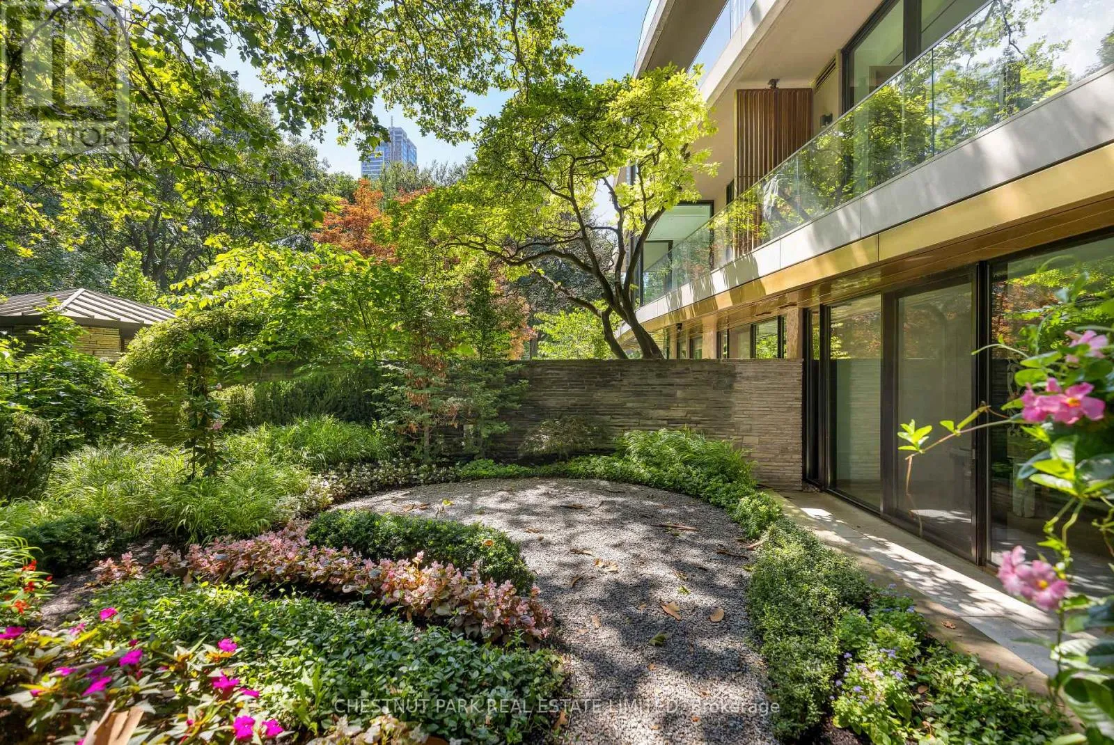 Dale/Castle Frank Welcome to 7 Dale, an exquisite boutique residence by Siamak Hariri and Studio Munge, exemplifying quiet luxury in every thoughtful detail. This fabulous one-of-a-kind apartment offers all the livability, private greenspace and design aesthetic of a midcentury bungalow, set in a newly completed condominium in the heart of Rosedale! Collect art and appreciate great design? A gallery style entrance with large art walls creates a dramatic and memorable first impression and leads to an open concept great room perfect for hosting family gatherings, holiday entertaining or simply relaxing in. Enjoy cooking? You will fall in love with the sleek DaDa chef's kitchen featuring huge central island and 9-piece Gaggenau appliance package with both gas and induction options. Adore nature? Massive floor to ceiling glass panels with walkouts from every room frame the changing seasons of your own private outdoor space. The generous dining/seating terrace is sheltered from rain by a bronze canopy and surrounded by lush layers of beautifully manicured gardens. This suite features a Gallery entrance and generous foyer for entertaining and an abundance of storage. Enjoy the ease and convenience of main floor accessibility with 24 hour concierge services just down the hall and potential for a direct private gated access to Dale Avenue (perfect for morning runs or walking the dogs!) Downstairs, a sumptuous spa and fitness club await, fitted with Pent, Peleton and Tonal equipment. A home suited for year round enjoyment or lock and leave to travel at a moment's notice with complete security and peace of mind assured. Mere minutes to the city's finest shopping and dining venues, yet feels like an exclusive retreat a world away from the urban bustle. This is a rare opportunity to enjoy a lifestyle without compromise, combining the unique features of a home with all of the benefits of a condominium. (id:27476)