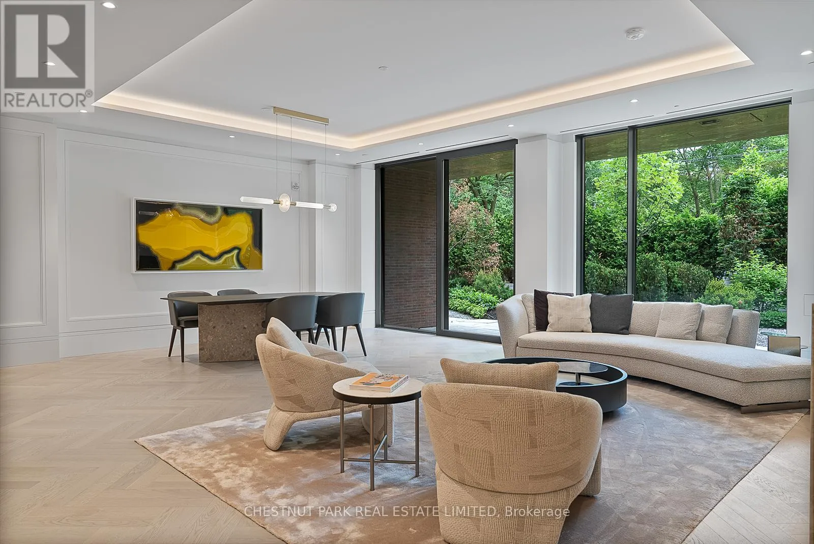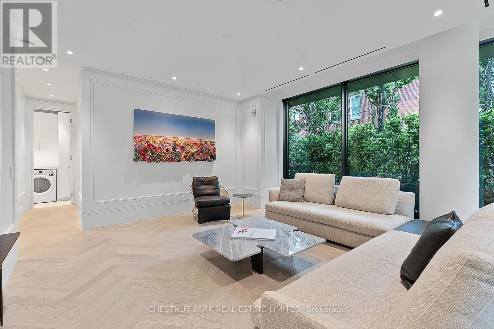 Cross Streets: Dale/Castlefrank. ** Directions: Dale/Castle Frank. Welcome to 7 Dale, an exquisite boutique residence by Siamak Hariri and Studio Munge, exemplifying quiet luxury in every thoughtful detail. This fabulous one-of-a-kind apartment offers all the livability, private greenspace and design aesthetic of a midcentury bungalow, set in a newly completed condominium in the heart of Rosedale! Collect art and appreciate great design? A gallery style entrance with large art walls creates a dramatic and memorable first impression and leads to an open concept great room perfect for hosting family gatherings, holiday entertaining or simply relaxing in. Enjoy cooking? You will fall in love with the sleek DaDa chef's kitchen featuring huge central island and 9-piece Gaggenau appliance package with both gas and induction options. Adore nature? Massive floor to ceiling glass panels with walkouts from every room frame the changing seasons of your own private outdoor space. The generous dining/seating terrace is sheltered from rain by a bronze canopy and surrounded by lush layers of beautifully manicured gardens. Value privacy? The split bedroom layout allows for maximum separation of space while a corner family room offers an alternative retreat off the great room, ideal for reading or watching films. Enjoy the ease and convenience of main floor accessibility with 24 hour concierge services just down the hall and potential for a direct private gated access to Dale Avenue (perfect for morning runs or walking the dogs!) Downstairs, a sumptuous spa and fitness club await, fitted with Pent, Peleton and Tonal equipment. A home suited for year round enjoyment or lock and leave to travel at a moment's notice with complete security and peace of mind assured. Mere minutes to the city's finest shopping and dining venues, yet feels like an exclusive retreat a world away from the urban bustle. This is a rare opportunity to enjoy a lifestyle without compromise, combining the unique features of a home with all of the benefits of a condominium. (id:27476)