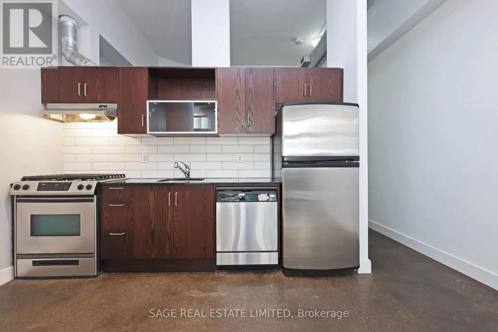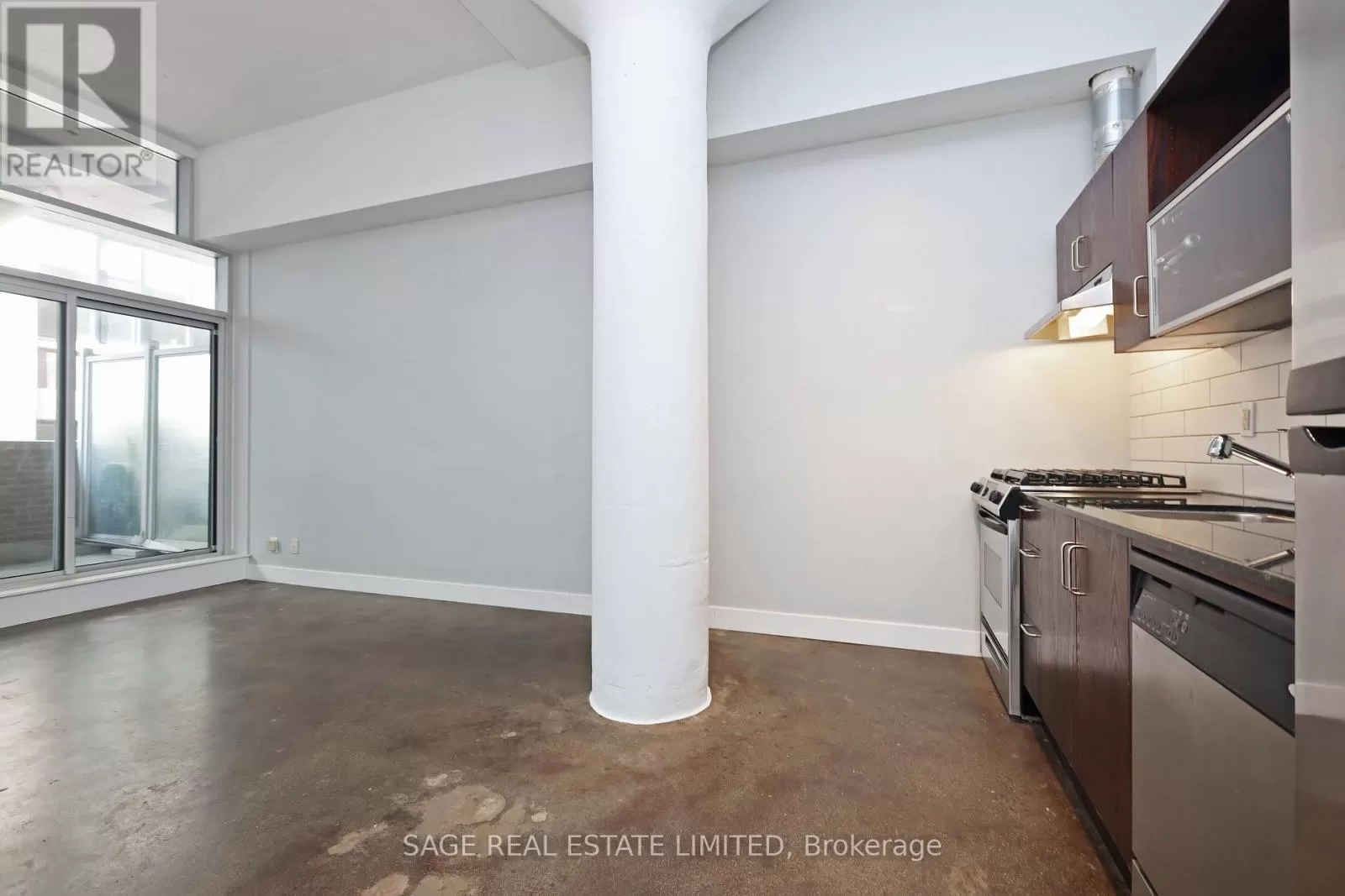 Queen & Carlaw Located in the highly desirable Garment Factory Lofts, theres a lot to like about this bright and spacious one bedroom loft. You will appreciate almost 600 square feet of living space that features polished concrete floors and soaring 11 foot ceilings. Best of all is the spacious living/dining room that opens to an oversized, covered balcony that is a natural extension of the living space. The building features a concierge, gym and exercise room. Comfortably nestled in Leslieville, the convenient location features all the pleasures of city living. You are only steps away from charming streets, tree lined parks, and local shops, bars, restaurant and coffee shop. (id:27476)