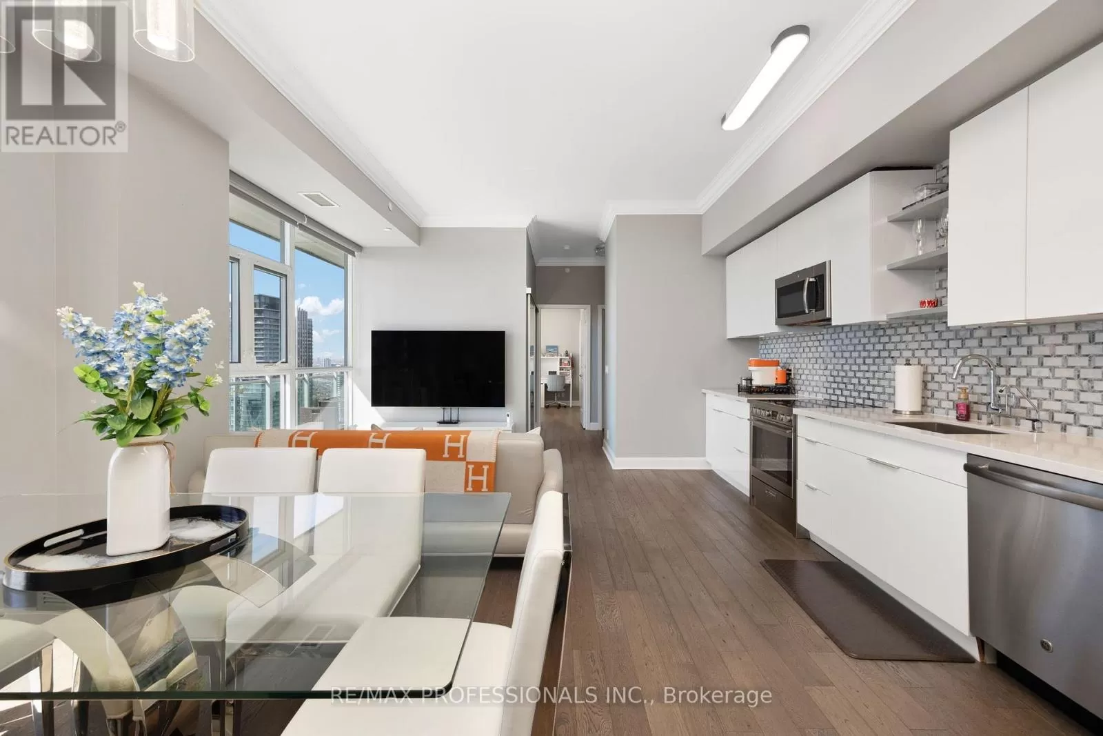 Lake Shore Blvd W & Park Lawn Rd Welcome to Jade Waterfront Condos, located in the picturesque lakeside neighborhood of Humber Bay Shores. This sleek and modern building, featuring striking wave-like balconies, offers an impressive array of amenities for its residents. Highlights include a spacious gym with stunning southern views of the lake while you workout, a beautiful party room, theater room, and a resort-style outdoor pool equipped with lounge chairs. Additional amenities include guest suites, dog wash station, ample visitor parking, car wash stall, yoga room, sauna/hot tub, barbecue area with terrace seating, games room, golf simulator/putting green, and 24/7 security and concierge services. This modern lower-penthouse suite features floor-to-ceiling windows that allow sunlight to flood each room, creating a bright and inviting atmosphere. Every window offers scenic views of the lake. The spacious layout includes split bedrooms, a large den that can be used as a nursery, and high-end finishes. The owner has made numerous upgrades throughout the suite that provide a warm and cozy feel. Both bedrooms come with ensuite bathrooms, while a powder room is conveniently located in the large front foyer for your guests. The unit is equipped with a full-sized washer and dryer and includes a laundry sink. Additionally, there is a massive 15-ft x 9-ft private locker room located in front of the parking spot, which is a condo living dream! You'll enjoy breathtaking southwest views of Lake Ontario and the marina from the expansive balcony. This suite has so much to offer and is move-in ready! Walking distance to numerous fantastic restaurants. Enjoy an after-dinner stroll along the Humber Bay Path, located across the road from many dining options. The bike path extends to downtown Toronto. You'll find nearby parks, highways, grocery stores, coffee shops, a seasonal farmers market, the Mimico Cruising Club Marina, Mimico GO station, and a future Park Lawn GO station coming to the area. (id:27476)
