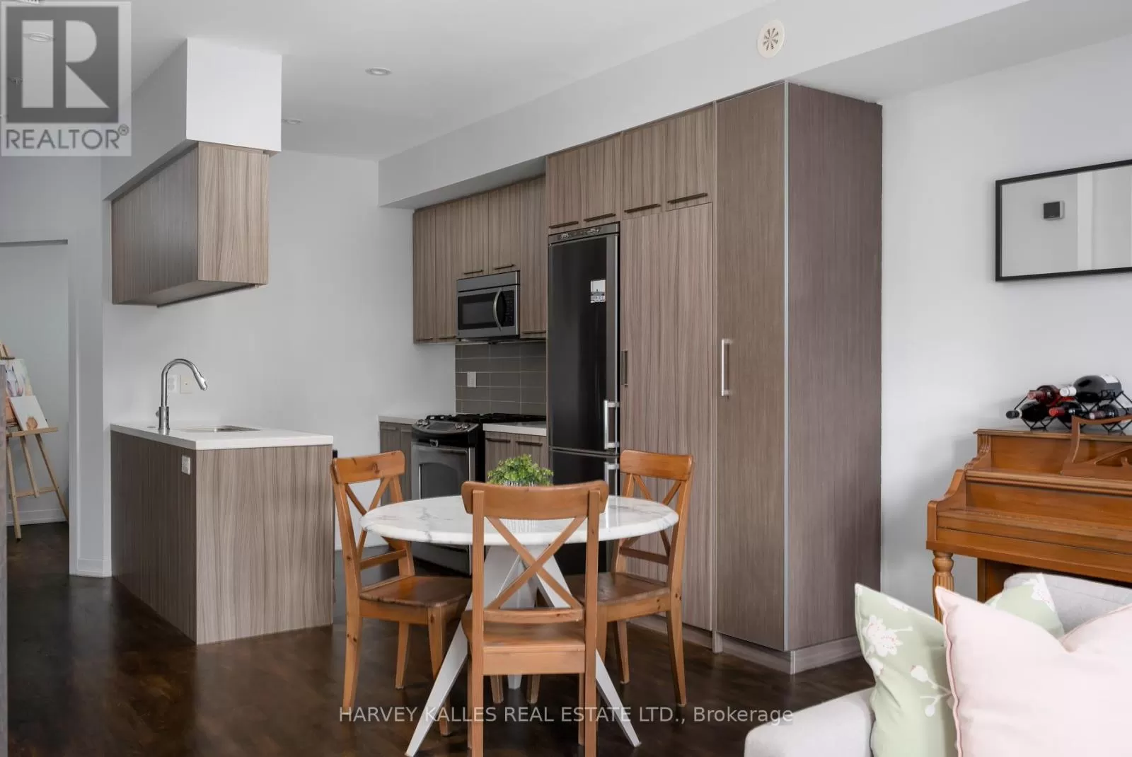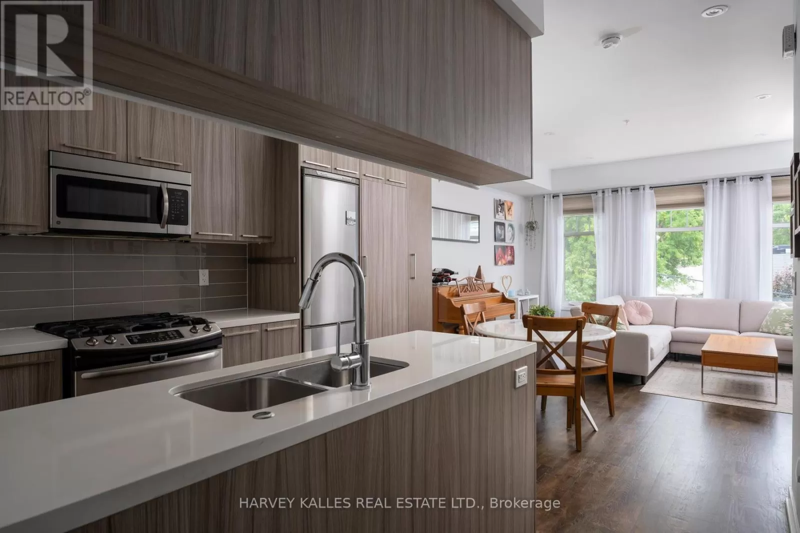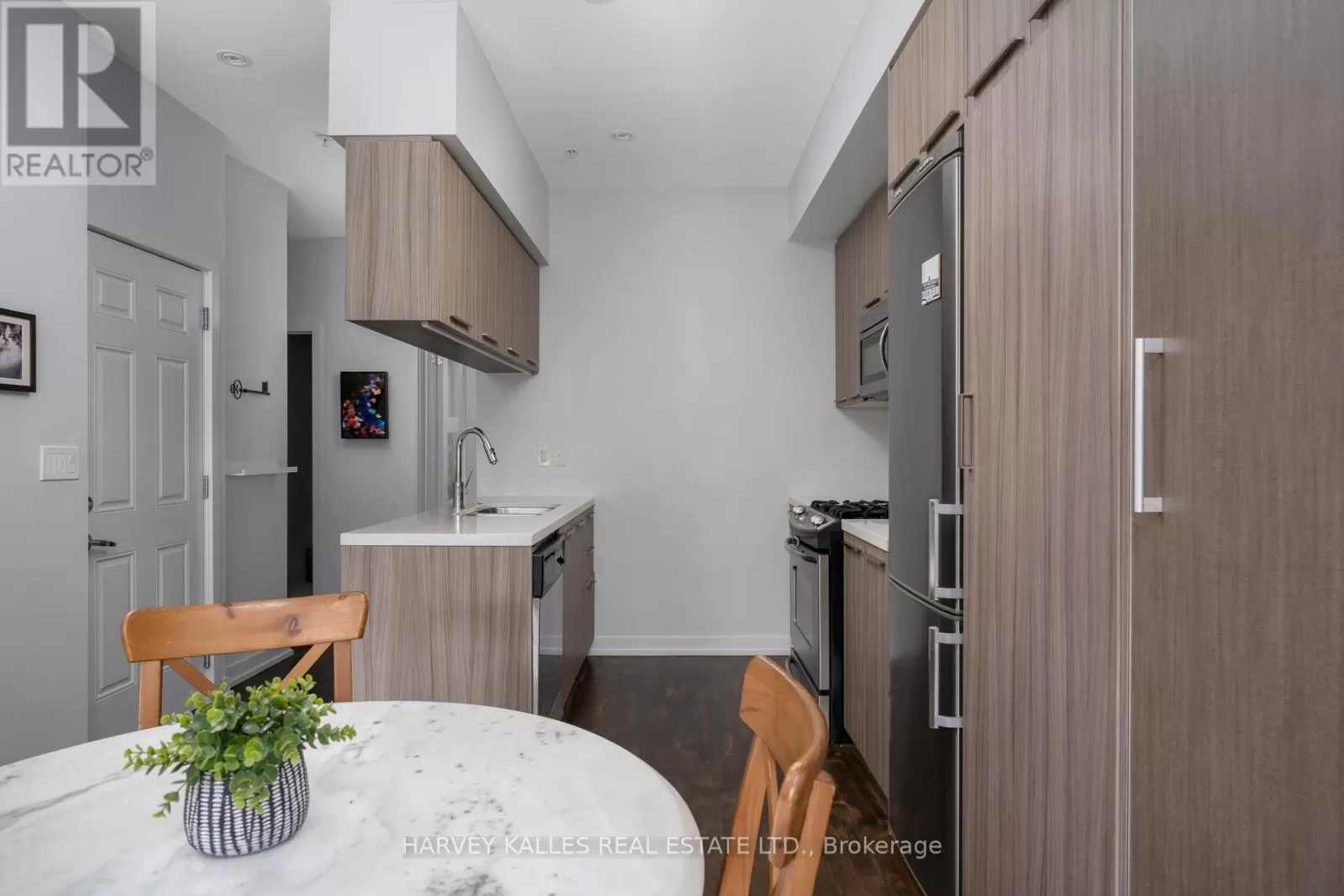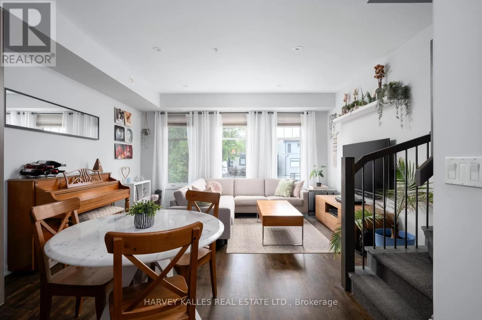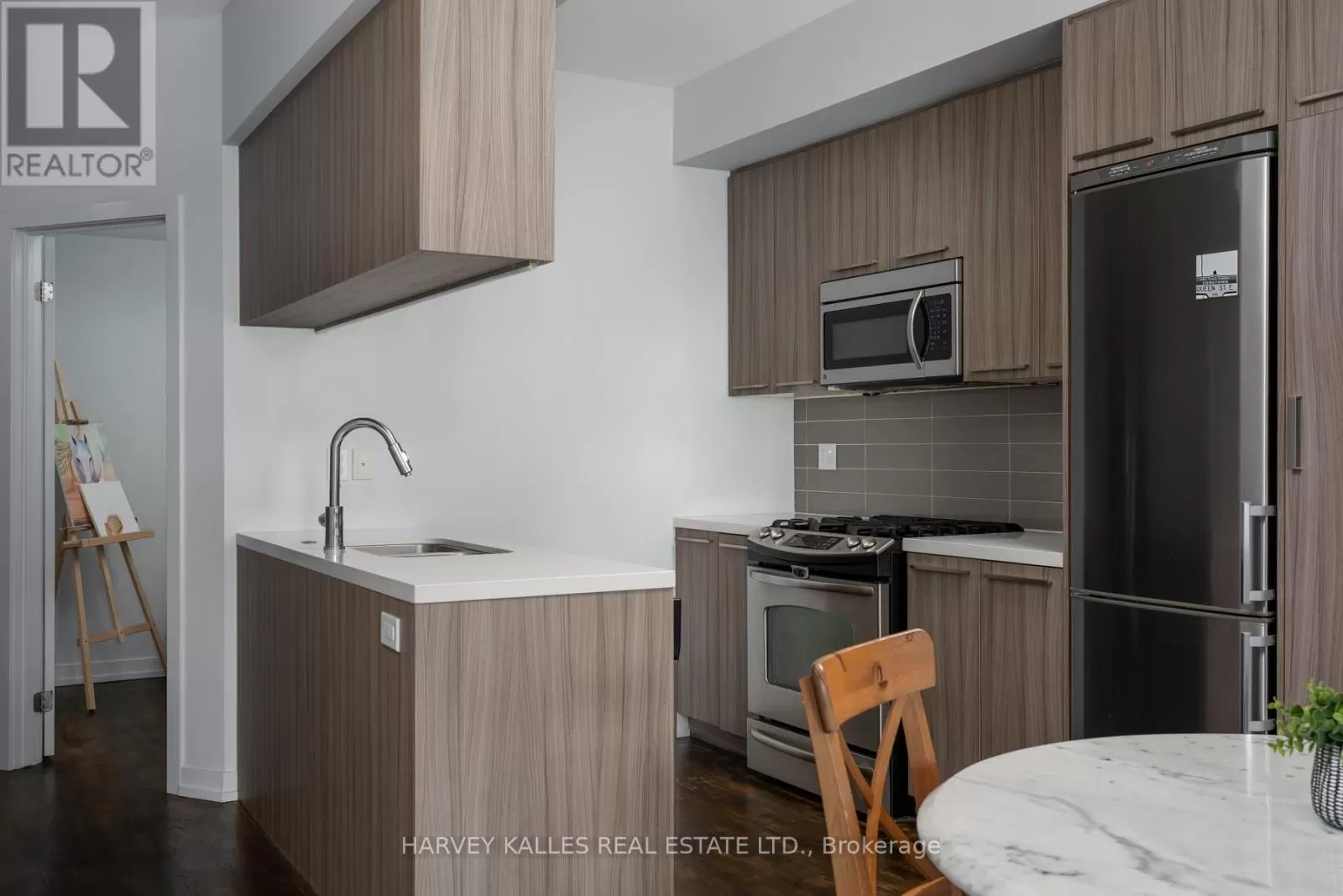 Queen St E & Broadview Ave Welcome to Riverside Towns, where space, light, and lifestyle meet. This rare 1,380 sq. ft. end-unit townhome impresses with its wide, sun-filled layout, hardwood floors, and versatile office/den. The sleek kitchen is a chefs delight with Caesarstone counters, stainless steel appliances, gas stove, and an oversized pantry, seamlessly connecting to the open living and dining areas for both effortless entertaining and everyday comfort. A convenient main floor powder room completes the picture.Upstairs, two spacious bedrooms offer abundant storage, including wall-to-wall closets and a skylit second bedroom. The serene primary suite features west-facing windows and a private ensuite.The highlight is a sprawling rooftop terrace with gas BBQ hookup and spectacular CN Tower and skyline views, creating an unrivaled setting for al fresco dining, entertaining, or simply unwinding at sunset.Perfectly positioned in Riverside, just steps to Queen East boutiques, dining, the Broadview Hotel, 24hr TTC, and the DVP, this move-in-ready home is a rare offering that combines function, style, and one of the best rooftops in the city. (id:27476)