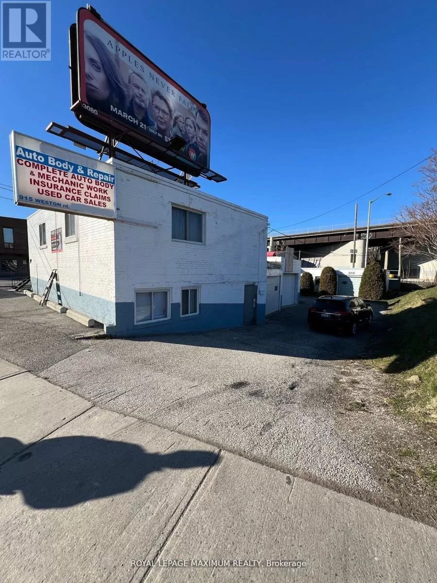 Black Creek Dr / Weston Rd Rare opportunity with a great location...commercial space allowing many uses. Main floor area approx. 1500 sqft with 2 sections and separate d/I door each. Previously used for auto-motive. Upstairs is vacant 2 bedroom, 1 bath apartment with separate entrance, and separate meters for utilities. Additional income from roof sign at $3,755 + hst year. There is a 2nd different property at the back of this, which is 915 A Weston Rd, this is not included. **EXTRAS** Phase 1 and 2 environmental completed year ago. (id:27476)