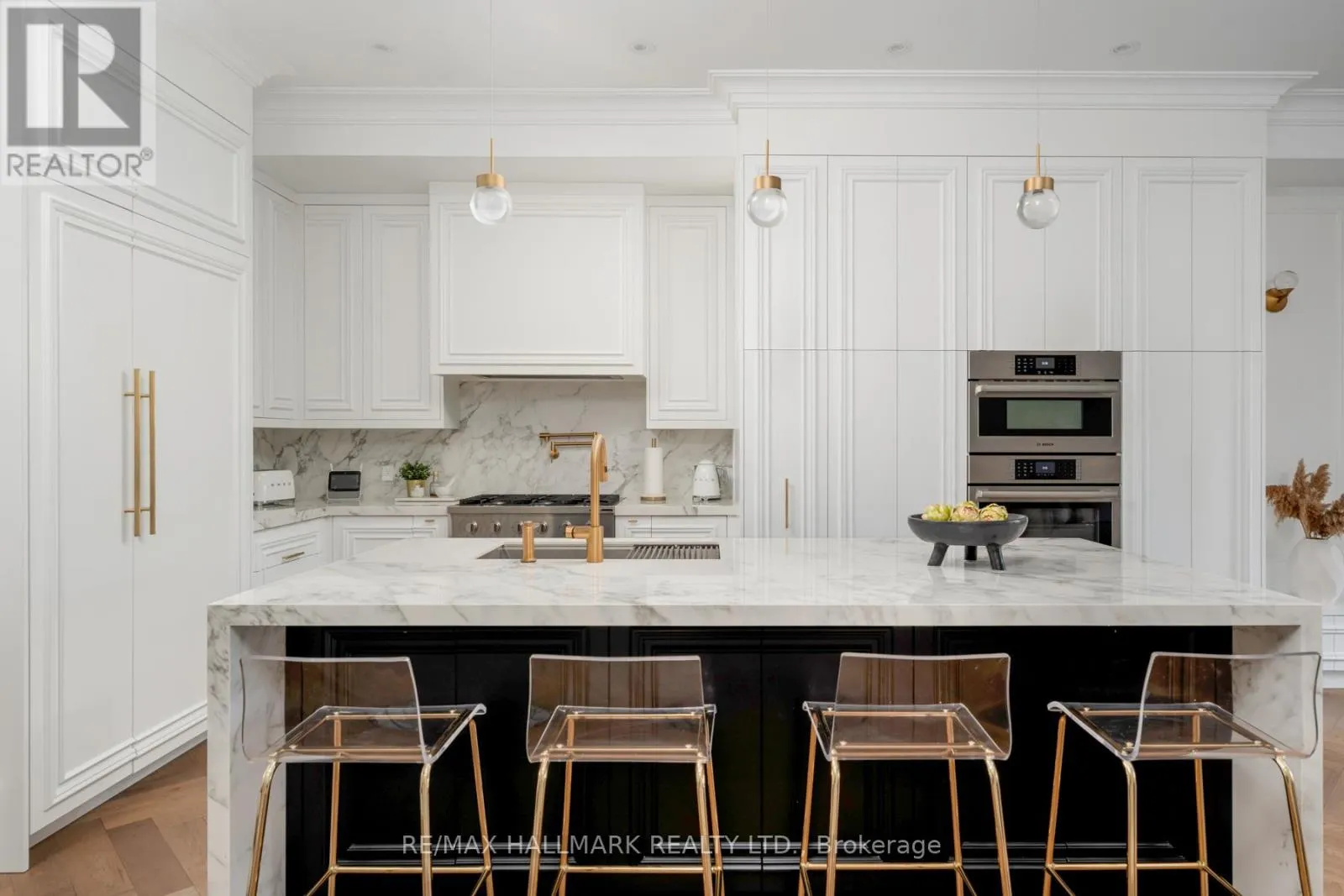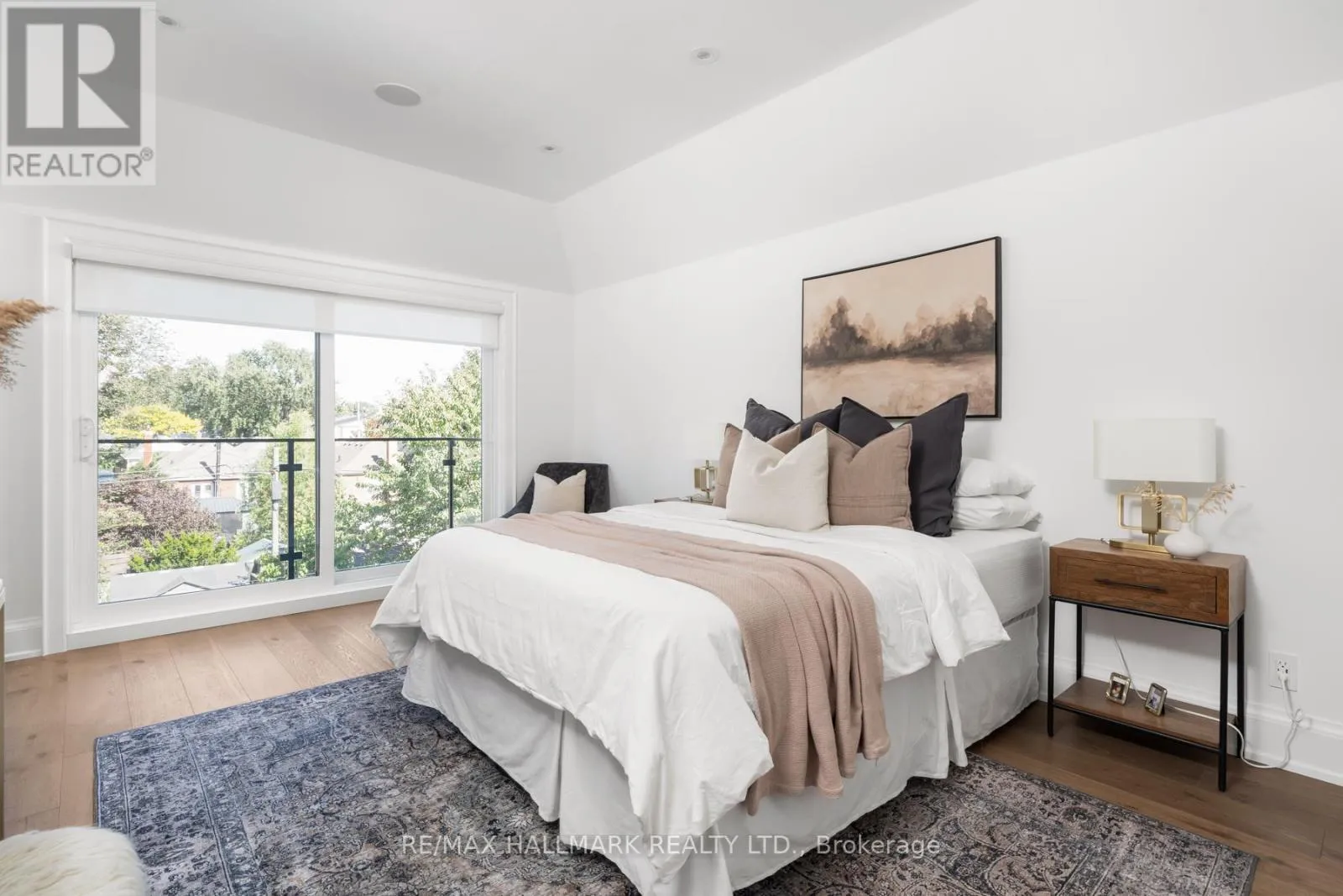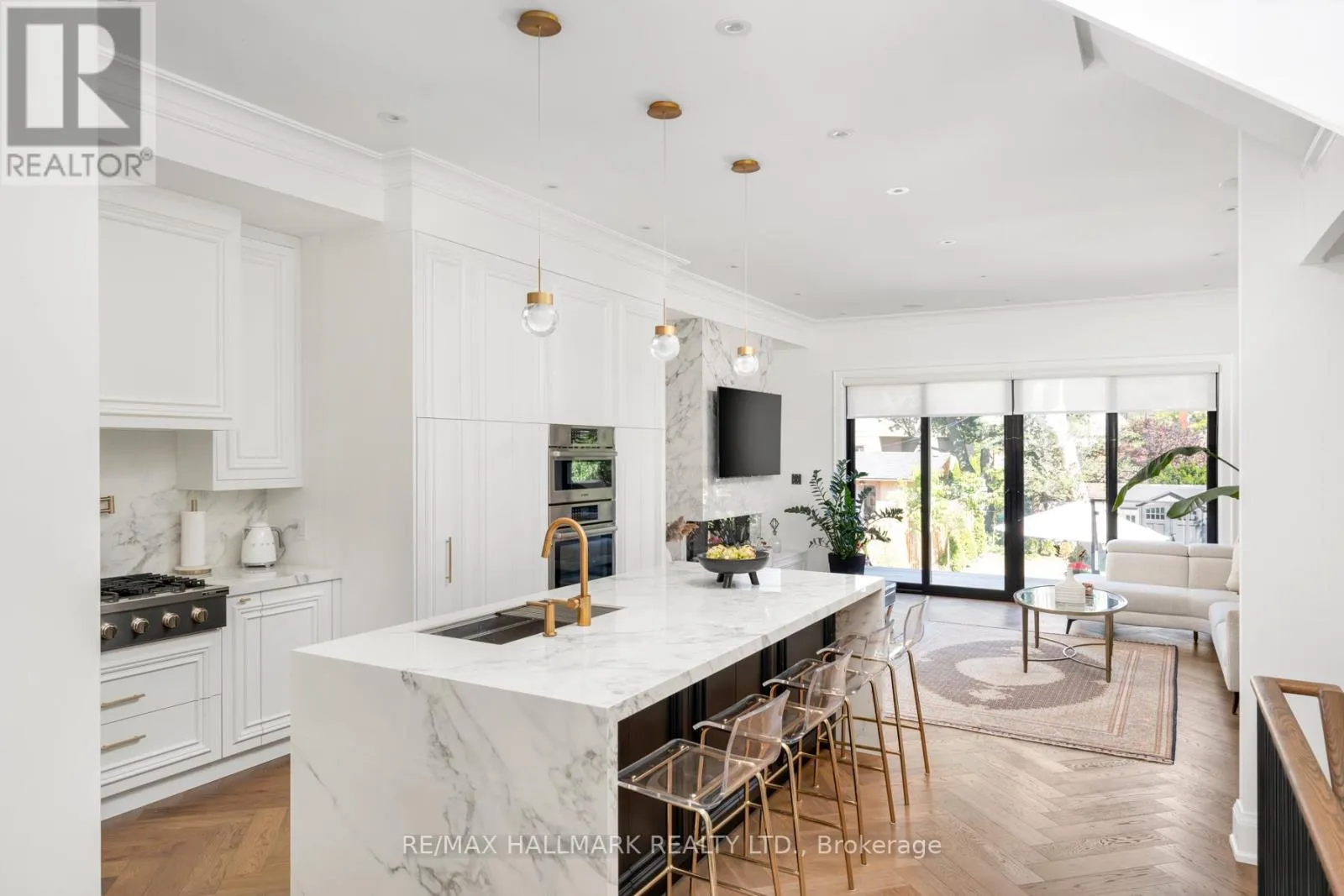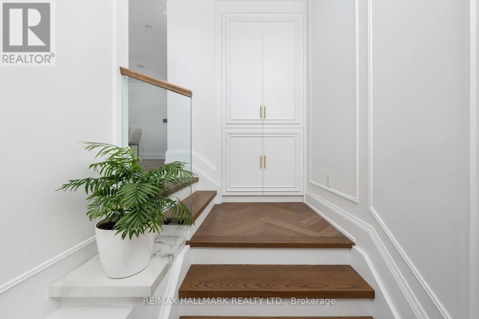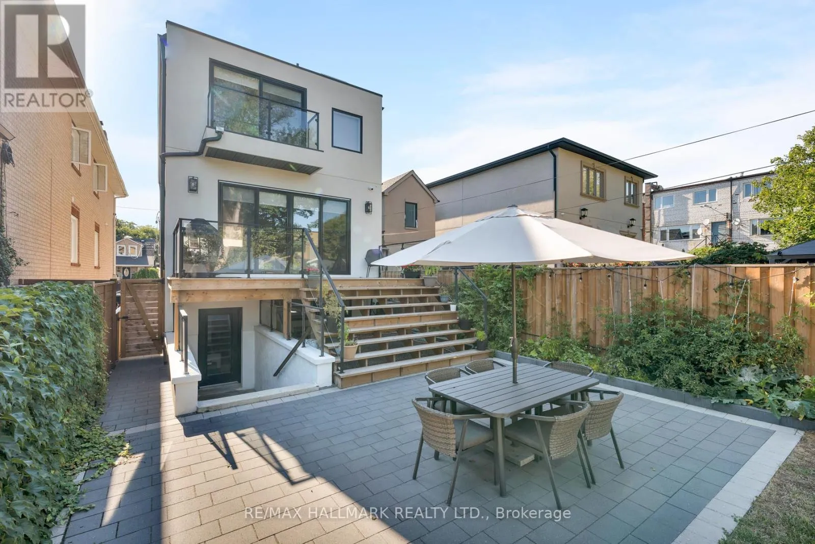 Cross Streets: Cosburn Ave & Coxwell Ave. ** Directions: From Cosburn Ave turn south on Linsmore Cres. The property is on the left. Welcome to this fabulous 4+1 bed, 4.5 bath, two-storey home, thoughtfully designed with a unique layout & loaded with high-end finishes throughout, offering style, functionality & smart living. Located in a family-friendly neighborhood just steps from Dieppe Park & within one of the city's most desirable school districts. Step inside to discover gorgeous hardwood floors, wall paneling, complemented with skylights & soaring ceilings. The main flr features a fabulous layout with a spacious foyer, a few steps up, you will find the formal living & dining room offering an inviting space with full wall paneling, b/i bar display, and integrated ceiling speakers. From there, three steps lead down to the show-stopping kitchen & family rm with a massive 4-panel glass door that opens directly to the private backyard. A magazine-worthy kitchen featuring a striking porcelain island, matching porcelain countertops & backsplash, & a top-of-the-line appliances. The family room is equally impressive with a sleek fireplace framed by a full porcelain wall, custom wood wall panels & b/i speakers. A conveniently located powder room completes the main living area. Upstairs, a large skylight fills the hallway with natural light, leading to four bedrooms, two with their own private ensuites, plus an additional 3PC bath. A conveniently located laundry area is tucked into a custom-built closet on this level. The primary bedroom offers three b/i closets, a 5PC ensuite, sound system, and sliding door to a private balcony overlooking the backyard. The lower level offers extra living space featuring high ceilings, garage access, an extra bedroom, a 3PC bath, a combined kitchen/living area, laundry & W/O to the backyard. Step outside to a beautifully landscaped & fully fenced backyard complete with a large deck with glass railing, interlock patio, garden shed, BBQ gas hookup, & an irrigation system. This Masterpiece Checks All The Boxes! (id:27476)