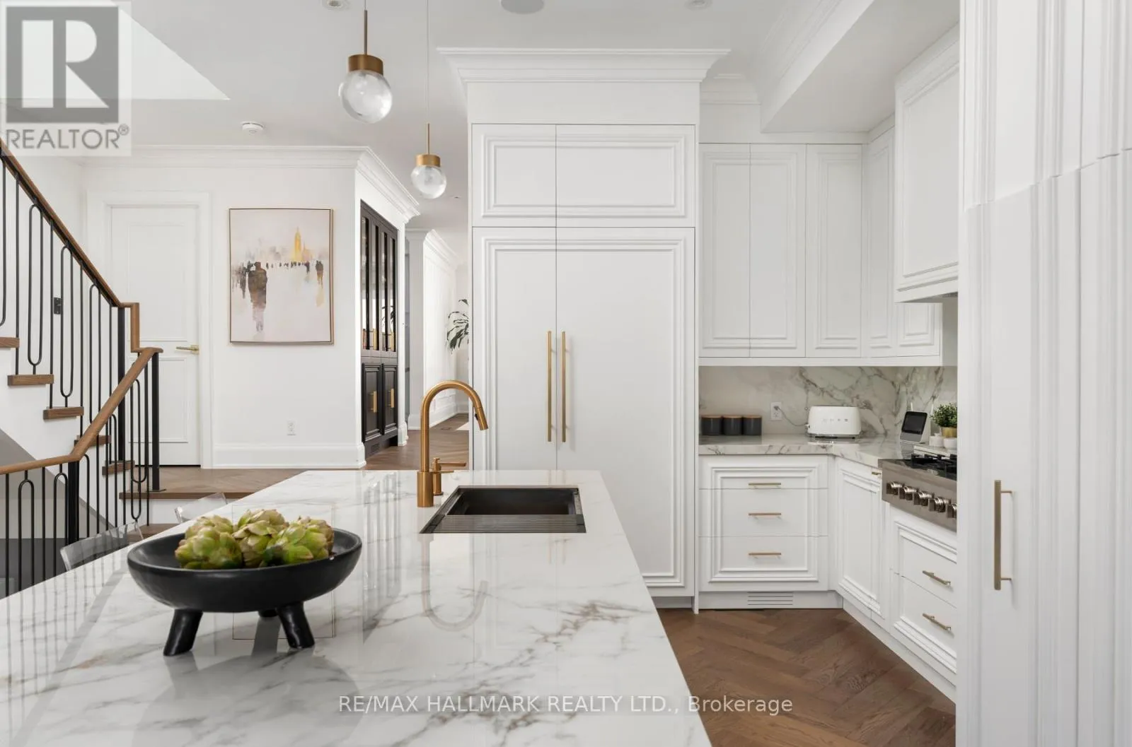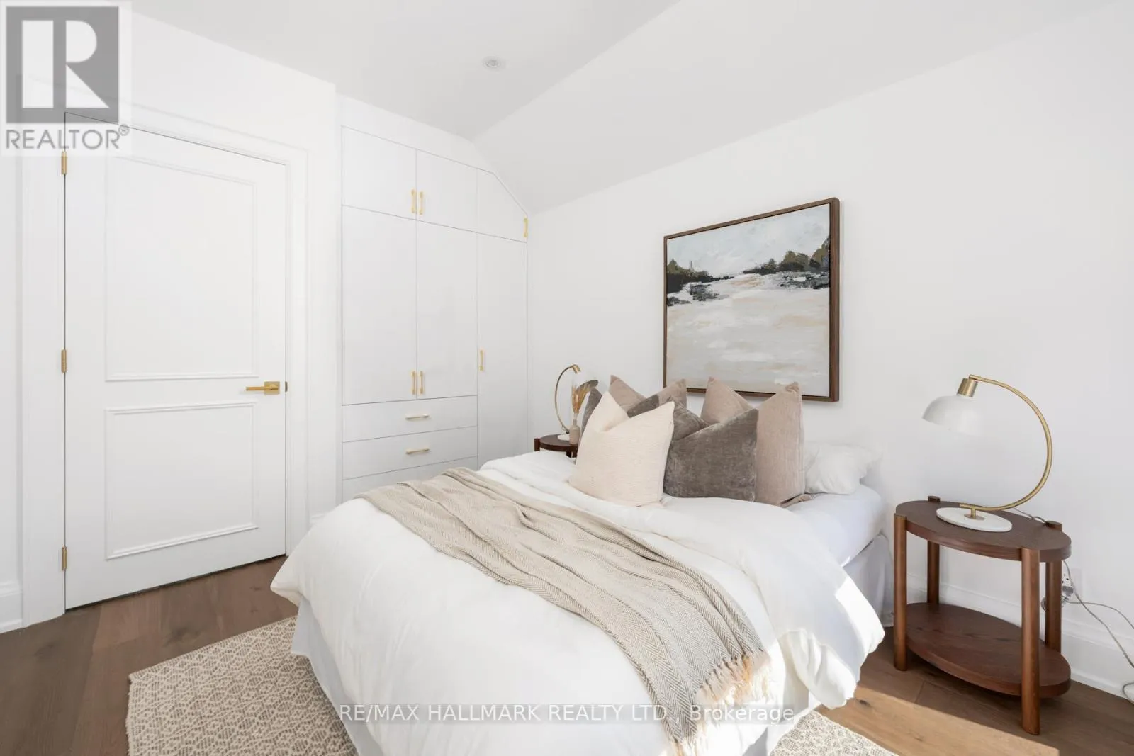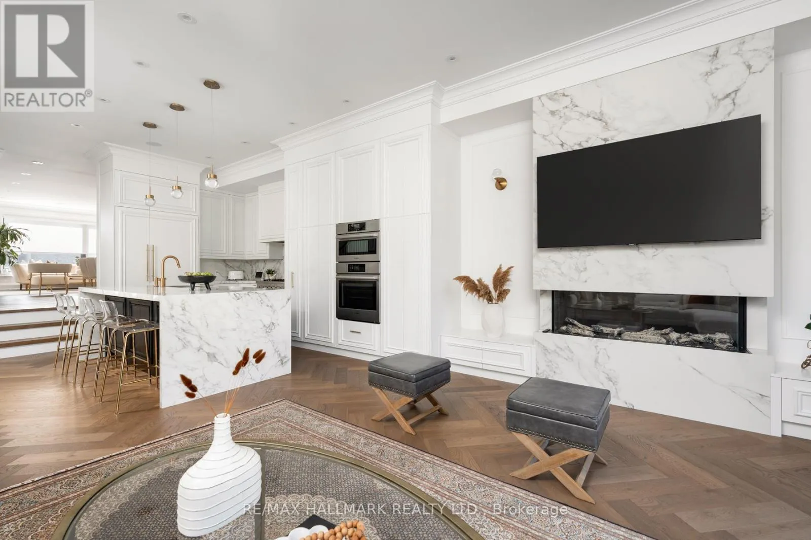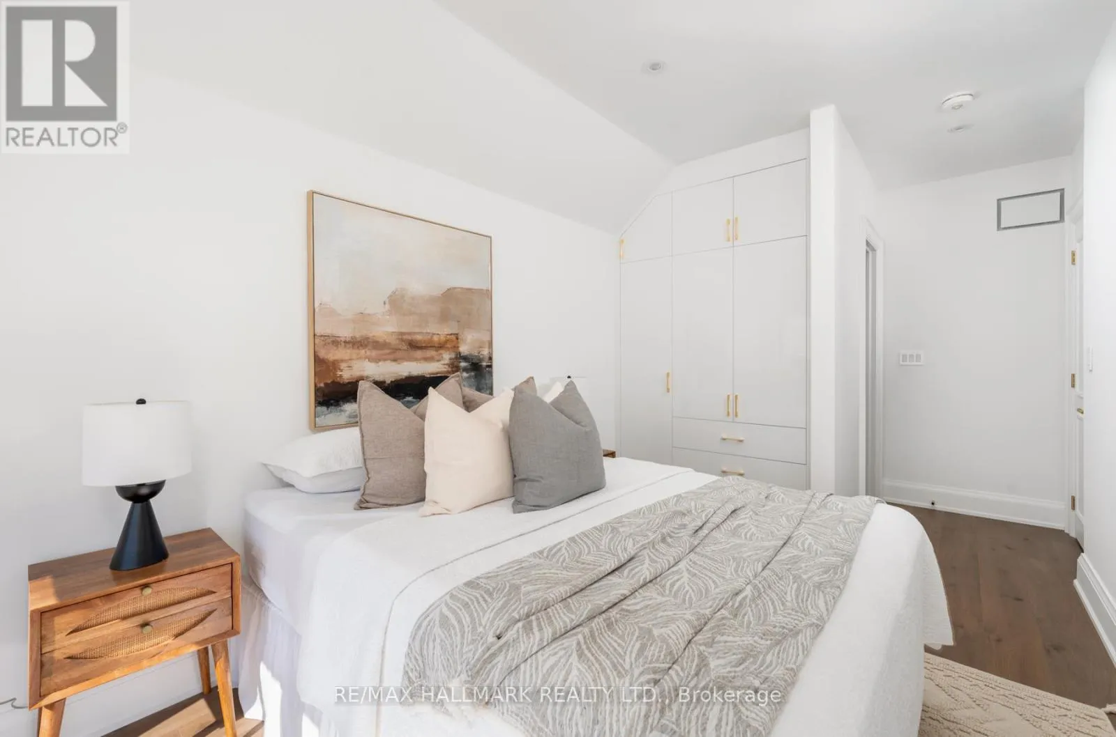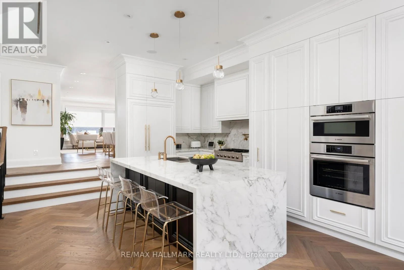 Cross Streets: Cosburn Ave & Coxwell Ave. ** Directions: From Cosburn Ave turn south on Linsmore Cres. The property is on the left. Welcome to this fabulous 4+1 bed, 4.5 bath, two-storey home, thoughtfully designed with a unique layout & loaded with high-end finishes throughout, offering style, functionality & smart living. Located in a family-friendly neighborhood just steps from Dieppe Park & within one of the city's most desirable school districts. Step inside to discover gorgeous hardwood floors, wall paneling, complemented with skylights & soaring ceilings. The main flr features a fabulous layout with a spacious foyer, a few steps up, you will find the formal living & dining room offering an inviting space with full wall paneling, b/i bar display, and integrated ceiling speakers. From there, three steps lead down to the show-stopping kitchen & family rm with a massive 4-panel glass door that opens directly to the private backyard. A magazine-worthy kitchen featuring a striking porcelain island, matching porcelain countertops & backsplash, & a top-of-the-line appliances. The family room is equally impressive with a sleek fireplace framed by a full porcelain wall, custom wood wall panels & b/i speakers. A conveniently located powder room completes the main living area. Upstairs, a large skylight fills the hallway with natural light, leading to four bedrooms, two with their own private ensuites, plus an additional 3PC bath. A conveniently located laundry area is tucked into a custom-built closet on this level. The primary bedroom offers three b/i closets, a 5PC ensuite, sound system, and sliding door to a private balcony overlooking the backyard. The lower level offers extra living space featuring high ceilings, garage access, an extra bedroom, a 3PC bath, a combined kitchen/living area, laundry & W/O to the backyard. Step outside to a beautifully landscaped & fully fenced backyard complete with a large deck with glass railing, interlock patio, garden shed, BBQ gas hookup, & an irrigation system. This Masterpiece Checks All The Boxes! (id:27476)