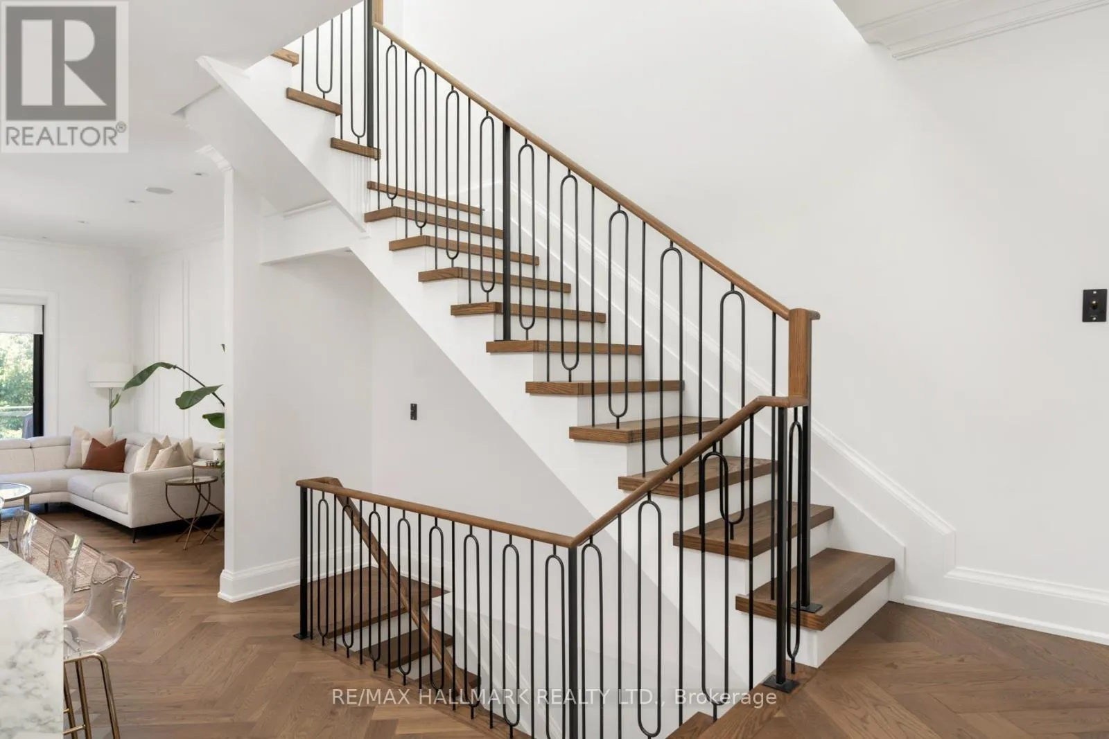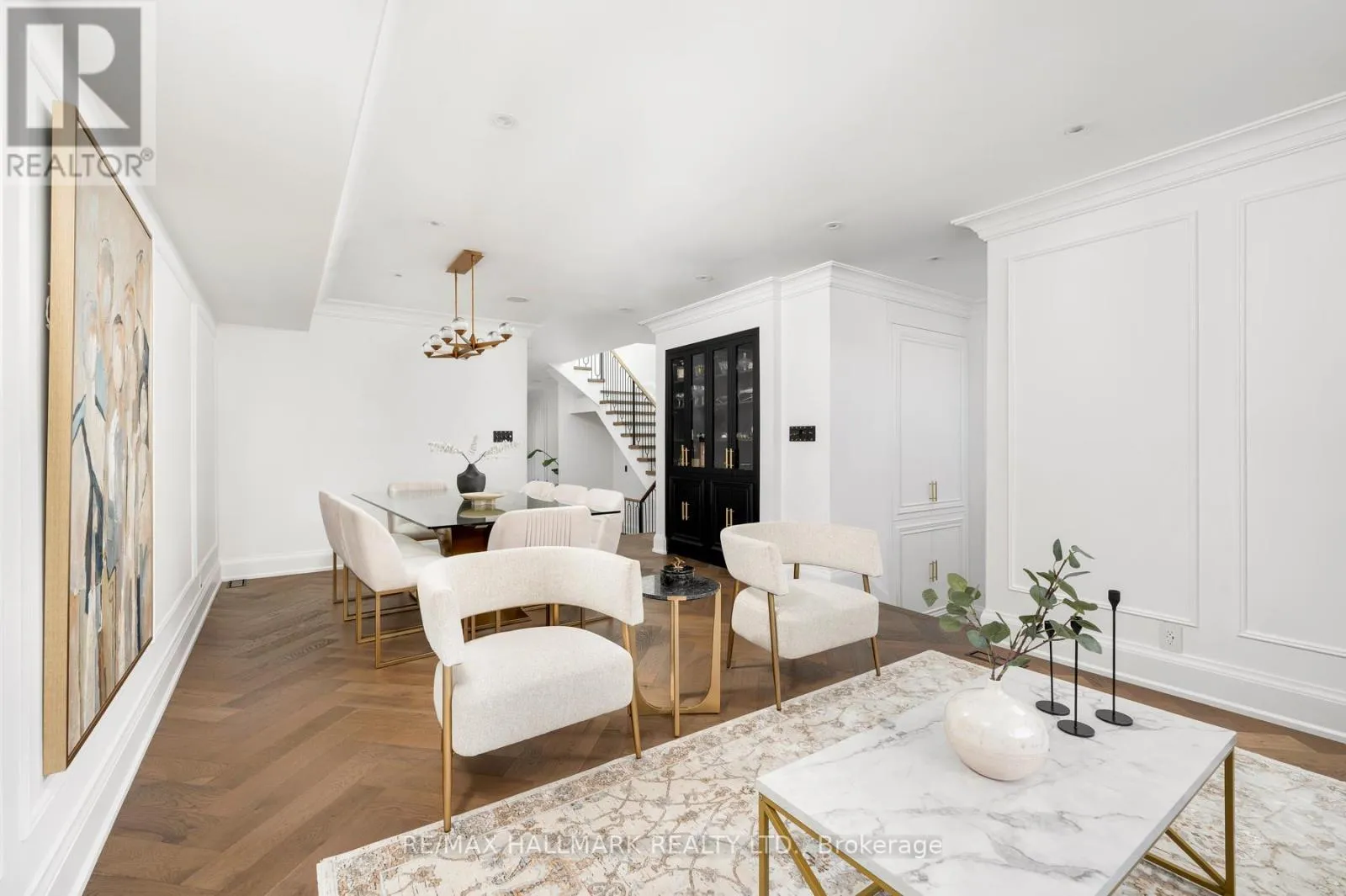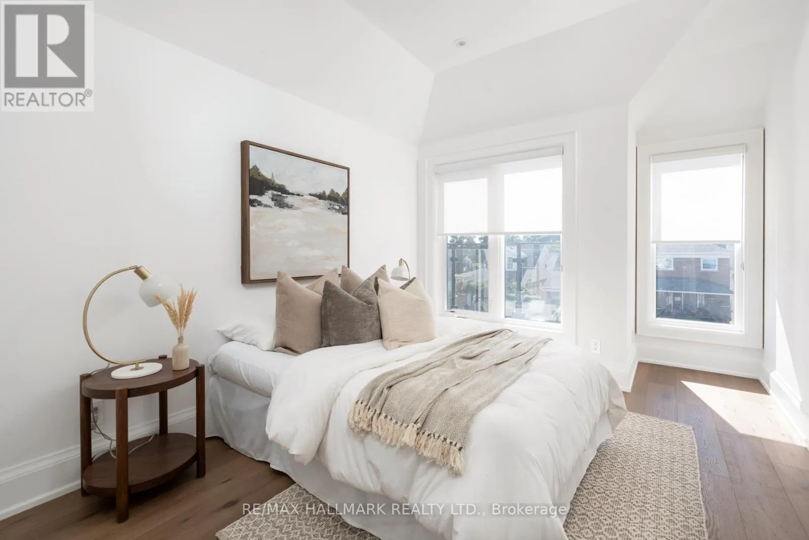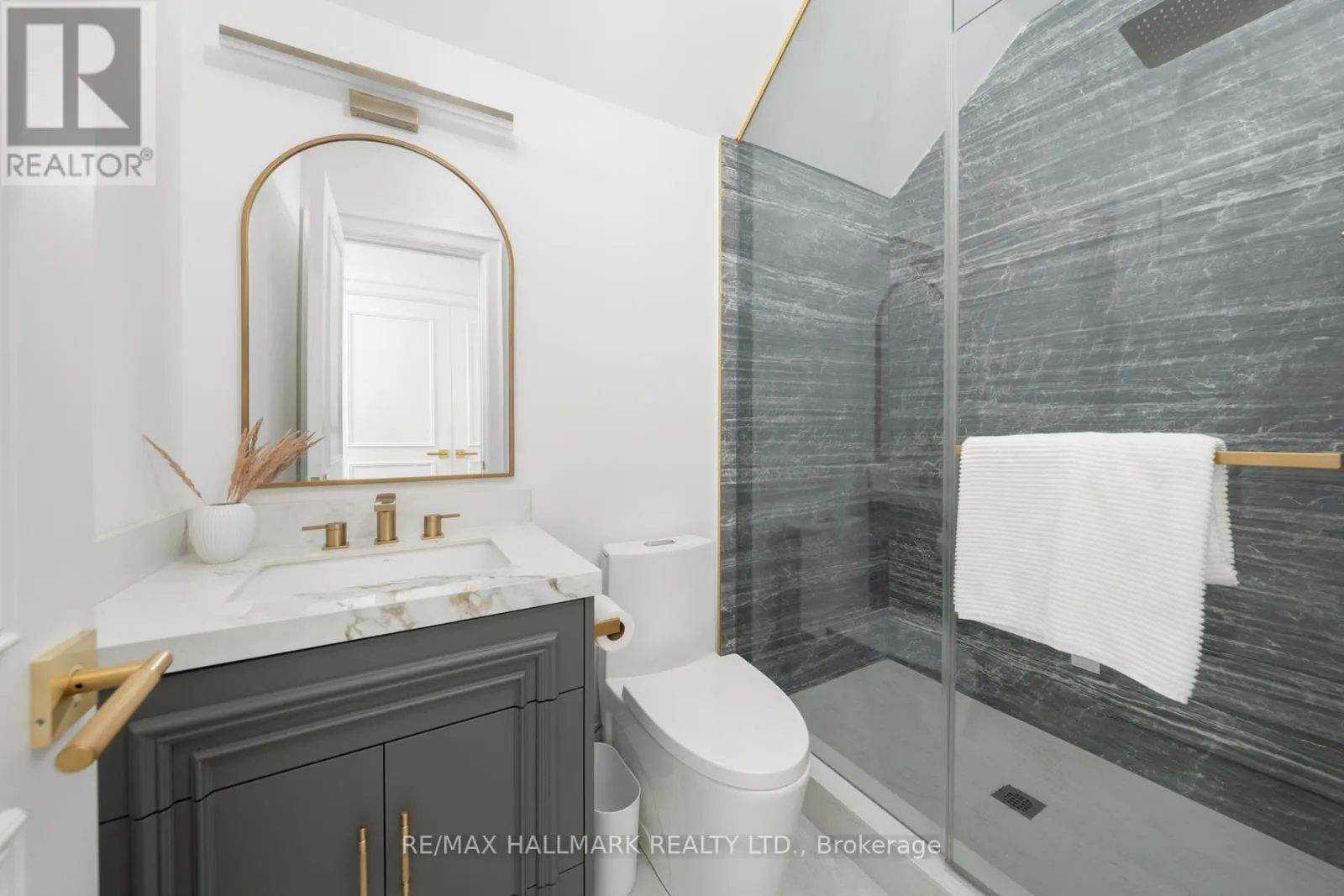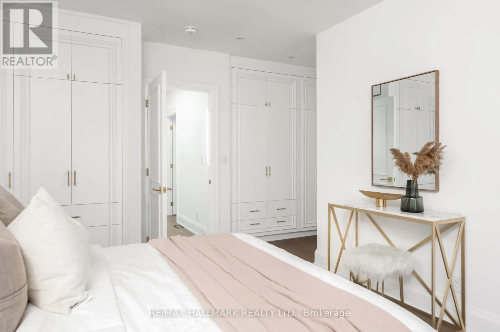 Cross Streets: Cosburn Ave & Coxwell Ave. ** Directions: From Cosburn Ave turn south on Linsmore Cres. The property is on the left. Welcome to this fabulous 4+1 bed, 4.5 bath, two-storey home, thoughtfully designed with a unique layout & loaded with high-end finishes throughout, offering style, functionality & smart living. Located in a family-friendly neighborhood just steps from Dieppe Park & within one of the city's most desirable school districts. Step inside to discover gorgeous hardwood floors, wall paneling, complemented with skylights & soaring ceilings. The main flr features a fabulous layout with a spacious foyer, a few steps up, you will find the formal living & dining room offering an inviting space with full wall paneling, b/i bar display, and integrated ceiling speakers. From there, three steps lead down to the show-stopping kitchen & family rm with a massive 4-panel glass door that opens directly to the private backyard. A magazine-worthy kitchen featuring a striking porcelain island, matching porcelain countertops & backsplash, & a top-of-the-line appliances. The family room is equally impressive with a sleek fireplace framed by a full porcelain wall, custom wood wall panels & b/i speakers. A conveniently located powder room completes the main living area. Upstairs, a large skylight fills the hallway with natural light, leading to four bedrooms, two with their own private ensuites, plus an additional 3PC bath. A conveniently located laundry area is tucked into a custom-built closet on this level. The primary bedroom offers three b/i closets, a 5PC ensuite, sound system, and sliding door to a private balcony overlooking the backyard. The lower level offers extra living space featuring high ceilings, garage access, an extra bedroom, a 3PC bath, a combined kitchen/living area, laundry & W/O to the backyard. Step outside to a beautifully landscaped & fully fenced backyard complete with a large deck with glass railing, interlock patio, garden shed, BBQ gas hookup, & an irrigation system. This Masterpiece Checks All The Boxes! (id:27476)