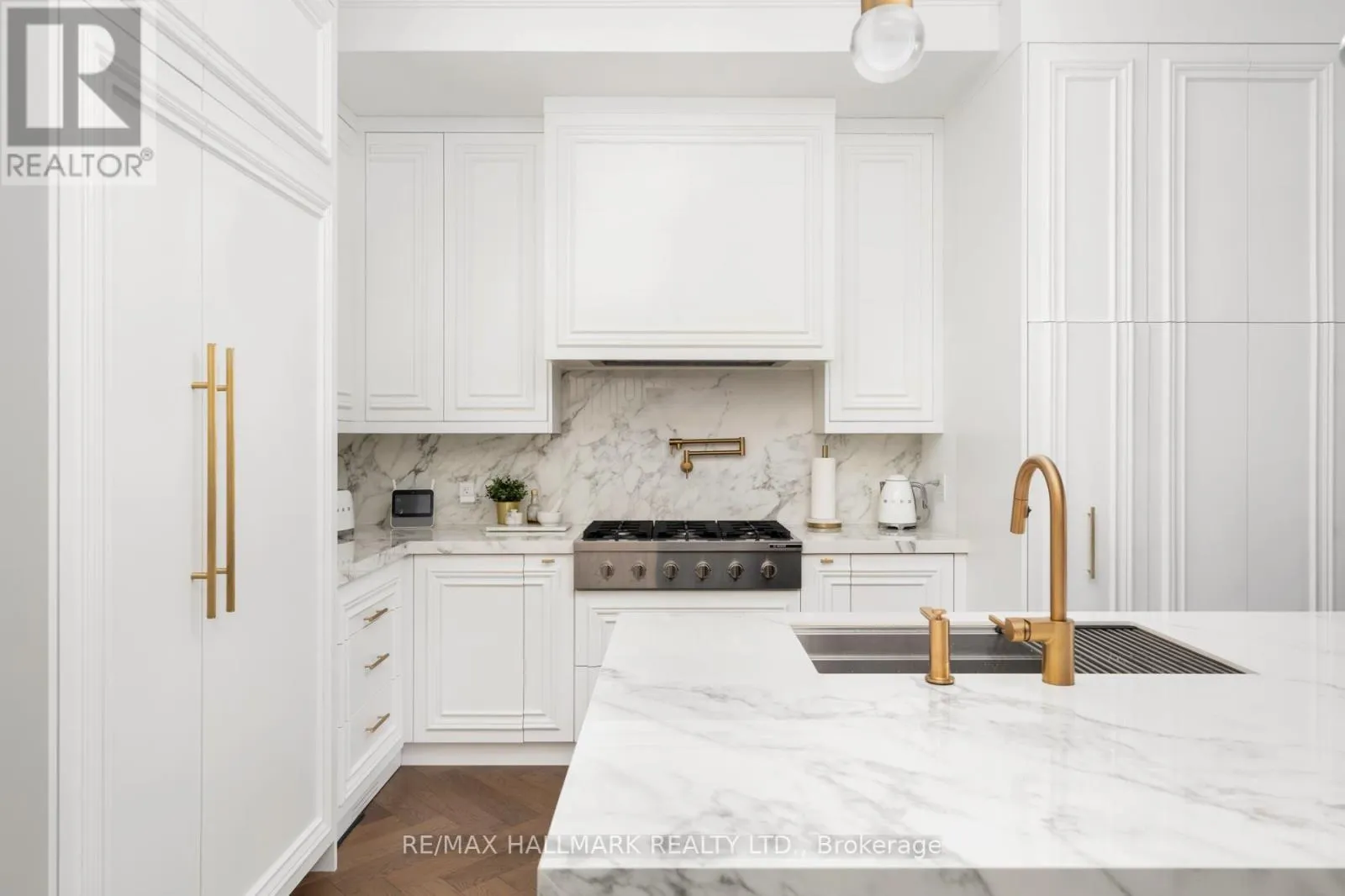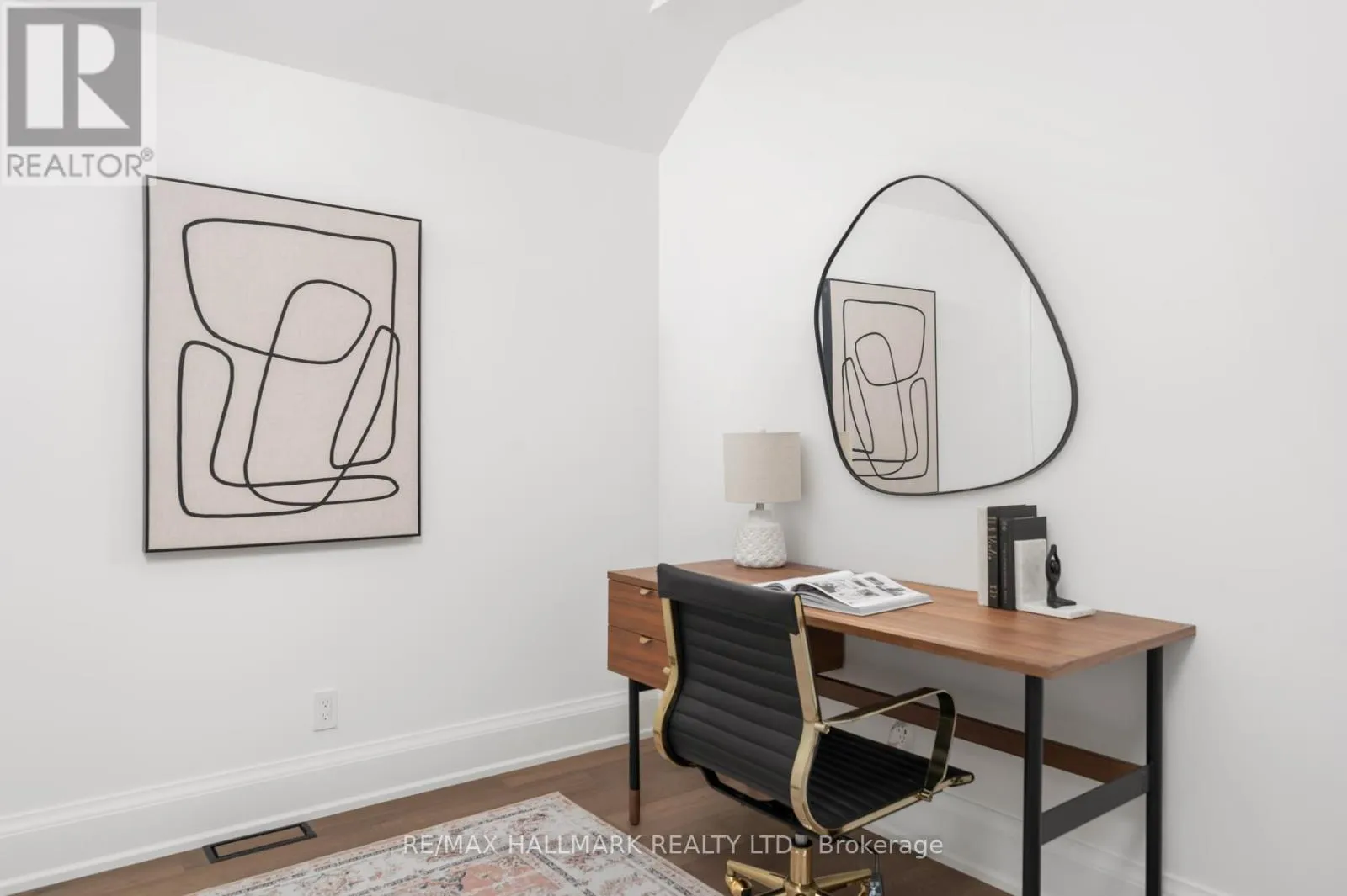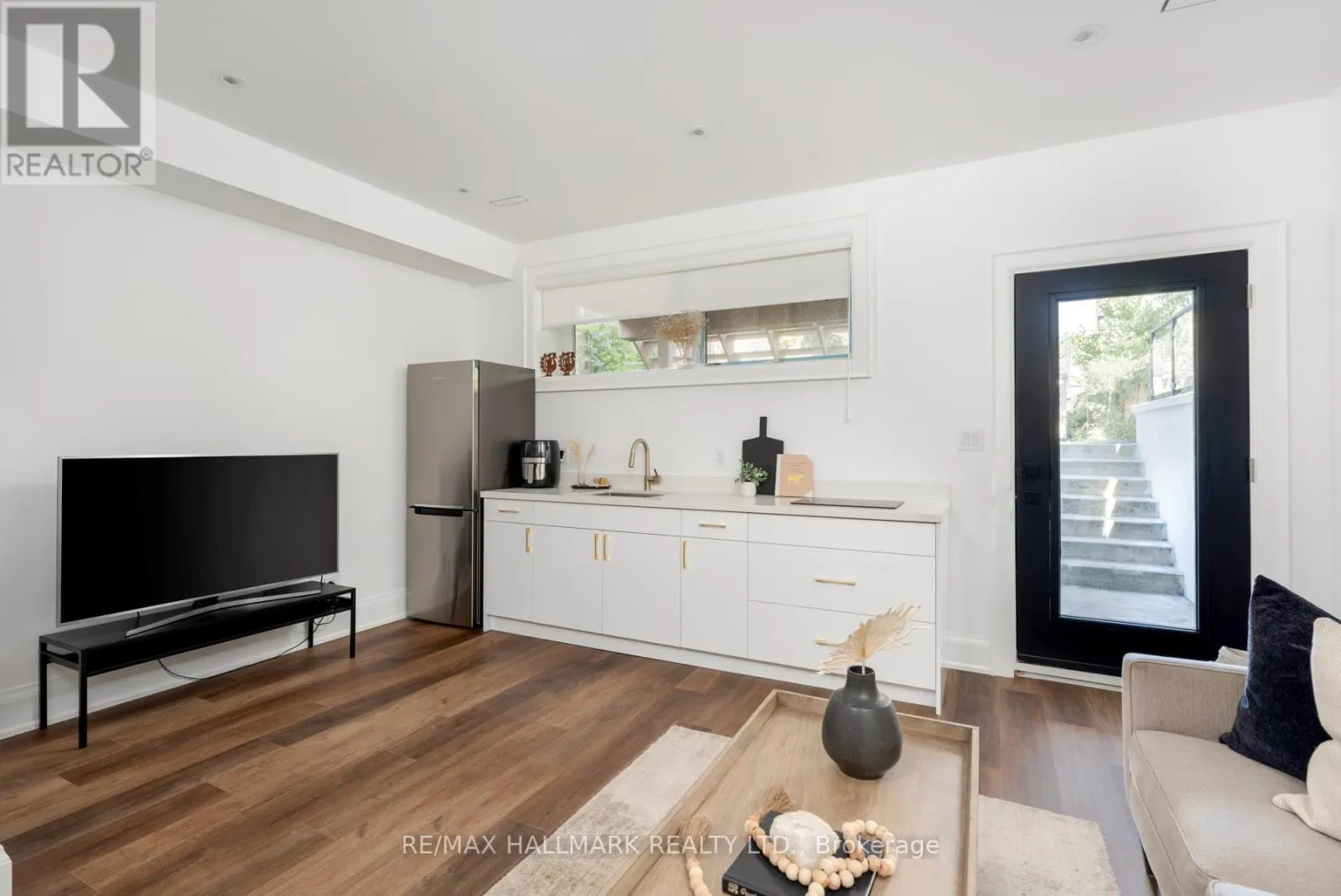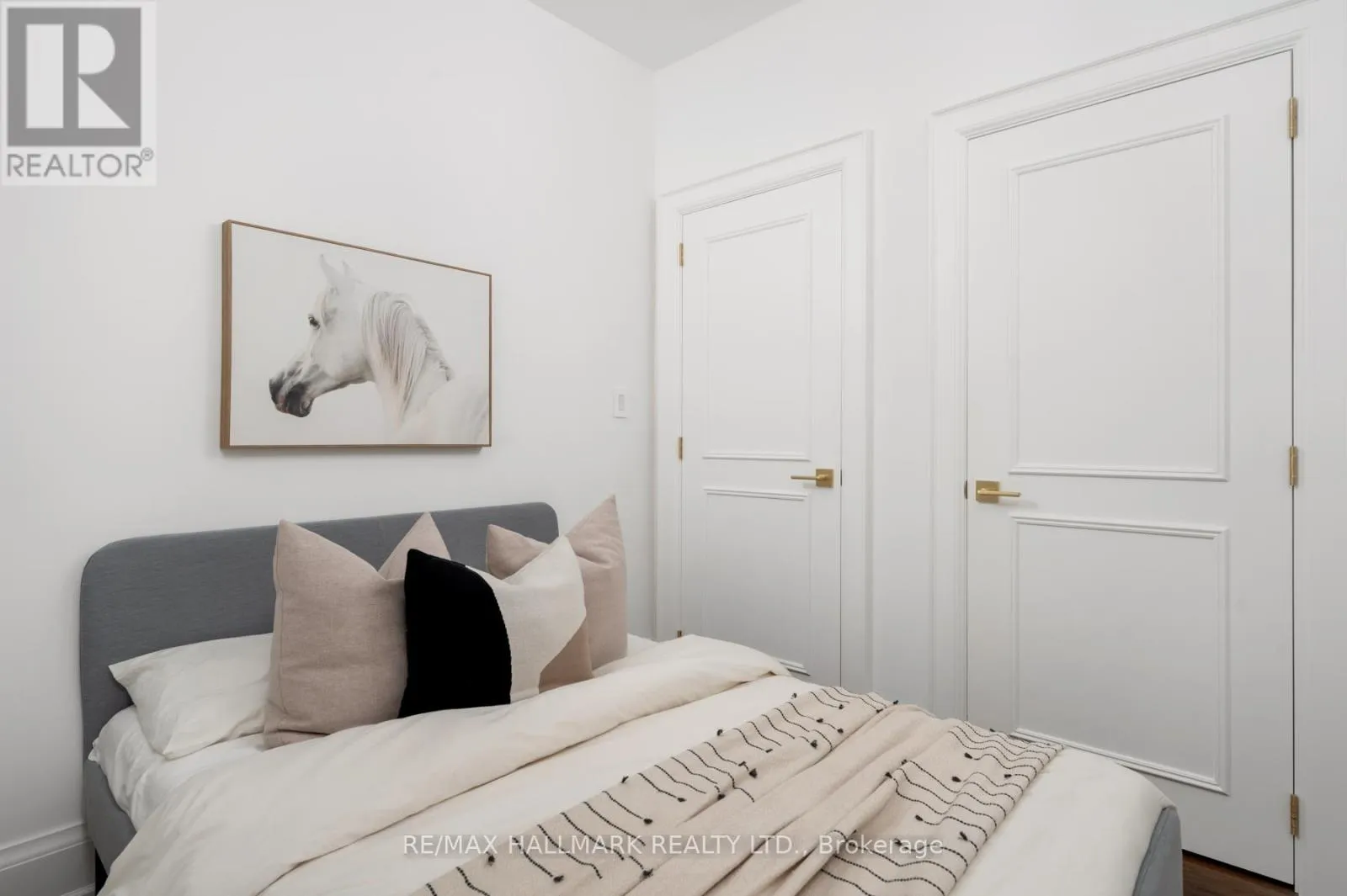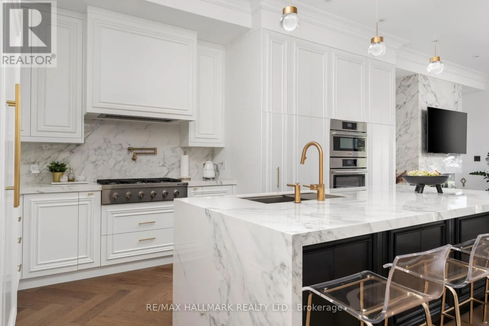 Cross Streets: Cosburn Ave & Coxwell Ave. ** Directions: From Cosburn Ave turn south on Linsmore Cres. The property is on the left. Welcome to this fabulous 4+1 bed, 4.5 bath, two-storey home, thoughtfully designed with a unique layout & loaded with high-end finishes throughout, offering style, functionality & smart living. Located in a family-friendly neighborhood just steps from Dieppe Park & within one of the city's most desirable school districts. Step inside to discover gorgeous hardwood floors, wall paneling, complemented with skylights & soaring ceilings. The main flr features a fabulous layout with a spacious foyer, a few steps up, you will find the formal living & dining room offering an inviting space with full wall paneling, b/i bar display, and integrated ceiling speakers. From there, three steps lead down to the show-stopping kitchen & family rm with a massive 4-panel glass door that opens directly to the private backyard. A magazine-worthy kitchen featuring a striking porcelain island, matching porcelain countertops & backsplash, & a top-of-the-line appliances. The family room is equally impressive with a sleek fireplace framed by a full porcelain wall, custom wood wall panels & b/i speakers. A conveniently located powder room completes the main living area. Upstairs, a large skylight fills the hallway with natural light, leading to four bedrooms, two with their own private ensuites, plus an additional 3PC bath. A conveniently located laundry area is tucked into a custom-built closet on this level. The primary bedroom offers three b/i closets, a 5PC ensuite, sound system, and sliding door to a private balcony overlooking the backyard. The lower level offers extra living space featuring high ceilings, garage access, an extra bedroom, a 3PC bath, a combined kitchen/living area, laundry & W/O to the backyard. Step outside to a beautifully landscaped & fully fenced backyard complete with a large deck with glass railing, interlock patio, garden shed, BBQ gas hookup, & an irrigation system. This Masterpiece Checks All The Boxes! (id:27476)