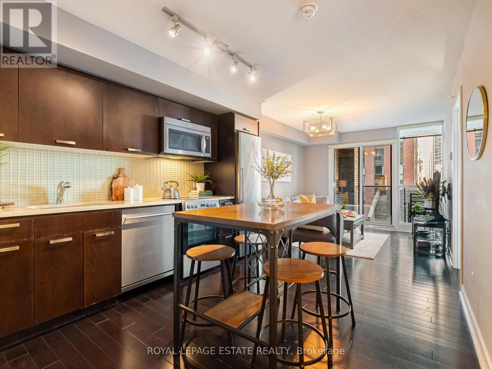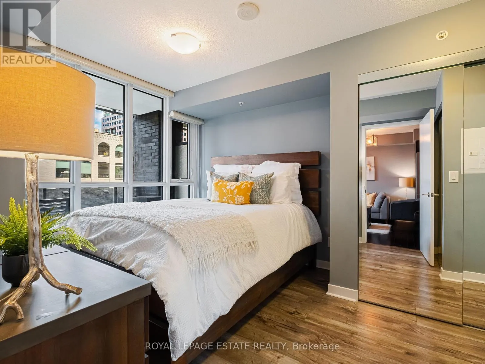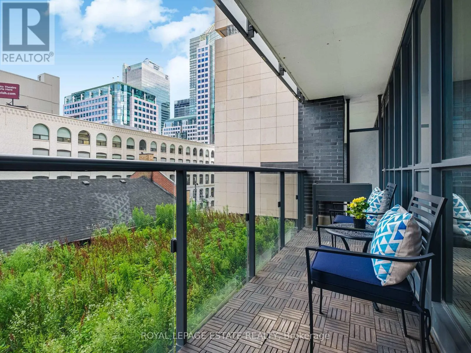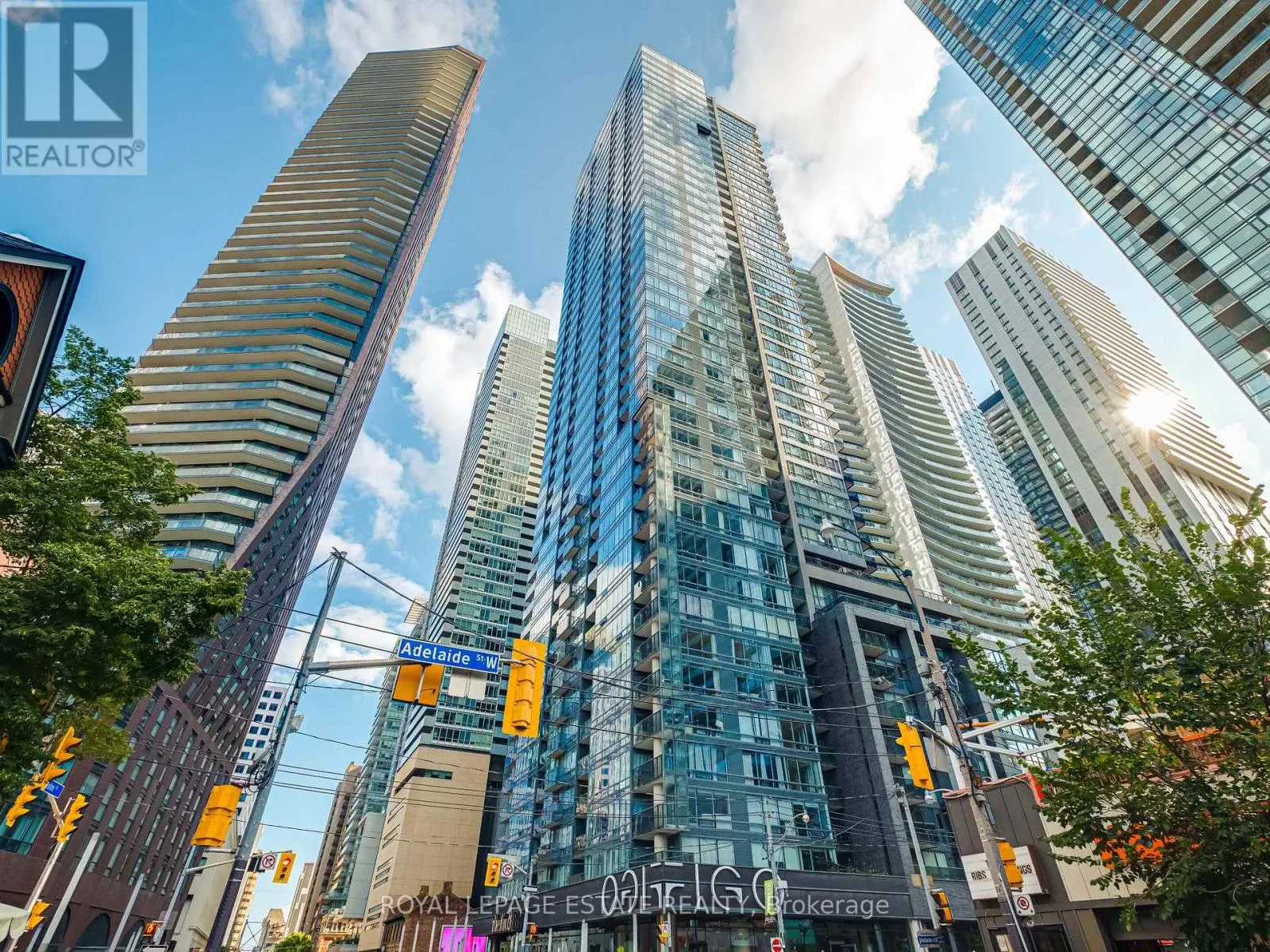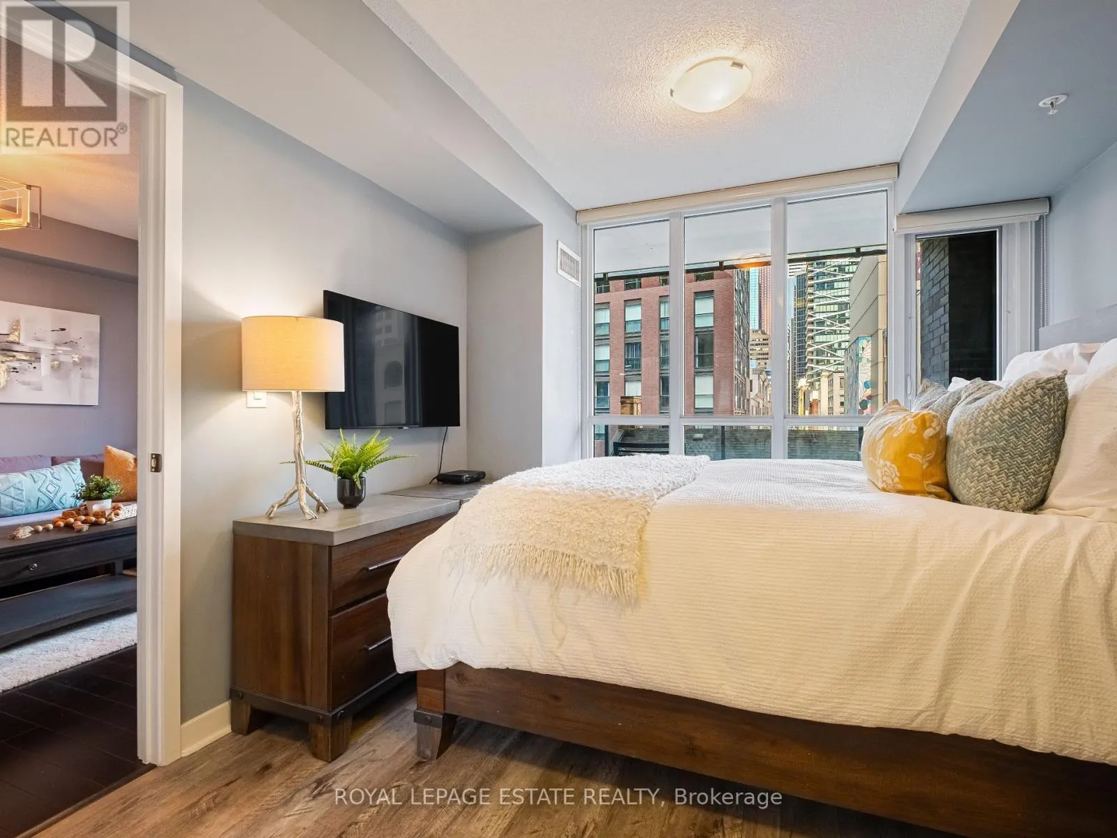 Adelaide & John Experience urban living at it's finest in this beautifully designed condo perfectly situated in the heart of downtown Toronto.This residence provides an exceptional use of space with ample living space in the main areas, a wonderful primary bedroom with his and her closets for lots of storage, a full ensuite, a second good size bedroom with closet and stunning barn door. Step outside to an oversized balcony and take in the cityscape for your morning coffee or sundowners. For those who love live entertainment and sports the theatre district, the Rogers Centre and the Scotia Bank arena are a short walk away and you have a wide array of dining choices right outside your doorstep. The amenities in this building are top notch featuring 24 hour concierge, a rooftop terrace with a BBQ area, a full gym, pool, sauna, hot tub, games rooms, party room, media room and a fabulous lounge area. Perfect for professionals and those seeking true downtown living. (id:27476)
