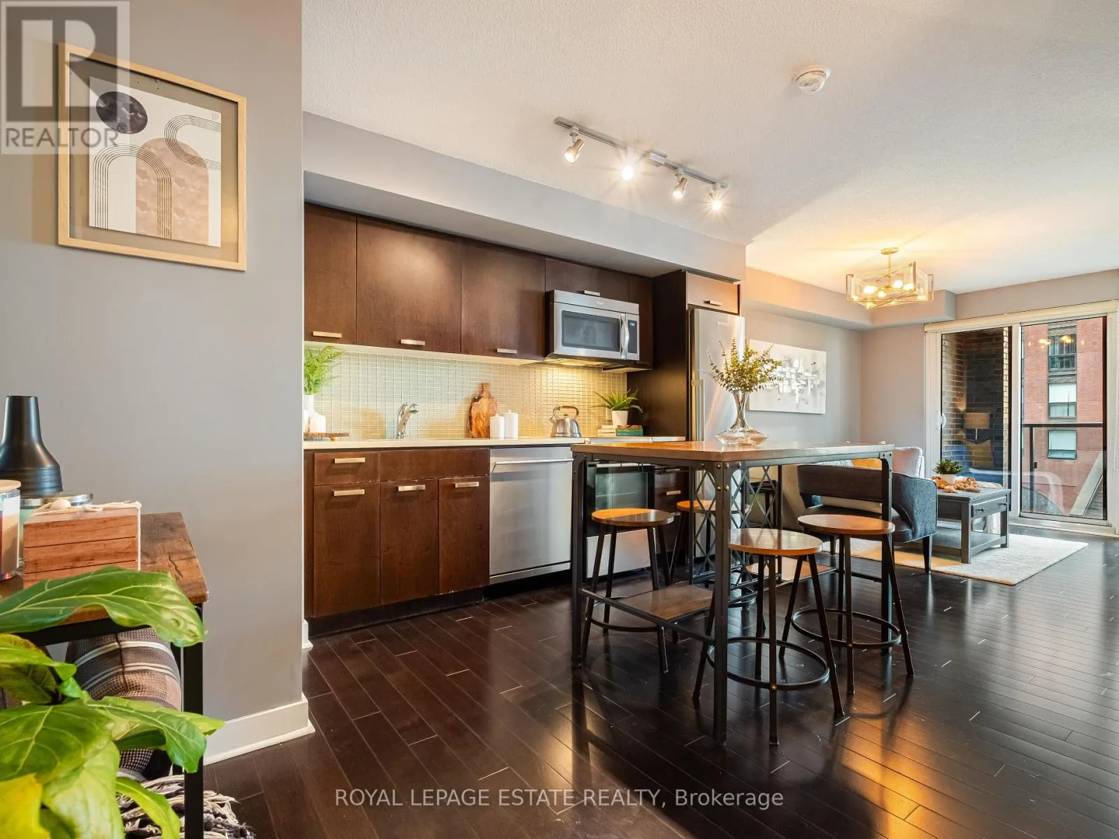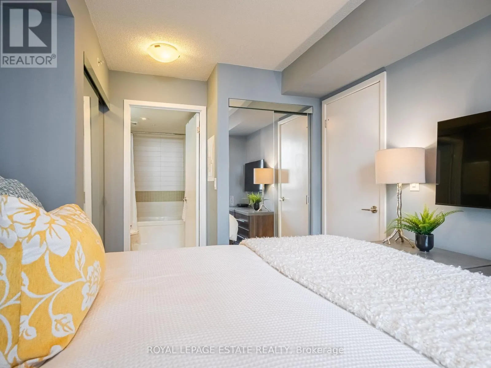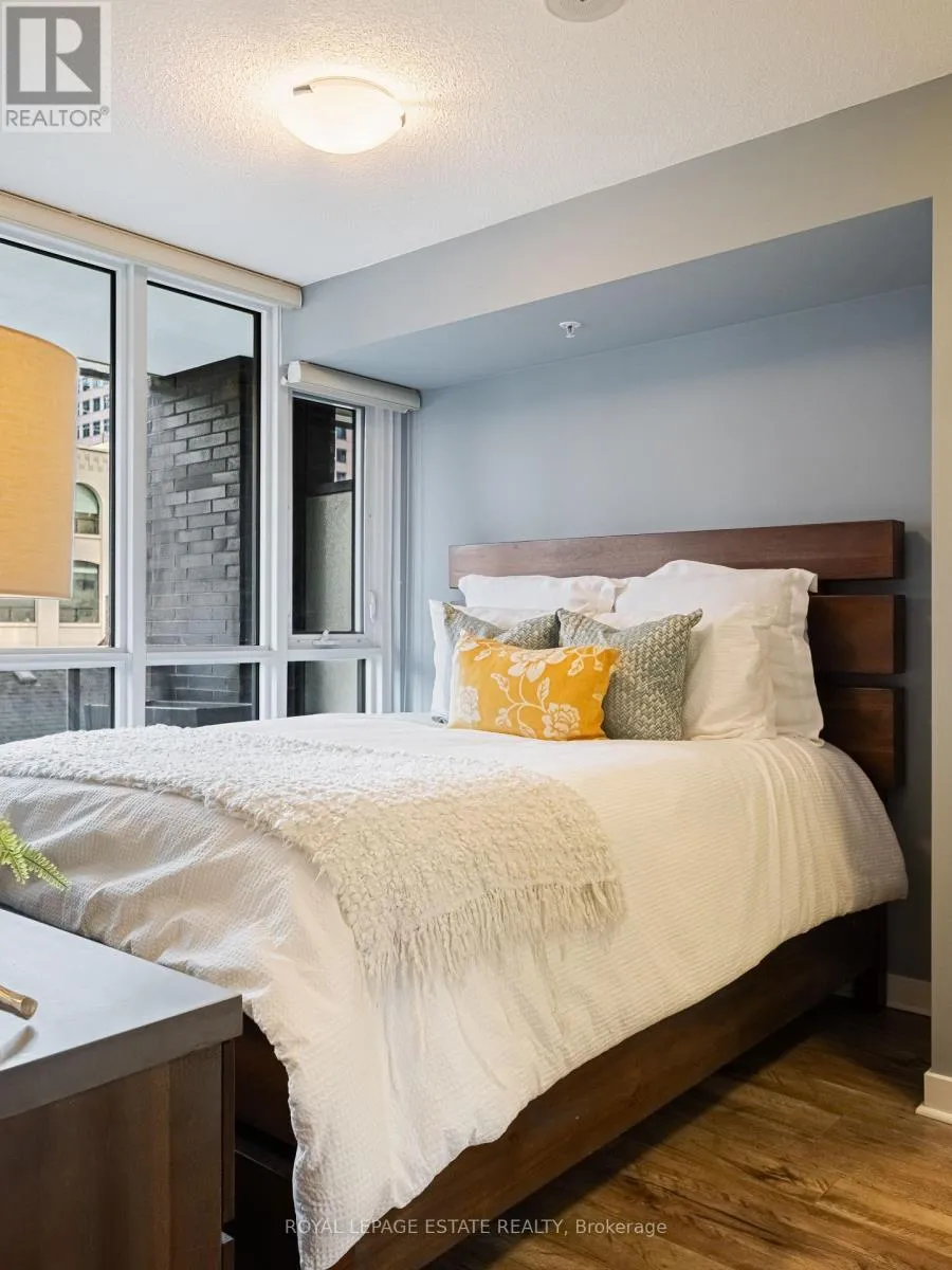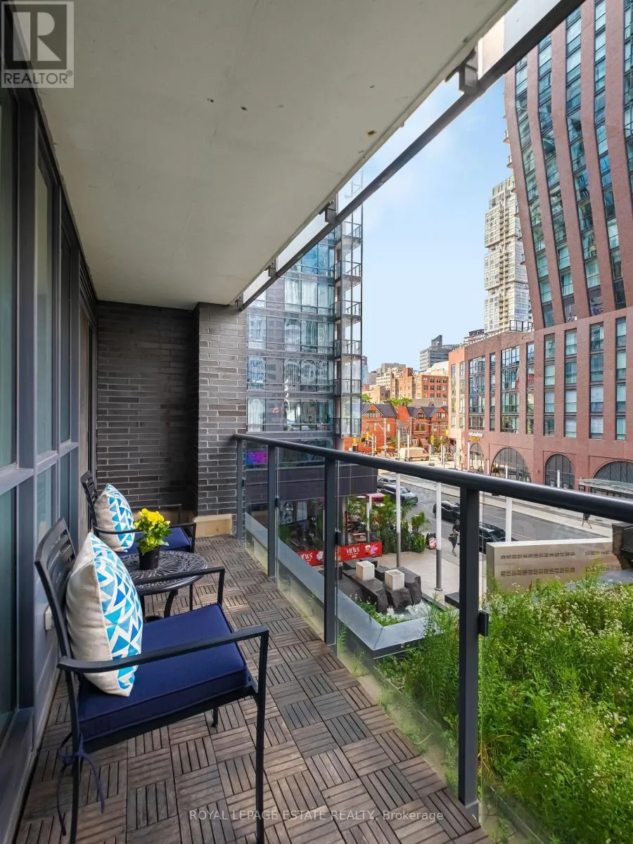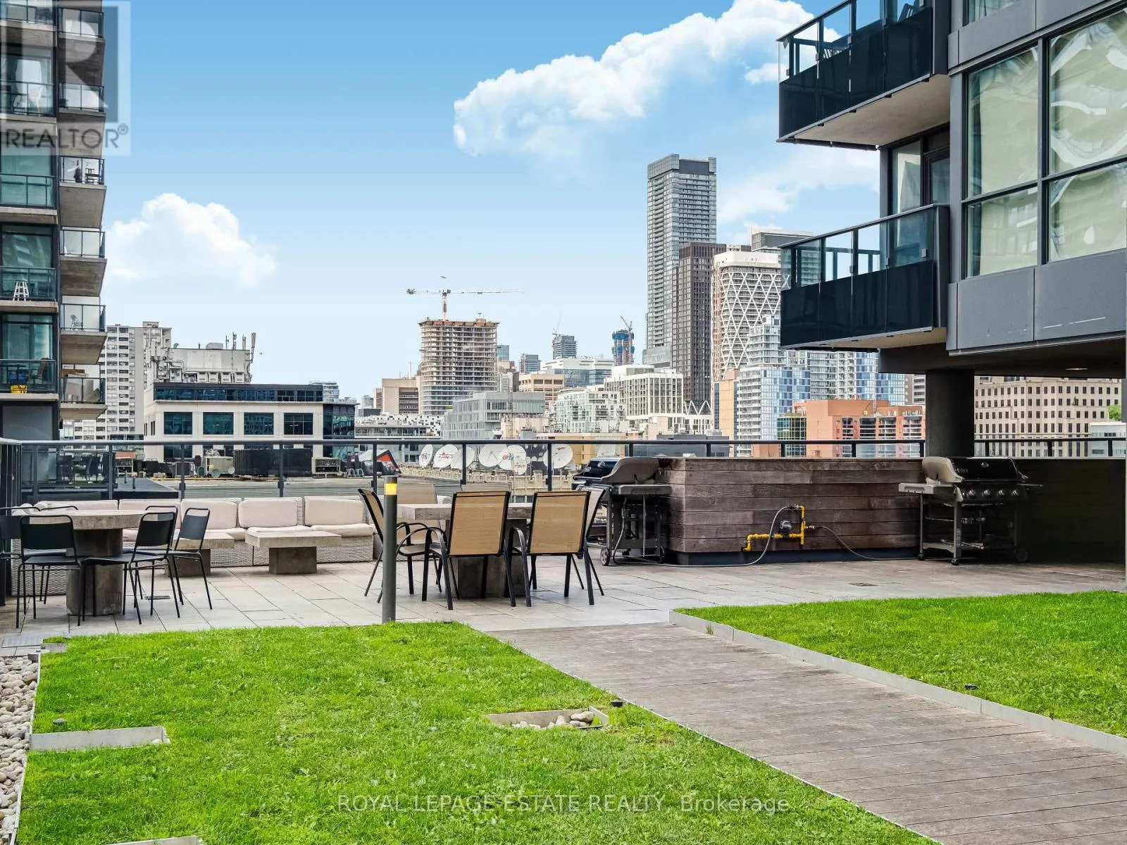 Adelaide & John Experience urban living at it's finest in this beautifully designed condo perfectly situated in the heart of downtown Toronto.This residence provides an exceptional use of space with ample living space in the main areas, a wonderful primary bedroom with his and her closets for lots of storage, a full ensuite, a second good size bedroom with closet and stunning barn door. Step outside to an oversized balcony and take in the cityscape for your morning coffee or sundowners. For those who love live entertainment and sports the theatre district, the Rogers Centre and the Scotia Bank arena are a short walk away and you have a wide array of dining choices right outside your doorstep. The amenities in this building are top notch featuring 24 hour concierge, a rooftop terrace with a BBQ area, a full gym, pool, sauna, hot tub, games rooms, party room, media room and a fabulous lounge area. Perfect for professionals and those seeking true downtown living. (id:27476)