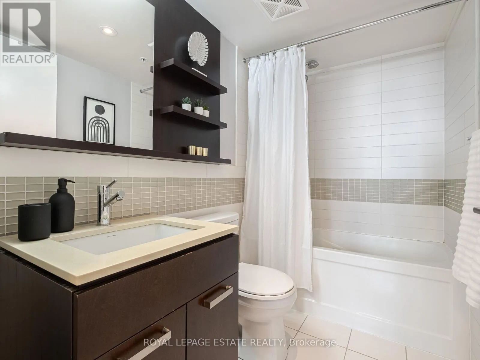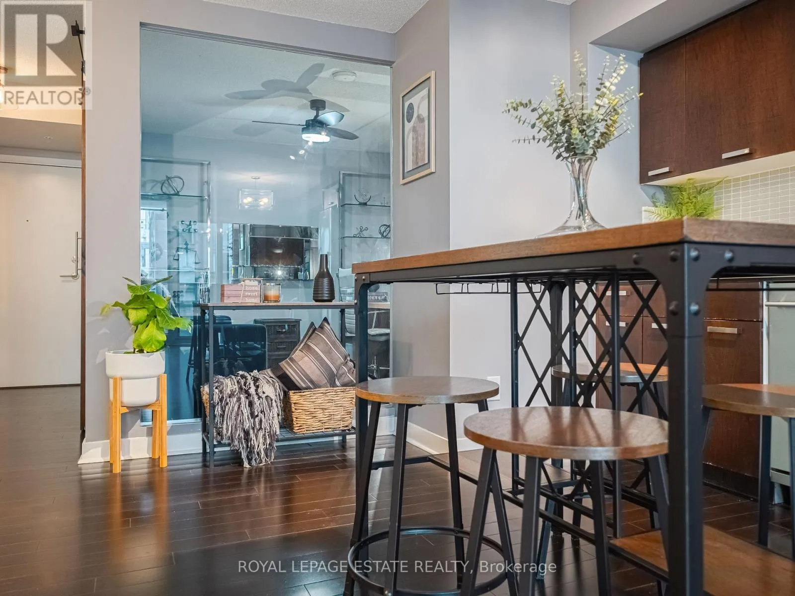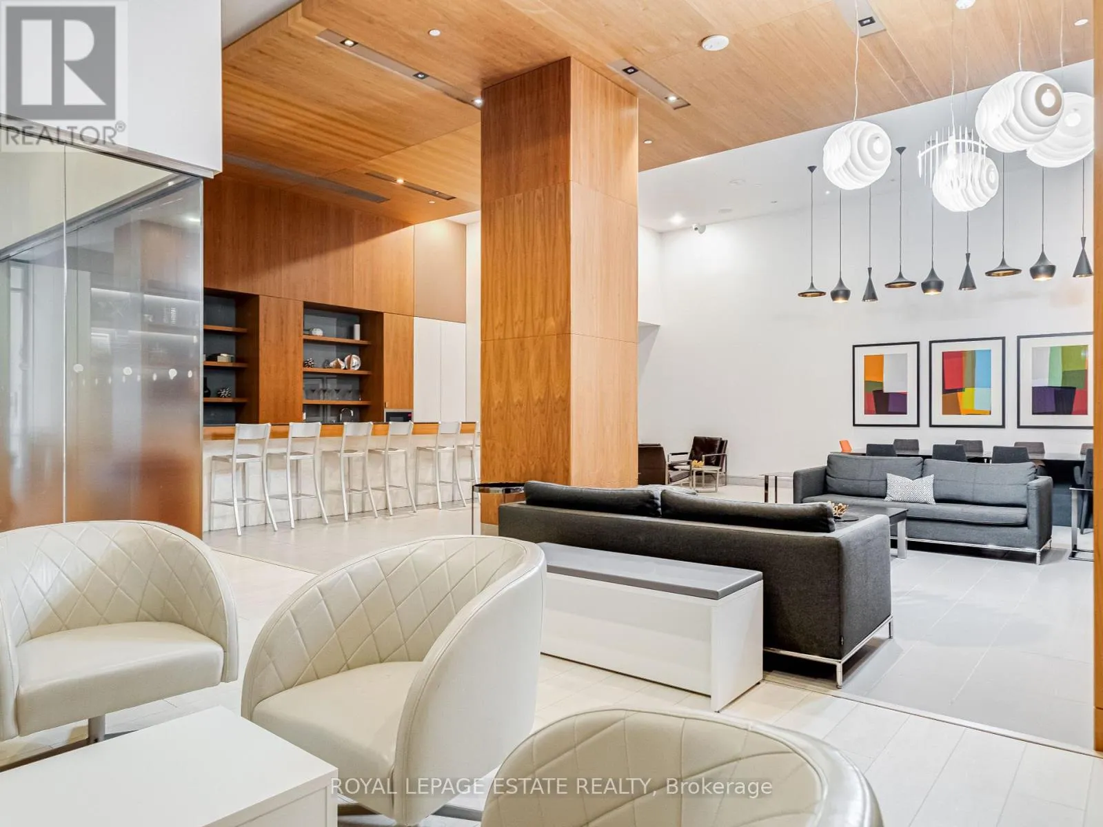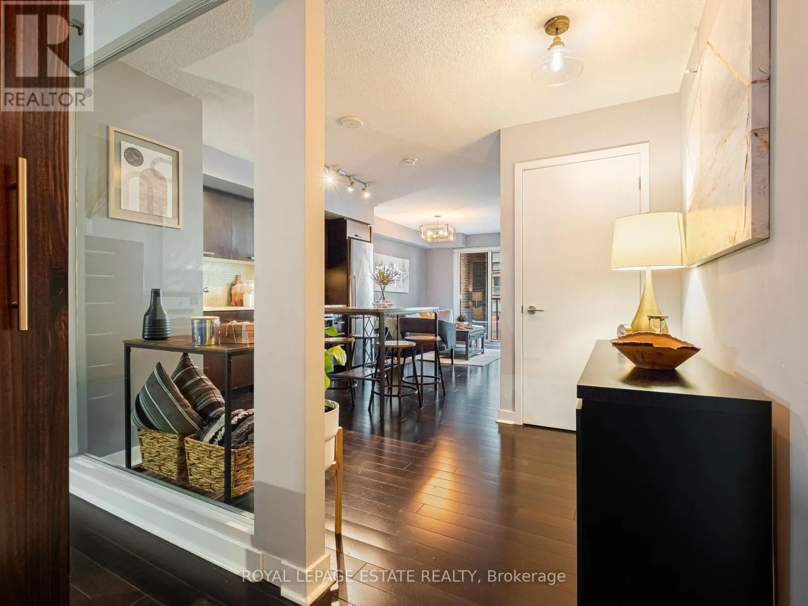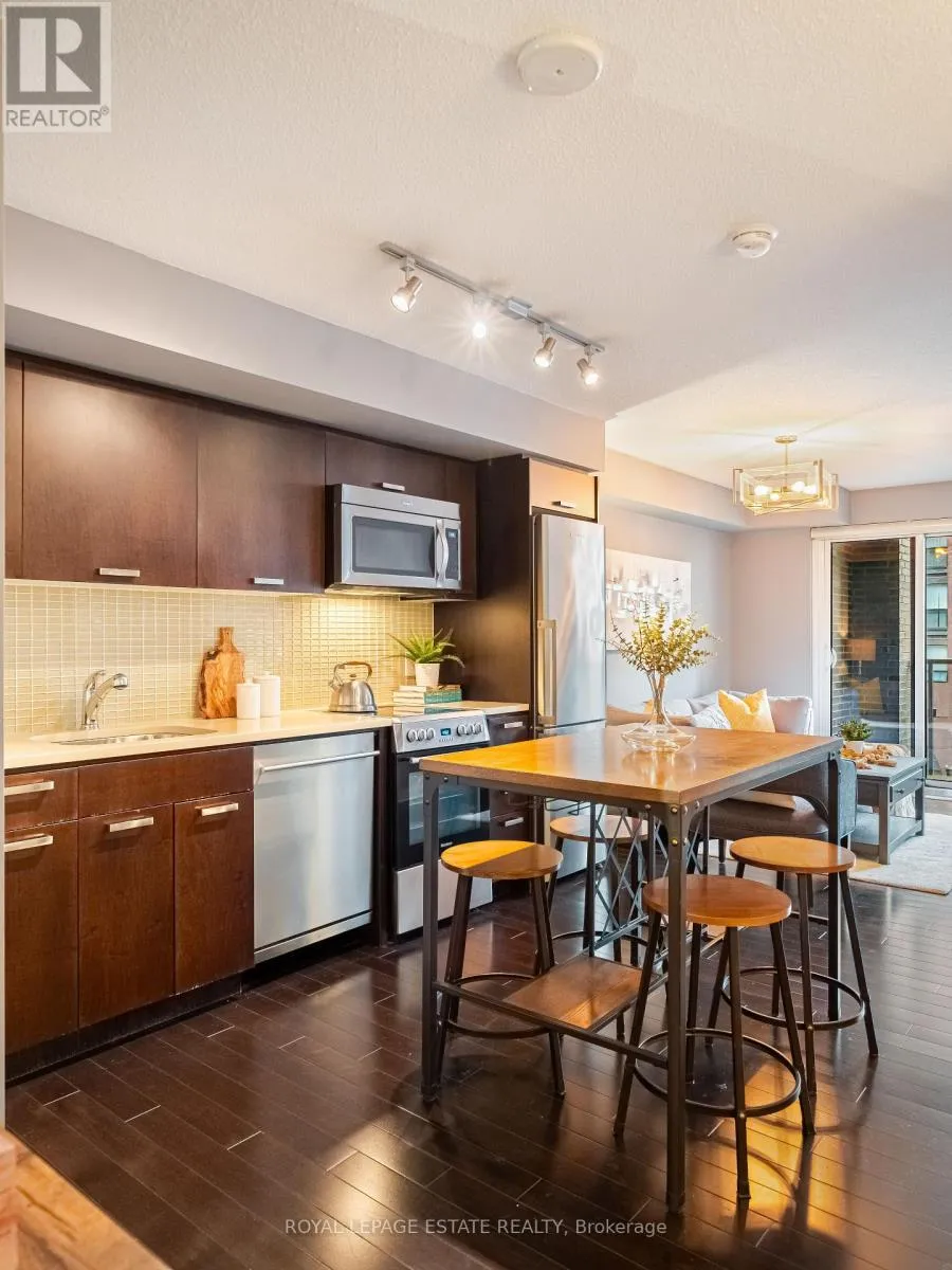Adelaide & John Experience urban living at it's finest in this beautifully designed condo perfectly situated in the heart of downtown Toronto.This residence provides an exceptional use of space with ample living space in the main areas, a wonderful primary bedroom with his and her closets for lots of storage, a full ensuite, a second good size bedroom with closet and stunning barn door. Step outside to an oversized balcony and take in the cityscape for your morning coffee or sundowners. For those who love live entertainment and sports the theatre district, the Rogers Centre and the Scotia Bank arena are a short walk away and you have a wide array of dining choices right outside your doorstep. The amenities in this building are top notch featuring 24 hour concierge, a rooftop terrace with a BBQ area, a full gym, pool, sauna, hot tub, games rooms, party room, media room and a fabulous lounge area. Perfect for professionals and those seeking true downtown living. (id:27476)