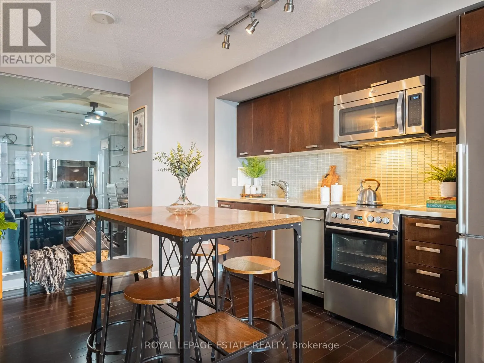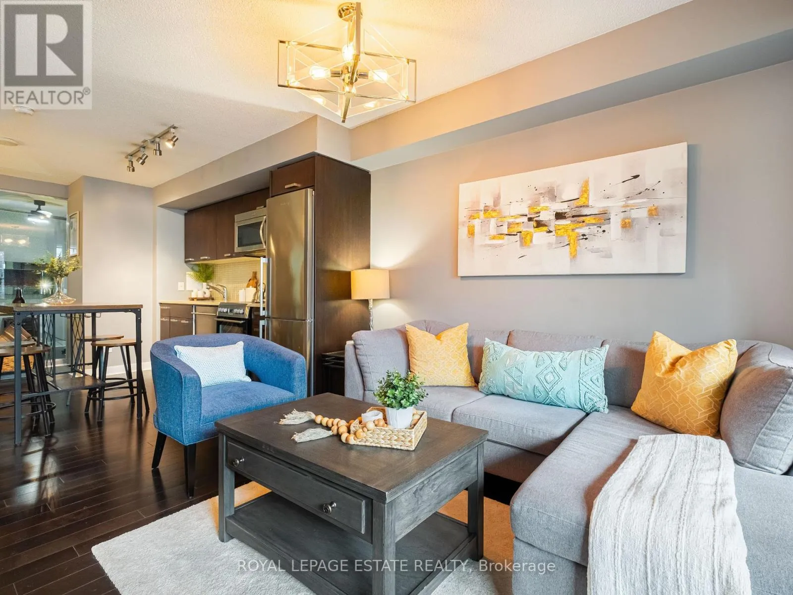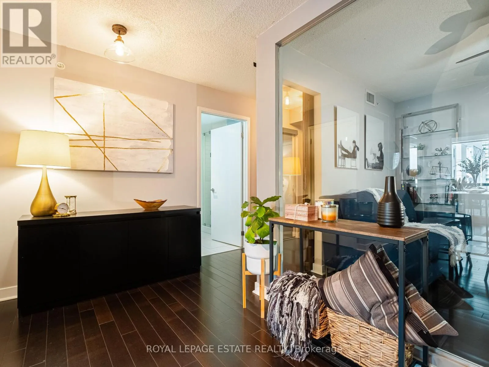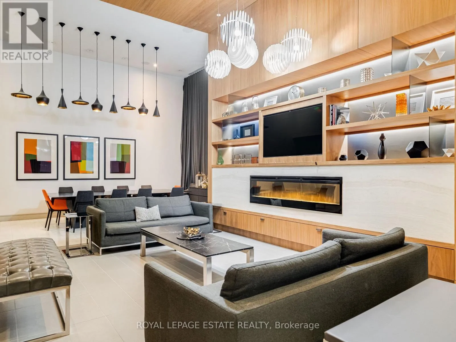 Adelaide & John Experience urban living at it's finest in this beautifully designed condo perfectly situated in the heart of downtown Toronto.This residence provides an exceptional use of space with ample living space in the main areas, a wonderful primary bedroom with his and her closets for lots of storage, a full ensuite, a second good size bedroom with closet and stunning barn door. Step outside to an oversized balcony and take in the cityscape for your morning coffee or sundowners. For those who love live entertainment and sports the theatre district, the Rogers Centre and the Scotia Bank arena are a short walk away and you have a wide array of dining choices right outside your doorstep. The amenities in this building are top notch featuring 24 hour concierge, a rooftop terrace with a BBQ area, a full gym, pool, sauna, hot tub, games rooms, party room, media room and a fabulous lounge area. Perfect for professionals and those seeking true downtown living. (id:27476)