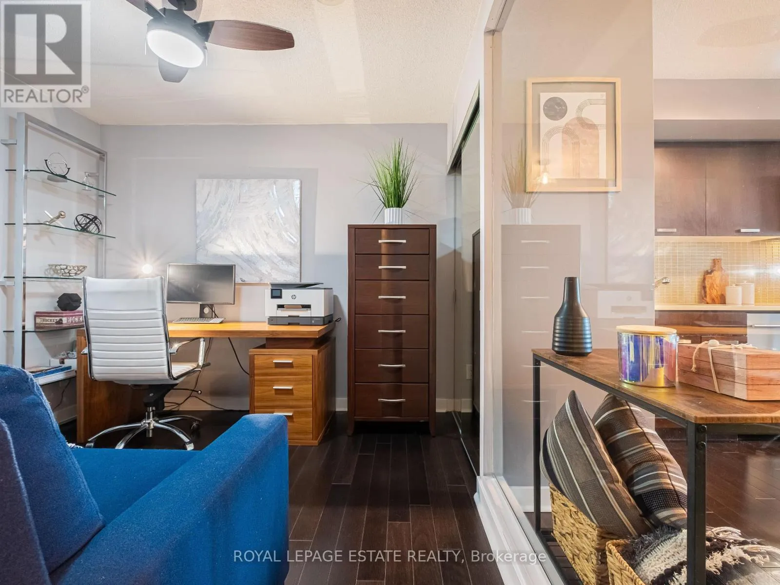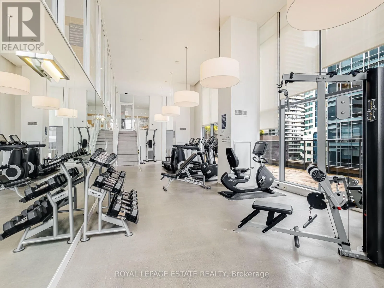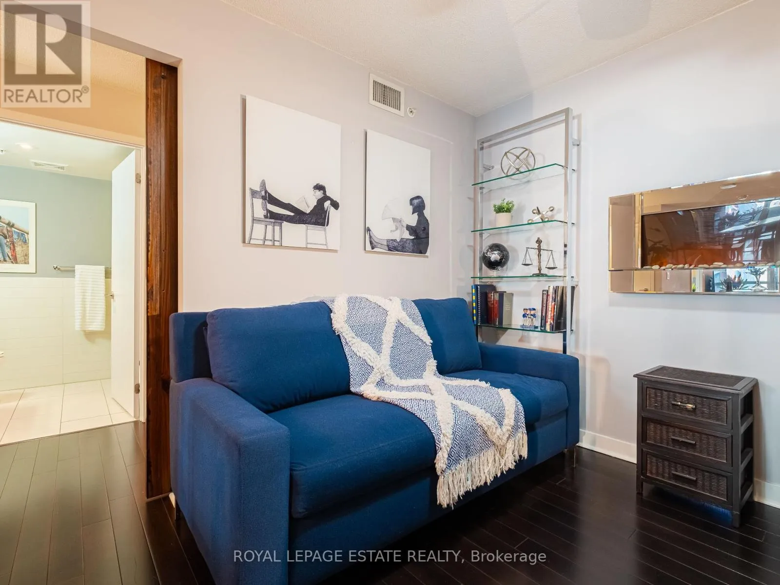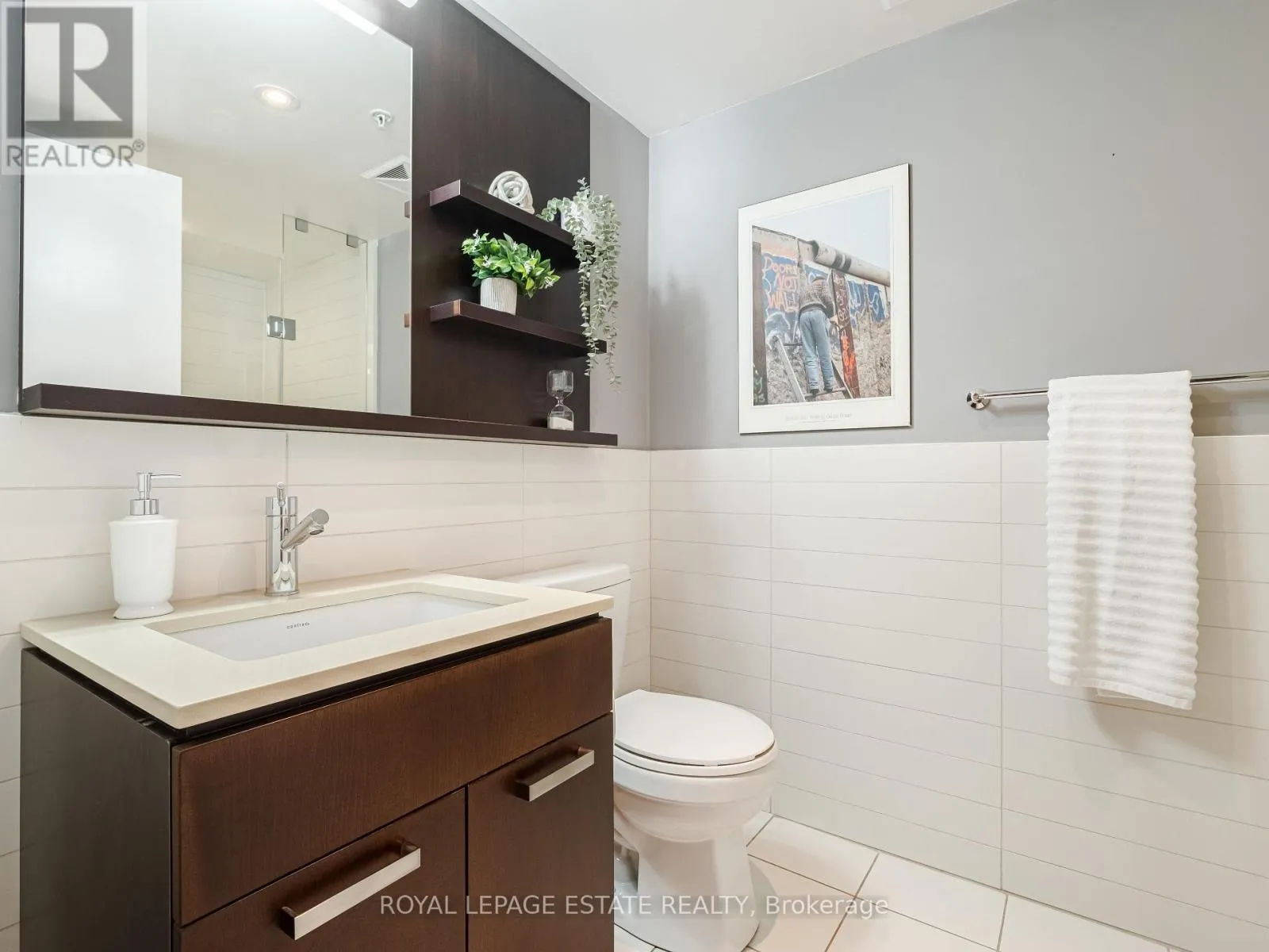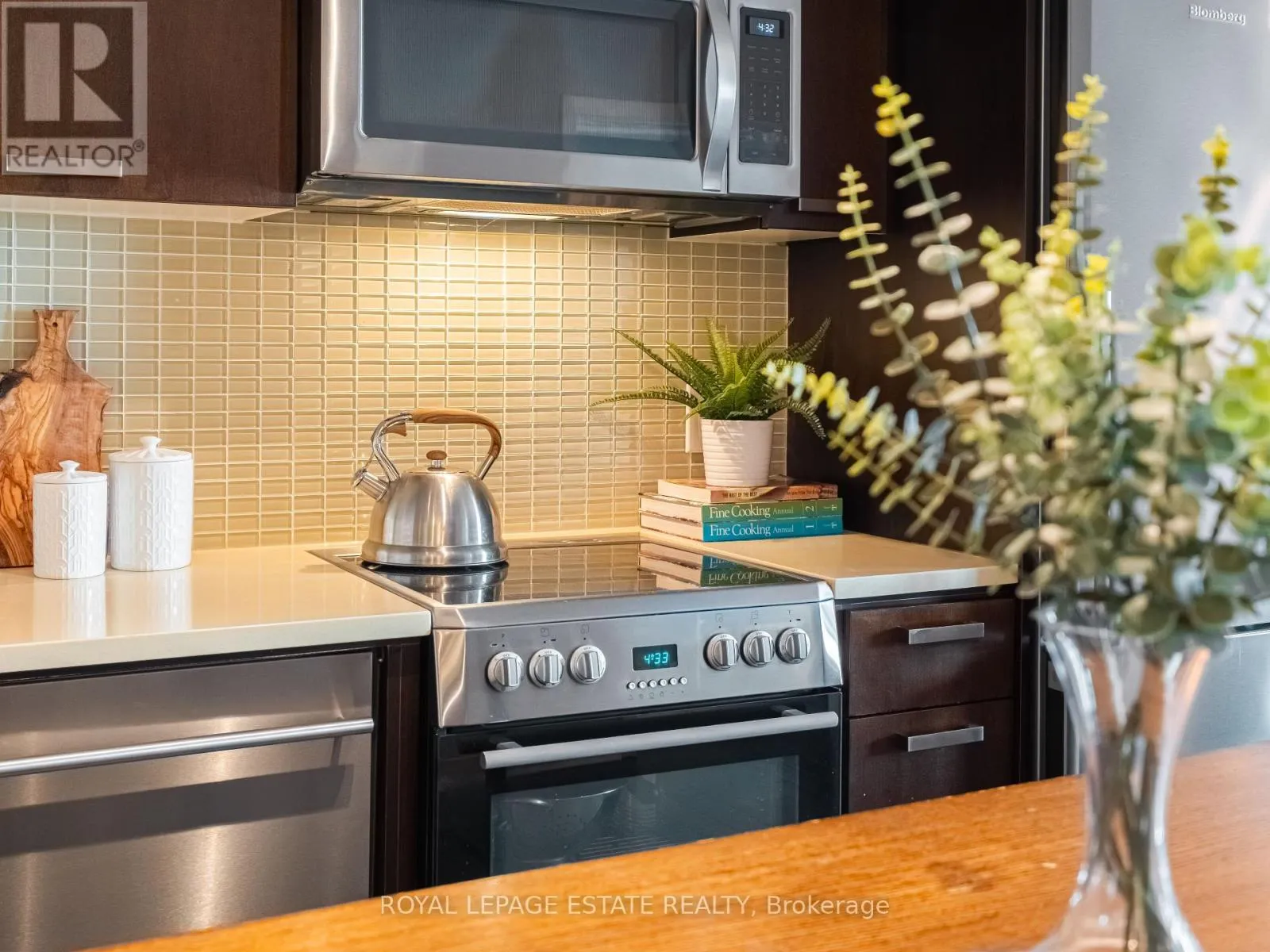 Adelaide & John Experience urban living at it's finest in this beautifully designed condo perfectly situated in the heart of downtown Toronto.This residence provides an exceptional use of space with ample living space in the main areas, a wonderful primary bedroom with his and her closets for lots of storage, a full ensuite, a second good size bedroom with closet and stunning barn door. Step outside to an oversized balcony and take in the cityscape for your morning coffee or sundowners. For those who love live entertainment and sports the theatre district, the Rogers Centre and the Scotia Bank arena are a short walk away and you have a wide array of dining choices right outside your doorstep. The amenities in this building are top notch featuring 24 hour concierge, a rooftop terrace with a BBQ area, a full gym, pool, sauna, hot tub, games rooms, party room, media room and a fabulous lounge area. Perfect for professionals and those seeking true downtown living. (id:27476)