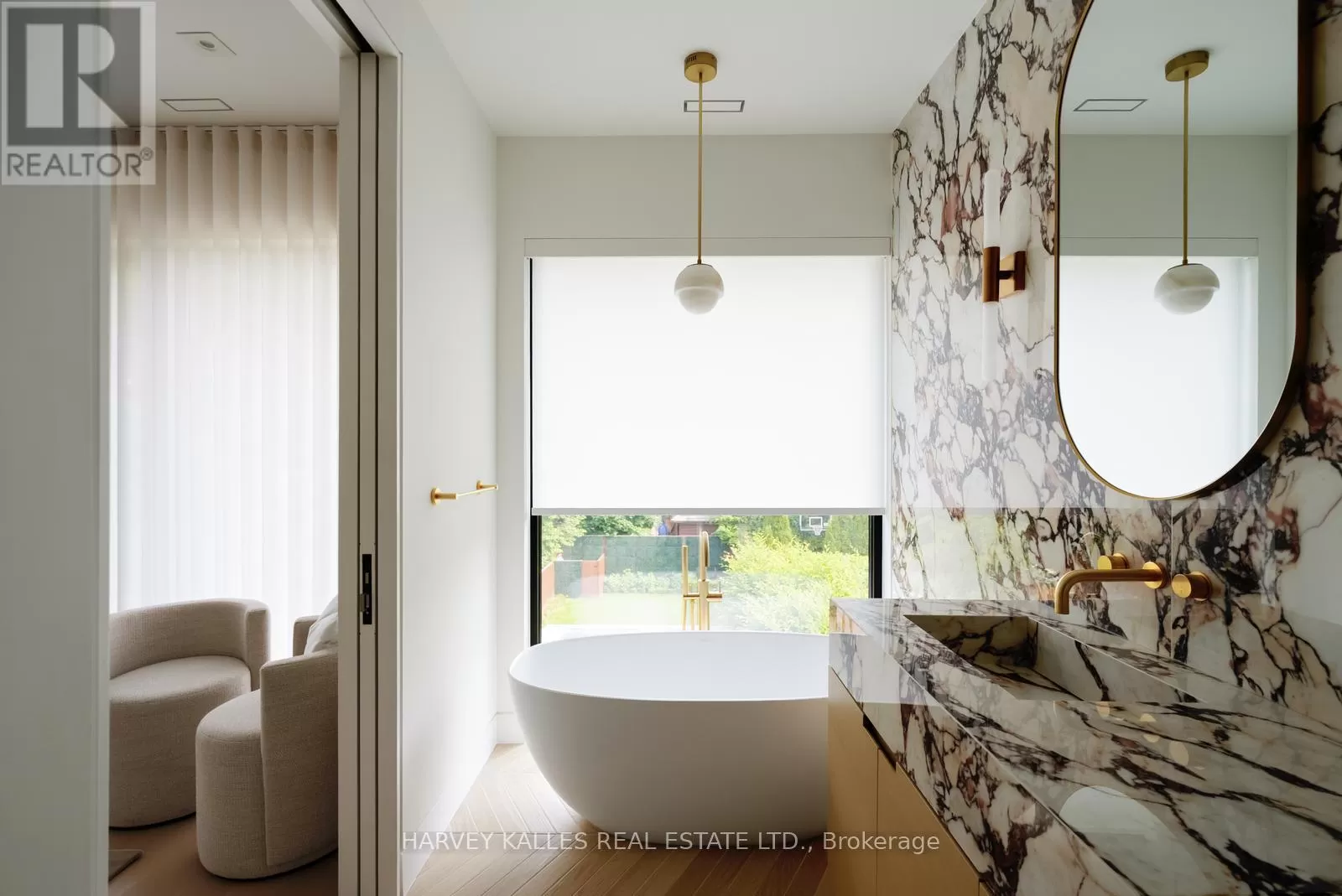 Cross Streets: Mt. Pleasant/Sherwood. ** Directions: Yonge & Sherwood. Nestled in the heart of Sherwood Park, The Vagli House is a newly completed, custom-designed residence that exemplifies architectural artistry and refined craftsmanship. Conceived and built as a personal home rather than a developer project, every element has been thoughtfully curated with purpose and precision. Rift-cut European white oak millwork flows seamlessly across all levels, complemented by over 30 hand-selected slabs of Italian marble. At the heart of the home, the kitchen stands as a sculptural statement fully wrapped in striking Calacatta marble, offering scale, presence, and refined minimalism. A marble-and-metal staircase, along with stone-crafted lighting, creates a rhythmic architectural narrative. In the primary dressing rooms, British artisans Joanna Bibby and Harriet Maxwell Macdonald contribute natural horn handles, while custom hardware by Marco Redaelli adds tactile detail throughout the home. Luxury and comfort are prioritized with radiant floor heating that extends through the driveway, porch, garage, foyer, basement, and ensuite. Panoramic triple-glazed European aluminum windows flood the interiors with natural light while delivering exceptional thermal performance and acoustic insulation. Step outside to a private urban oasis, designed for year-round enjoyment. A heated concrete pool finished with designer tiles from Trend Group USA is compatible with both saltwater and chlorine, anchors the backyard. Dual composite decks, custom-built outdoor kitchen, integrated lighting and irrigation, and a firepit rough-in ensure effortless outdoor living. Additional features include full home audio, central vacuum, comprehensive security with camera surveillance, and sound insulation throughout. Framed by the exclusive Rosedale Golf Club and moments from boutique shops and fine dining, this residence combines international design sensibility with timeless comfort. (id:27476)