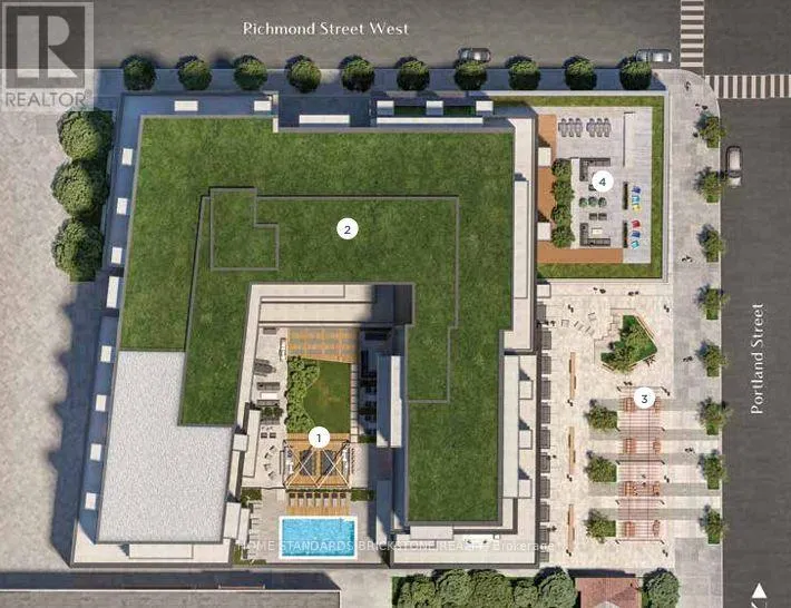 Cross Streets: Richmond and Portland. ** Directions: Richmond St W & Portland St. This bright and spacious 1-bedroom plus large den suite is thoughtfully designed for modern downtown living. With 9-foot ceilings, wide laminate flooring, and a contemporary kitchen featuring custom cabinetry and quartz countertops, the home combines style and function. The versatile den can serve as a home office, guest room, or nursery, adapting easily to your needs.Step out onto your private balcony overlooking landscaped gardens, a quiet courtyard, and the outdoor poolyour personal retreat in the city. Residents enjoy exceptional amenities, including a 24-hour concierge, rooftop terrace with pool and BBQ area, fitness center, yoga studio, party and games rooms, theatre, and study lounge with outdoor terrace.Located in Torontos vibrant Fashion District, just steps to King West dining, the Financial District, and multiple TTC lines, this suite offers both convenience and strong investment potential. (id:27476)