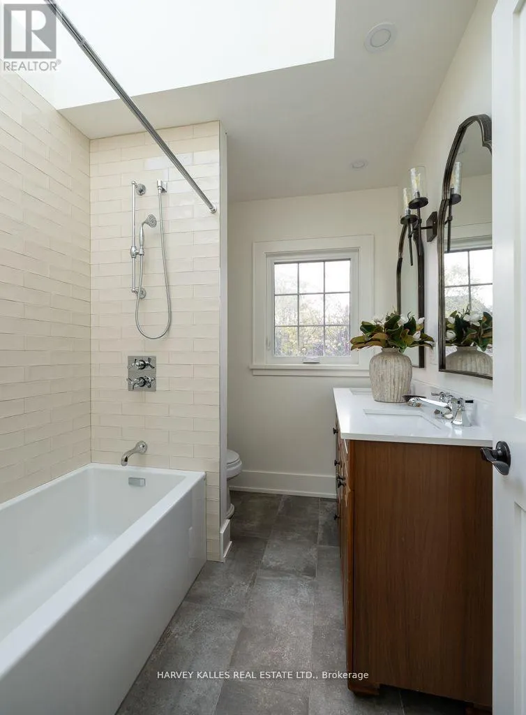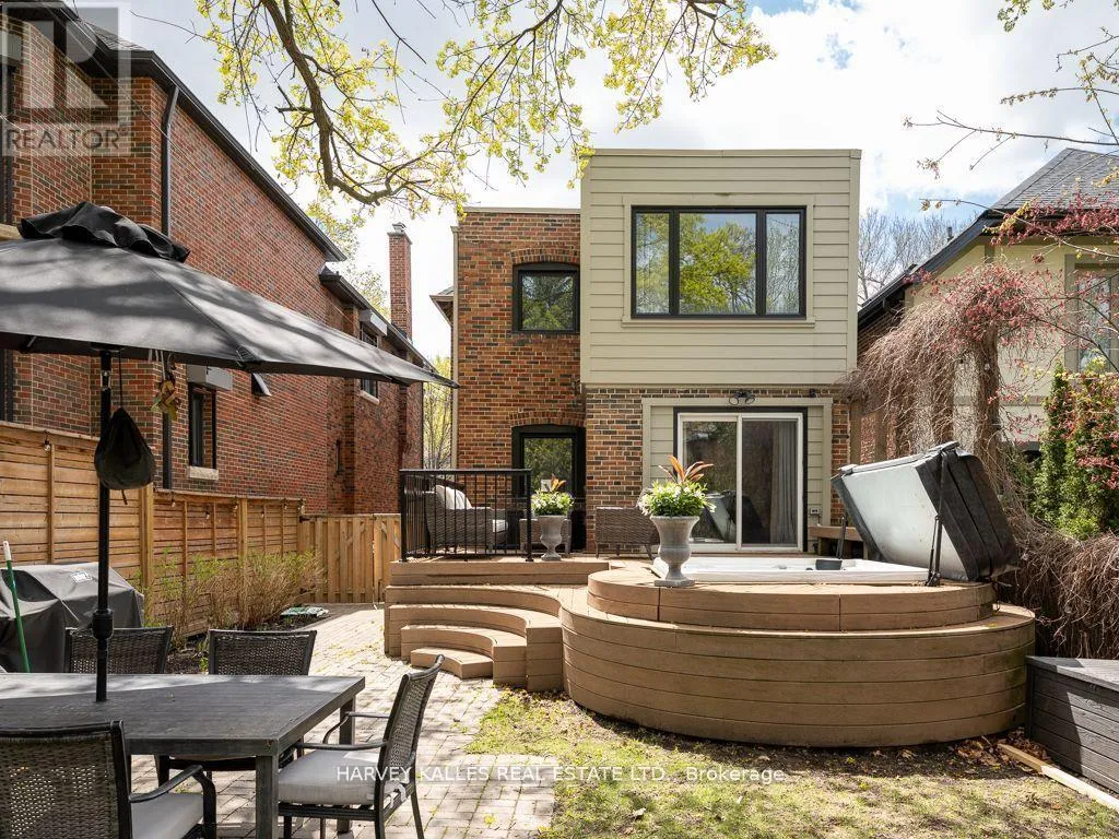 Avenue/Eglinton A lifestyle of luxury awaits at 516 St Clements Ave an impeccably renovated 4-bedroom, 4-bathroom detached home in the heart of the coveted Allenby/North Forest Hill neighbourhood. Meticulously designed with no detail overlooked, this residence features a newly added main floor powder room, two luxurious 5-piece bathrooms upstairs (including a show-stopping primary ensuite), a sprawling basement, 2-car driveway, and a backyard retreat so inviting, you'll forget about the cottage. The sun-filled main level offers exceptional flow and upscale finishes throughout featuring an elegant family room with a Gas Fireplace, designer kitchen with an oversized centre island and ample storage, and refined dining area with access to the incredible outdoor patio, complimented with a hot tub, in the stunningly landscaped backyard. Upstairs, an impressive skylight brightens the 2nd level, leading to a generous primary retreat which boasts a large walk-in closet and spa-like 5-pce ensuite. A second 5-pce bathroom and remaining 3 bright bedrooms complete the upper level. The expansive lower level features a 5th bedroom, full 4-piece bathroom, exercise room, home office, laundry access, and ample storage. Fantastically situated, mere minutes to top-rated schools, the Beltline Trail, parks, endless shopping/dining opportunities, and easy TTC access. A rare opportunity to own this very special home, centrally located in one of Toronto's best neighbourhoods, where timeless charm meets everyday luxury. (id:27476)